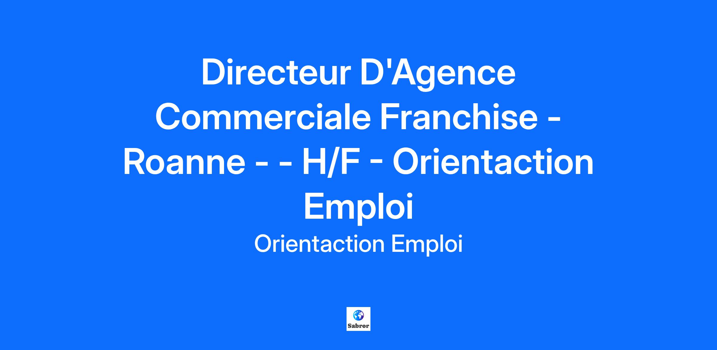 Directeur D'Agence Commerciale Franchise - Roanne - - H/F - Orientaction Emploi