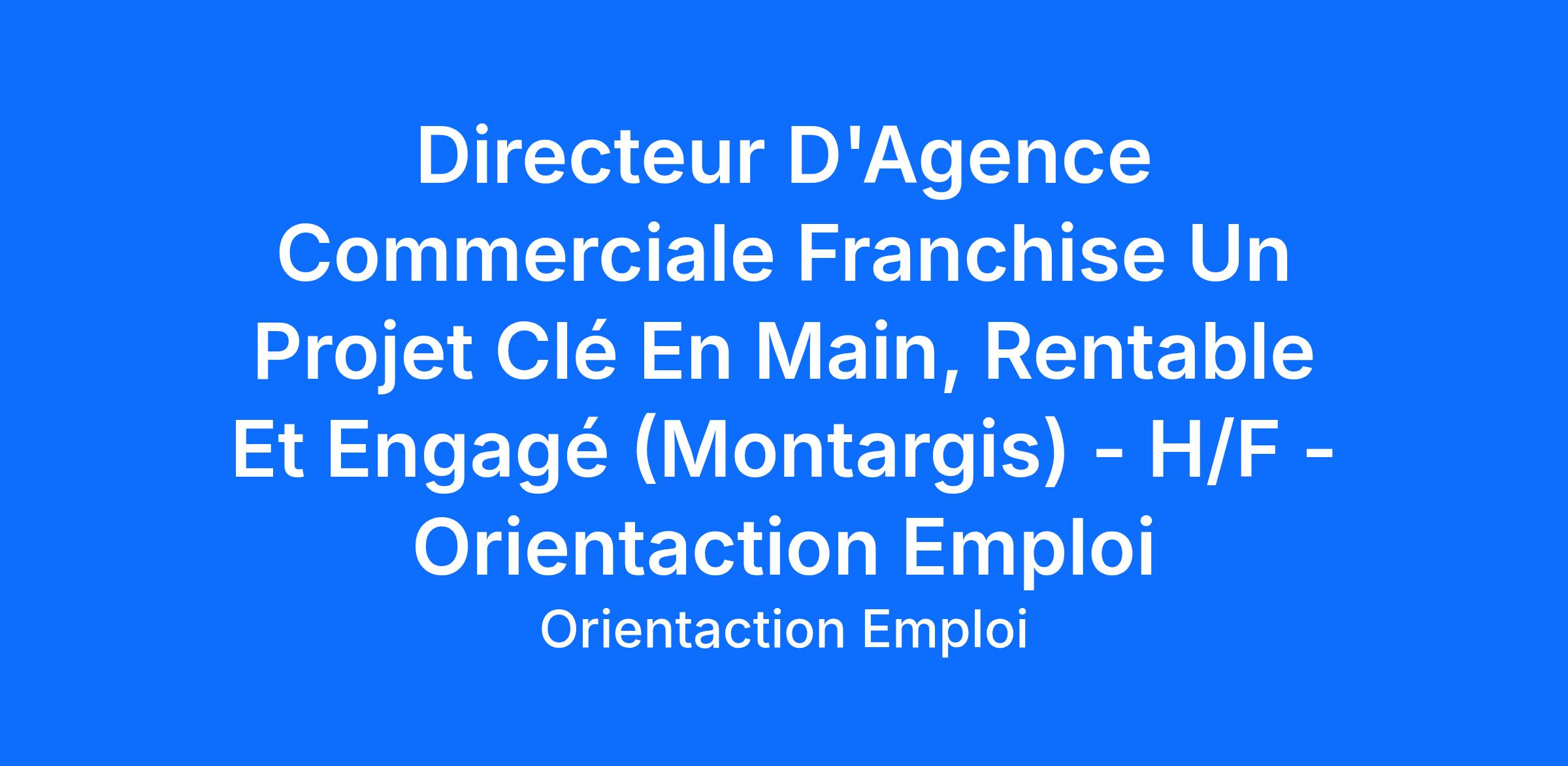 Directeur D'Agence Commerciale Franchise Un Projet Clé En Main, Rentable Et Engagé (Montargis) - H/F - Orientaction Emploi
