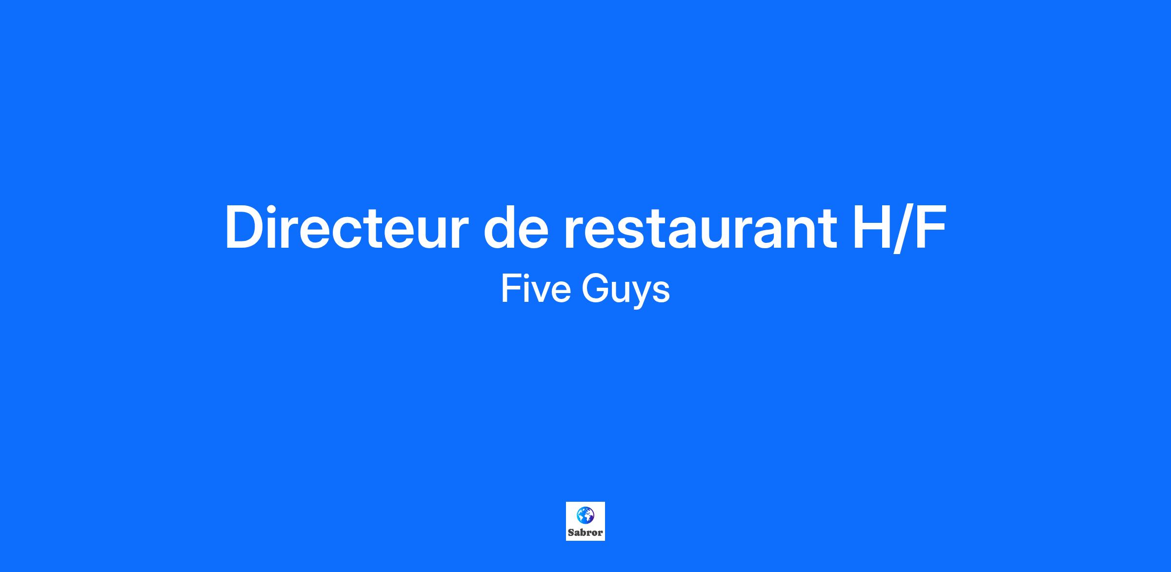 Five Guys est une entreprise américaine familiale spécialisée dans le burger « gourmet ». Tous nos produits sont frais et de qualité. Nos clients peuvent eux-mêmes élaborer leurs burgers parmi nos 250 000 compositions et profiter d’une succulente expérience client. Five Guys est aujourd’hui une marque en pleine expansion sur le territoire Français qui valorise les évolutions et permet également la mobilité interne. Quelques-unes de tes missions : Piloter votre restaurant en veillant au bon fonctionnement quotidien de celui-ci. Assurer la satisfaction client à 100% (service rapide et précis) Etre garant de la qualité des aliments et de la conformité des produits Five Guys Faire respecter les normes d’hygiène et de sécurité alimentaire au sein du restaurant Etre un véritable business partner pour ton équipe (développement des performances et des compétences individuelles) Superviser les opérations quotidiennes (commandes, inventaires, caisses, pertes et profits) Développer et contrôler la rentabilité du restaurant (gestion de la main d’œuvre, trésorerie, rapports financiers) Gérer le personnel (recrutement, évaluation de la performance, disciplinaire) Assurer la maintenance des équipements, des installations et de locaux Qui es-tu ? : Une personne ayant au minimum 1 an d’expérience sur un poste similaire. Enthousiaste, intègre, homme/femme de terrain, tu es doté(e) d’un véritable leadership et d’une bonne communication orale. Rejoindre Five Guys c’est : Rejoindre une entreprise en pleine croissance où les opportunités de développement sont nombreuses et multiples, Etre reconnu(e) et valorisé(e), Trouver une ambiance familiale et bienveillante où la recherche de performances est saine et motivante. Five Guys s'engage en faveur de la diversité culturelle, l'égalité hommes-femmes et l'emploi des travailleurs en situation de handicap. Rémunération : 46 000 € brut annuel
