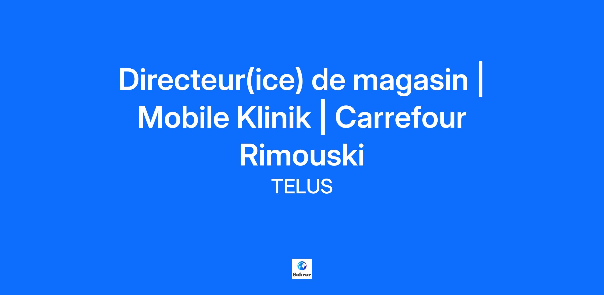 Description Directeur.rice de magasin Que signifie rejoindre Mobile Klinik propulsé par TELUS ? Notre objectif est de fournir aux Canadiens une excellente expérience Nous avons à coeur le bien-être des gens – nos clients, nos collectivités et notre équipe Nous travaillons sans relâche dans nos magasins pour offrir un service de premier ordre à nos clients et nous nous impliquons dans nos collectivités pour enrichir la vie des Canadiens en accomplissant des gestes de générosité, petits et grands Qu'est-ce que cela vous apporte ? Une rémunération très gratifiante ainsi que des primes, des concours et des programmes incitatifs sur une base régulière Réductions sur les technologies sans fil les plus récentes ici chez TELUS Groupes de ressources dirigés par des membres de l'équipe (TRG) soutiennent les membres de l'équipe qui s'identifient comme femmes, Autochtones, personnes ayant des capacités différentes, nouveaux arrivants, personnes noires, LGBTQ2+ ou qui sont des alliés Avantages médicaux, de vision et dentaires flexibles et personnalisables qui incluent des séances de massothérapie et 5000 $ pour le soutien en santé mentale Congés de maternité et parentaux, une couverture des traitements de fertilité et une couverture de l'affirmation de genre Régime de retraite et un plan d'achat d'actions TELUS Nous offrons une formation rémunérée pour garantir votre réussite Et bien plus encore Responsabilités Atteindre les indicateurs de performance clés et les objectifs de ventes Offrir une expérience client de première qualité Créer un environnement où les membres de l'équipe se sentent valorisés, peuvent grandir et fonctionner efficacement en tant qu'équipe Être le visage de la communauté dans la zone où votre magasin opère Développer des relations de référence, exécuter des promotions et assurer la notoriété de Mobile Klinik Guider l'équipe tout au long du parcours client en veillant à ce que les réparations, les soins, les ventes et les services soient excellents Développer une connaissance de niveau expert et diriger l'exécution des processus, des politiques et des procédures du magasin Gérer les stocks, y compris la réception et la commande de pièces et de produits, y compris les téléphones et accessoires d'occasion certifiés, de manière efficace et efficiente. Heures de travail et localisation Possibilité de travailler avec toutes nos marques Travailler selon un horaire flexible, y compris les soirs et les week-ends Les heures varient en fonction de l'emplacement et de la période de l'année Couverture des quarts de travail dans des lieux situés dans un rayon de 35 km Ce à quoi vous pouvez vous attendre après avoir postulé Notre processus de recrutement comprend plusieurs étapes conçues pour évaluer les qualifications et l'adéquation des candidats au poste. Salaire de base: 47 000$ - 57 000$Prime: Bonus mensuels basés sur la carte de pointage Veuillez noter que la rémunération indiquée dans cet affichage est en vigueur depuis avril 2025 et peut être sujette à des modifications. La rémunération totale réelle sera déterminée en fonction de facteurs tels que les connaissances, les compétences, la performance et l'expérience.