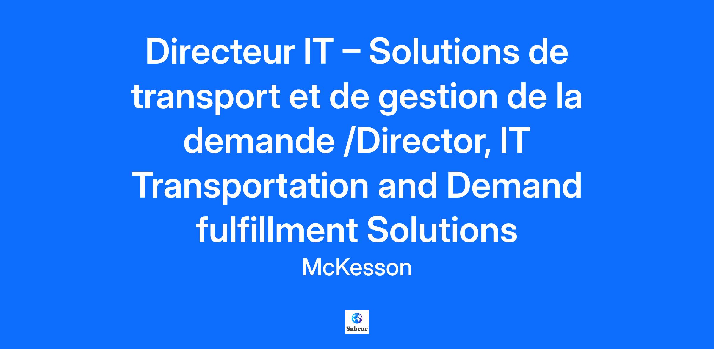 McKesson is an impact-driven, Fortune 10 company that touches virtually every aspect of healthcare. We are known for delivering insights, products, and services that make quality care more accessible and affordable. Here, we focus on the health, happiness, and well-being of you and those we serve – we care. What you do at McKesson matters. We foster a culture where you can grow, make an impact, and are empowered to bring new ideas. Together, we thrive as we shape the future of health for patients, our communities, and our people. If you want to be part of tomorrow’s health today, we want to hear from you. Le Directeur informatique des solutions de transport et de gestion de la demande (Canada) supervise la livraison et le support des applications pour la chaîne d'approvisionnement de McKesson Canada. Il dirige une équipe de professionnels de la technologie, favorisant la collaboration, l'innovation et l'excellence, conformément aux valeurs ICARE et ILEAD de McKesson. Il assure également le mentorat pour favoriser le développement professionnel. Ce que vous ferez Diriger les activités technologiques opérationnelles, gérer une équipe qui fournit des services selon les SOP et soutient les utilisateurs de la chaîne d'approvisionnement. Agir comme point de contact unique et exploiter les capacités élargies de l’équipe MT pour atteindre les résultats. Gérer une équipe multidisciplinaire, y compris des partenaires externes pour l’analyse, le développement et le support. Coordonner plusieurs projets pour assurer leur alignement avec les objectifs de l’entreprise. Analyser les besoins métier pour développer des solutions stratégiques. Évaluer les processus métier, les systèmes et les besoins des utilisateurs par rapport aux exigences. Ce que vous apportez Diplôme universitaire en informatique ou équivalent. Minimum de 10 ans d’expérience en technologie de l’information. Bilinguisme (français et anglais, écrit et parlé). Excellentes compétences en communication écrite et orale. Capacité à analyser les données pour prendre des décisions éclairées. Compétences exceptionnelles en leadership et capacité à motiver des équipes transversales. Esprit orienté vers les résultats et capacité à résoudre les problèmes. Capacité à travailler efficacement sous pression et dans l’ambiguïté. Exigences minimales Diplôme universitaire ou equivalent. Recquiere typiquement 12+ annees d'experience professionelle et 4+ ans d'experience manageriale. Compétences et expériences préférables Expérience avec les solutions ERP et les systèmes de transport (Oracle OTM, JDA BlueYonder). Connaissance des outils d’automatisation, d’intelligence artificielle et de robotique. Expérience en gestion de fournisseurs et en négociation de contrats. Expérience en gestion d’incidents critiques et en conformité réglementaire (SOX, cybersécurité). Le.la titulaire de ce poste aura à soutenir de façon quotidienne des clients internes et/ou externes à l’extérieur du Québec et/ou aux États-Unis. Par conséquent, ce poste requiert une maîtrise de l’anglais à l’écrit et à l’oral. Veuillez noter que le nombre de postes dont les tâches requièrent une connaissance de la langue anglaise a été restreint dans la mesure du possible. _________________________________________________________________________________________________________________________________ The IT Director of Transportation and Demand Fulfillment Solutions (Canada) oversees application delivery and support for McKesson Canada’s supply chain. They lead a team of technology professionals, fostering collaboration, innovation, and excellence in alignment with McKesson’s ICARE and ILEAD values. They also provide mentorship to support professional development. What You’ll Do Lead operational technology activities, managing a team that delivers services based on SOPs and supports supply chain users. Act as a single point of contact and leverage broader MT capabilities to achieve results. Manage a multidisciplinary team, including external partners for analysis, development, and support. Coordinate multiple projects to ensure alignment with company objectives. Analyze business needs to develop strategic solutions. Evaluate business processes, systems, and user needs against requirements. What You Bring Bachelor’s degree in Information Technology or equivalent. Minimum of 10 years of experience in Information Technology. Bilingual (French and English, written and spoken). Excellent written and verbal communication skills. Strong analytical skills and ability to make data-driven decisions. Exceptional leadership skills and ability to motivate cross-functional teams. Results-oriented mindset and problem-solving abilities. Ability to work effectively under pressure and in ambiguous situations. Minimum Requirements Bachelor’s degree or equivalent. Typically requires 12+ years of professional experience and 4+ years of managerial experience. Preferred Skills & Experience Experience with ERP solutions and transportation systems (Oracle OTM, JDA BlueYonder). Knowledge of automation tools, artificial intelligence, and robotics. Experience in vendor management and contract negotiation. Experience managing critical incidents and ensuring regulatory compliance (SOX, cybersecurity). The incumbent will be required to support internal and/or external clients outside of Quebec and/or in the United States on a daily basis. Therefore, this position requires proficiency in English, both written and spoken. Please note that the number of positions requiring English language skills has been limited as much as possible. We are proud to offer a competitive compensation package at McKesson as part of our Total Rewards. This is determined by several factors, including performance, experience and skills, equity, regular job market evaluations, and geographical markets. The pay range shown below is ali