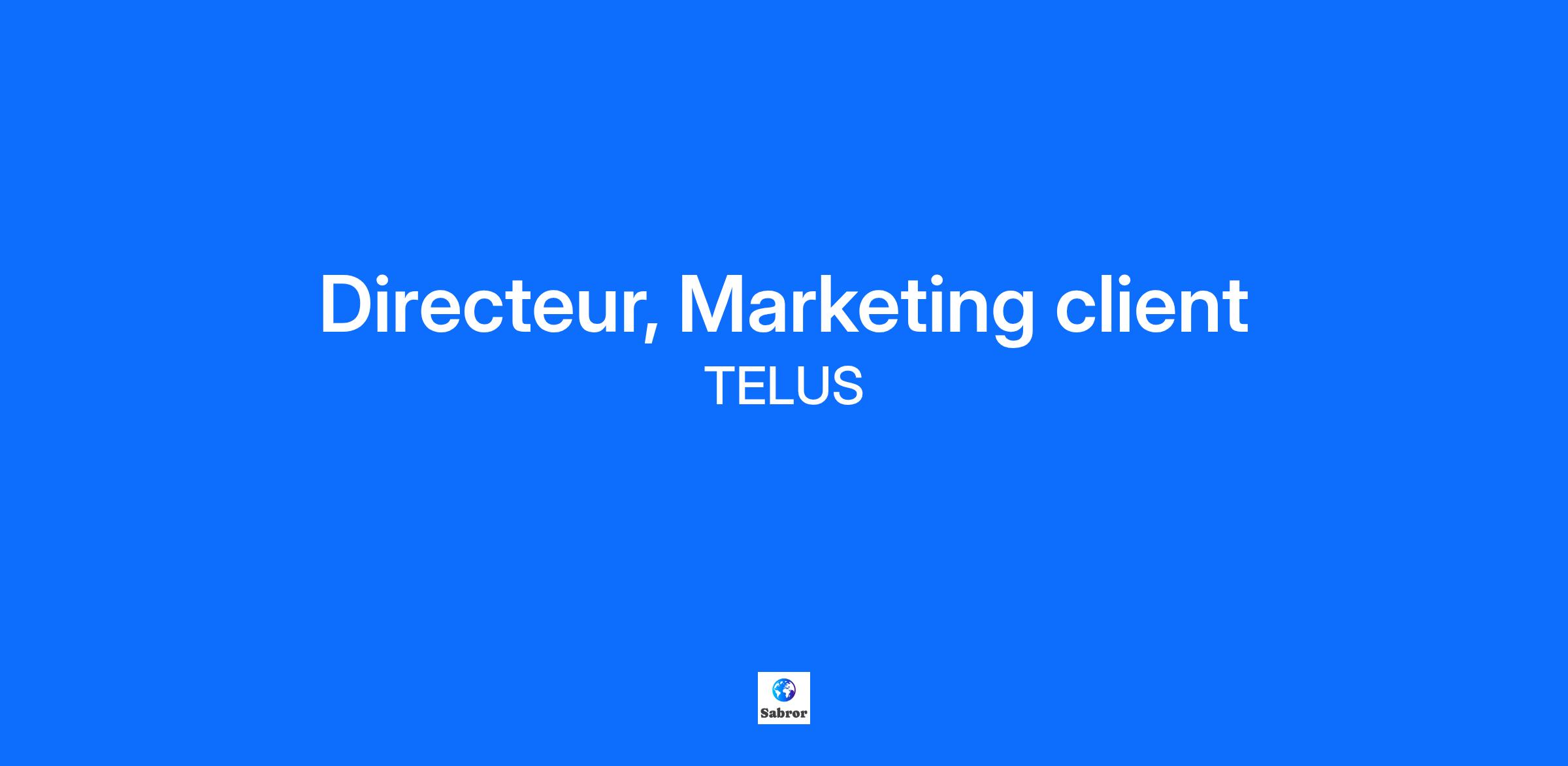 Description Nous sommes l'équipe Marketing d'affaires de TELUS (TBM), une équipe dynamique, entrepreneuriale et engagée déterminée à servir les clients affaires qui représentent un segment de croissance important pour TELUS. Nous sommes aussi passionnés par notre équipe et nos clients que par notre entreprise, et nous recherchons des personnes qui sont enthousiastes à l'idée de penser et de livrer différemment pour mener le marché. Nous comptons parmi nos membres d'équipe des gens comme vous : curieux, inclusifs, analytiques, novateurs et authentiques. Nous croyons que vous trouverez notre culture de haute performance enrichissante sur le plan personnel, stimulante et enrichissante sur le plan professionnel. Joignez-vous à notre équipe et faisons en sorte que l'avenir soit plus sympathique. Nous sommes à la recherche d'un directeur, Marque et Marketing client, qui se joindra à notre équipe. Vous contribuerez grandement à faire de TELUS Affaires le chef de file de la marque dans tous les segments d'affaires, y compris les petites entreprises, le secteur commercial et le secteur public. Ce que vous ferez : À titre de directeur, Marque et Marketing client, vous amènerez votre équipe à : Stimuler la génération de la demande : Élaborer des stratégies, planifier et exécuter des campagnes à réseaux multiples afin de générer de la demande pour nos produits d'affaires par le biais de publicités ciblées, de médias sociaux, de marketing de la recherche/référencement naturel, d'événements, de campagnes de marketing par courriel et de création de contenu Élévation de la marque commerce B2B : Évolution de notre identité visuelle, établissement de lignes directrices claires, enrichissement de notre bibliothèque d'actifs et présentation des meilleures pratiques aux autres unités organisationnelles en assurant l'harmonisation avec l'ensemble de la marque TELUS Diriger les campagnes de marque et de médias sociaux : Concevoir et exécuter des campagnes annuelles de médias sociaux et de gestion de la marque, y compris le programme primé #AidonsNosPME, gérer les relations avec les agences de création et fournir un leadership en matière de noms et de messages Gestion des relations et des prévisions avec les agences : Superviser les relations avec plusieurs agences créatives, médias et spécialisées, offrant un leadership et des prévisions aux autres équipes sur la dénomination, le développement de propositions de valeur et les messages de produits pour assurer l'alignement du cadre de marque Développer les études de marché : Développer et étendre notre pratique d'études de marché, en produisant et en distribuant des études de clientèle à fort impact. Fournir des éléments clés aux cadres supérieurs et aux équipes des produits de TELUS au moyen d'études sur mesure, d'études de suivi, de tests publicitaires, de sondages sur l'expérience client et de panels de clients Renforcer la mobilisation à l'égard de la marque : Partager et renforcer la marque TELUS Affaires au moyen de divers programmes de mobilisation de la marque par l'intermédiaire d'événements, de tables rondes et d'autres activités de mobilisation de la haute direction, en collaboration avec des partenaires nationaux et régionaux Superviser la mise en marché et le marketing de produits : Assumer la responsabilité de bout en bout de la stratégie, de la planification et de l'exécution de la mise en marché et du marketing de produits, y compris les communications canal, la création d'actif de vente et les messages aux clients pour les lancements de produits majeurs et les campagnes clés (p. ex. Vendredi fou) Gestion des plateformes de marketing numérique : Gestion de la feuille de route et du contenu de nos plateformes de marketing numérique afin de sensibiliser les clients et les équipes de vente à nos produits et services de pointe de l'industrie Favoriser les partenariats stratégiques : Établir des partenariats avec un grand nombre de marques, d'associations et de groupes communautaires pour proposer des offres et du contenu à leurs membres et à leurs clients, ce qui stimule les affaires de TELUS Qualifications Ce que vous apportez : Leadership stratégique : Expérience avérée en leadership dans la création et la gestion d'équipes de marketing très performantes avec une mentalité stratégique et des capacités d'exécution pratiques Expertise en marque et en demande : Forte expérience dans le développement de marque, la génération de demandes à réseaux multiples et la stratégie de mise en marché Compétences analytiques et de communication : Excellentes compétences analytiques pour tirer des éléments clés d'études de marché et de solides capacités de communication pour articuler des concepts complexes avec divers intervenants Gestion d'agence : Expérience avérée de la gestion efficace d'agences créatives, médiatiques et spécialisées Gestion des intervenants : Aptitude avérée à gérer les relations avec divers intervenants internes et externes Souplesse opérationnelle : Adaptabilité et résilience dans un environnement en constante évolution Atouts : Contexte d'études en marketing, en affaires ou dans un domaine connexe, et/ou titulaire d'une maîtrise en administration des affaires 10+ années d'expérience de travail progressive et pertinente en marketing, en gestion de marque ou dans un domaine connexe Expertise préalable en télécommunications Expérience en marketing commerce B2B Ce qu'offre TELUS : À TELUS, nous comprenons qu'une carrière épanouissante va au-delà du quotidien. Nous offrons : Des occasions de travailler sur des projets à forte valeur ajoutée et à grande visibilité qui font un impact réel Des styles de travail flexibles qui soutiennent votre équilibre travail-vie personnelle Le perfectionnement personnel continu pour vous aider à perfectionner vos compétences et votre carrière Un 