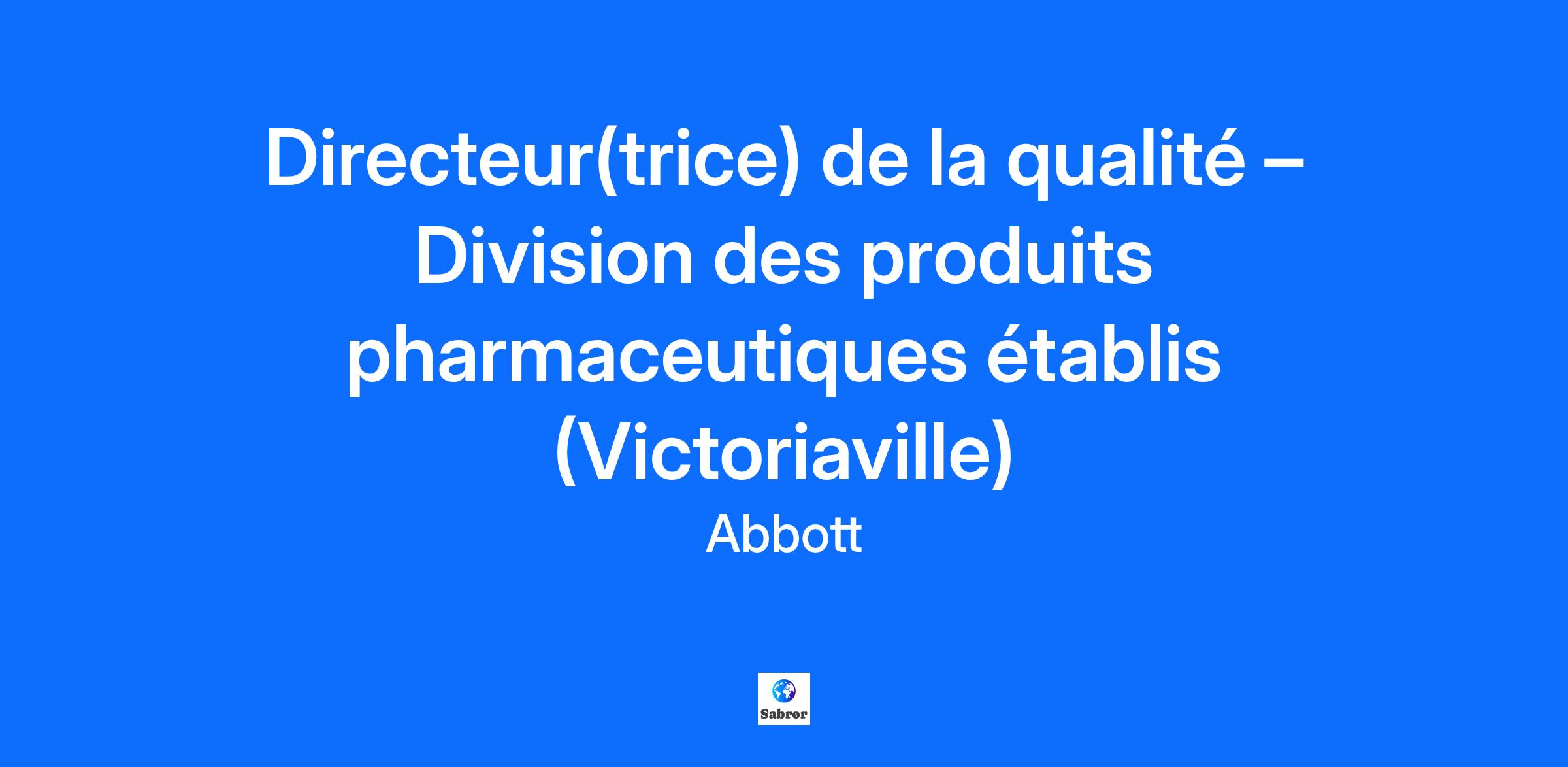 JOB DESCRIPTION: À propos d’Abbott Abbott est un chef de file mondial de l’industrie des soins de santé qui crée des solutions scientifiques révolutionnaires visant à améliorer la santé des gens. L’entreprise est résolument tournée vers l’avenir, à l’affût des changements qui pourraient survenir dans le domaine des sciences et des technologies médicales. Être à l’emploi d’Abbott En étant à l’emploi d’Abbott, vous pourrez faire un travail qui compte, vous perfectionner et apprendre, prendre soin de vous et des membres de votre famille, rester fidèle à ce que vous êtes et vivre pleinement. Vous pourrez : profiter de possibilités d’avancement professionnel au sein d’une entreprise internationale qui vous permettra de bâtir la carrière dont vous rêvez; travailler pour une entreprise reconnue dans des douzaines de pays partout dans le monde comme étant un excellent milieu de travail et figurant parmi les entreprises les plus admirées dans le monde dans le classement Fortune; travailler pour une grande entreprise reconnue comme étant l’une des meilleures où travailler, notamment pour ce qui a trait à la diversité du personnel, à la conciliation travail-famille ainsi qu’à la place des femmes dans les postes de cadres et les postes scientifiques. L’occasion à saisir Le titulaire de ce poste travaillera à notre usine à Victoriaville, au sein de la division des produits pharmaceutiques établis. Dans cette division, nous nous engageons à apporter les avantages de nos médicaments de confiance à un plus grand nombre de personnes dans les pays à la croissance la plus rapide du monde. Notre vaste portefeuille de médicaments génériques de marque, différenciés et de haute qualité, couvre de nombreux domaines thérapeutiques, notamment la gastro-entérologie, la santé des femmes, les troubles cardiométaboliques, la gestion de la douleur et du système nerveux central, et les troubles respiratoires. En tant que Directeur(trice) de la qualité, vous sera chargé de la direction stratégique et de la gestion de projets en matière d’assurance de la qualité pour les produits de l’établissement de Victoriaville, en assurant le respect des exigences réglementaires applicables et des exigences d’Abbott en collaboration avec tous les services pertinents. Il conduira les activités relatives à la qualité de sorte que des produits sans danger, efficaces et de qualité puissent être fournis conformément aux exigences réglementaires et commerciales. Le titulaire devra gérer les ressources qui lui seront attribuées afin de contribuer à l’atteinte des objectifs commerciaux et au respect par l’établissement des exigences réglementaires applicables et des ententes de qualité. Le titulaire de ce poste relèvera du directeur des opérations mondiales, Assurance de la qualité et sera sous la supervision indirecte du directeur de l’établissement. Ce que vous ferez Veiller à ce que tous les produits de l’établissement soient fabriqués, mis à l’essai et rendus disponibles dans le plus strict respect de tous les règlements pertinents et de toutes les exigences d’Abbott. Gérer les services sous sa responsabilité, soit le Contrôle de la qualité et l’Assurance de la qualité. Qualifier les fournisseurs de matières de départ et de matériel d’emballage, de même que les sous‑traitants en fabrication, y compris les ententes de qualité connexes correspondantes. Concevoir, mettre en œuvre et maintenir un programme approprié de gestion des fournisseurs. Aider les services sous sa responsabilité à résoudre des problèmes et à prendre des décisions. Traiter les demandes d’information provenant des autorités, surtout celles portant sur les inspections. Mettre les produits sur le marché conformément aux règlements applicables. Gérer les activités liées à la qualité au nom de l’établissement. Veiller au respect du système de qualité de la DPÉ d’Abbott ainsi que des autres règlements applicables. Mener à bien les projets de l’établissement et garantir que la qualité est prise en compte dans tous les aspects des projets. Maintenir en vigueur tous les permis de sorte que tous les produits soient fabriqués, testés et rendus disponibles conformément à tous les règlements pertinents ainsi qu’au modèle d’affaires de la DPÉ. Incorporer une culture de la conformité afin d’assurer le succès des audits et des inspections et la mise sur le marché de produits de grande qualité qui sont sans danger et efficaces, sans perturbation de la chaîne d’approvisionnement. Compétences requises Baccalauréat requis, en pharmacie ou dans une discipline scientifique pertinente. Plus de 10 ans d’expérience à des postes de leadership dans l’assurance de la qualité, les opérations ou le génie pharmaceutique. Expérience technique, scientifique ou sectorielle avec exposition suffisante au secteur pharmaceutique ou aux industries connexes. Connaissance détaillée et étendue des règlements, lignes directrices et processus pertinents. Expérience de la direction et aptitude éprouvée à exercer de l’influence et à nouer des relations. Capacité de s’adapter rapidement à un contexte changeant. Bonne feuille de route en matière d’amélioration continue. Connaissances étendues d’un vaste éventail d’opérations de fabrication pharmaceutique et d’essai. Le ou la titulaire du poste doit pouvoir bien communiquer en anglais (50% du temps), car ses fonctions exigent des interactions avec des intervenants et collègues se trouvant à l’extérieur du Québec ou du Canada. Suivez vos aspirations professionnelles chez Abbott pour diverses opportunités dans une entreprise qui peut vous aider à construire votre avenir et à vivre votre meilleure vie. Abbott est un employeur garantissant l'égalité des chances et engagé en faveur de la diversité des employés. Visitez notre si