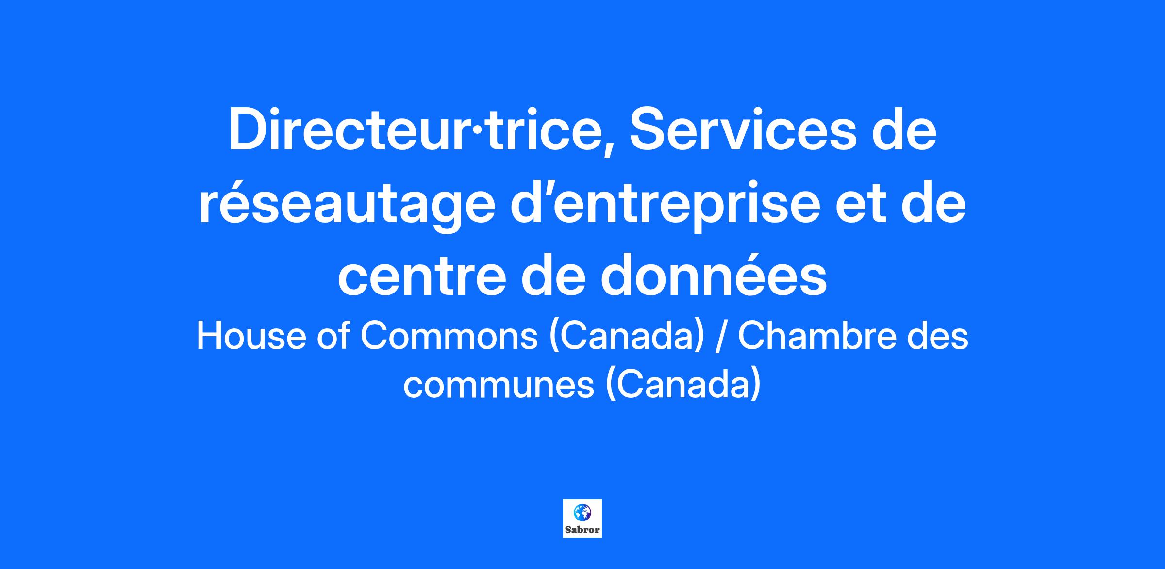 Description de l'entrepriseL'Administration de la Chambre des communes fournit aux député∙e∙s et à leur personnel des services exceptionnels afin d’appuyer la démocratie parlementaire. Notre main-d'œuvre talentueuse et dévouée est au cœur de notre succès. Nous valorisons la diversité sous toutes ses formes et nous reconnaissons que chacun∙e peut apporter une contribution et a le potentiel de s’épanouir. Si vous rêvez de vous joindre à une organisation assez petite pour que l’on vous remarque, mais assez grande pour vous offrir une belle carrière, nous voulons vous connaître !Description du posteLes Services numériques et biens immobiliers de la Chambre des communes cherchent actuellement à doter le poste de directeur·trice, Services de réseautage d’entreprise et de centre de données.Dans le cadre de vos fonctions, vous serez responsable d’assurer la prestation intégrée et transparente des services d’infrastructure numérique qui appuient les députés, l’Administration de la Chambre et leurs partenaires.À titre de cadre supérieur, vous dirigerez une équipe multidisciplinaire axée sur le réseautage d’entreprise, les centres de données, les plateformes d’hébergement et d’autres services d’infrastructure de base. Vous définirez des stratégies, établirez des priorités et chapeauterez les initiatives visant à renforcer la résilience, la stabilité et la sécurité de l’environnement numérique parlementaire, en veillant à ce que les plateformes fondamentales demeurent fiables et prêtes pour l’avenir.Vous fournirez également une orientation stratégique afin d’assurer la viabilité à long terme des services d'infrastructure tout en favorisant l’innovation et l’amélioration continue. À ce titre, vous élaborerez des feuilles de route, superviserez les contrats importants et les relations avec les partenaires, gérerez des budgets pluriannuels et veillerez à la mise en place de pratiques de gestion des risques permettant de fournir des services d’entreprise sûrs, stables et à haut rendement.La personne titulaire de ce poste supervisera les équipes responsables de la prestation des services d’infrastructure essentiels à la mission dans le cadre d’un modèle d’assistance 24 heures sur 24, 7 jours sur 7. Les activités liées à ce poste peuvent donc nécessiter des horaires irréguliers pour répondre aux besoins opérationnels. La personne titulaire de ce poste doit travailler sur place.Principales raisons de se joindre à l’équipe des Produits numériques et de l’infrastructure :L’équipe des Produits numériques et de l’infrastructure propose des projets exigeants et gratifiants qui conjuguent vision stratégique, innovation technologique et leadership dans un environnement dynamique et stimulant. Par votre contribution à la mise en œuvre de solutions de pointe qui améliorent l’expérience des utilisateurs et soutiennent les objectifs de l’organisation, vous jouerez un rôle déterminant dans l’avancement de la technologie et la promotion de l’excellence à la Chambre des communes.Occasions de formation et de perfectionnement ;Équilibre vie professionnelle et vie personnelle/semaine de travail de 35 heures ;4 semaines de vacances (au minimum).QualificationsÉtudesDiplôme dans un domaine pertinent comme les technologies de l’information et l’administration des affaires ou une combinaison acceptable d’études, de formation et d’expérience.ExpérienceExpérience de la direction de vastes équipes multidisciplinaires dans un environnement complexe et axé sur la technologie ;Expérience de la gestion de produits et de services d'infrastructure d’entreprise, comme les réseaux, les centres de données ou les services d’entreprise essentiels ;Expérience de l’élaboration et de la mise en œuvre de stratégies pluriannuelles, de feuilles de route et de cadres opérationnels ;Expérience de l’établissement et du maintien de relations avec des partenaires/fournisseurs externes et de la négociation de contrats ou d’ententes sur les niveaux de service ;Expérience de la gestion de budgets, de l’affectation des ressources et de l’atténuation des risques à l’appui des services numériques ;Expérience de la prestation de conseils à la haute direction sur les stratégies technologiques et de l’orientation sur les solutions d’infrastructure.AtoutsExpérience de la direction de transformations de la prestation de services ou d’initiatives de modernisation numérique à grande échelle ;Expérience dans le secteur public ou dans un environnement hautement réglementé.Informations supplémentairesNous nous engageons à créer un milieu de travail inclusif, notamment en adoptant un processus de recrutement et de sélection sans obstacle. Si vous avez une demande d’adaptation, avez besoin de matériel dans un format accessible, ou d'un soutien supplémentaire dans le cadre du processus de candidature, veuillez communiquer avec l’équipe des Services de recrutement et de sélection à l’adresse [email protected].À chaque poste bilingue correspond un profil linguistique établissant le niveau de compétence en langue seconde nécessaire pour la compréhension de l’écrit, l’expression écrite et l’interaction orale. Le profil de ce poste est CCC. Des candidatures avec d'autres profils linguistiques pourront être prises en considération.Veuillez noter que le candidat peut être amené à :Travailler des heures irrégulières, y compris le soir et la fin de semaineTransporter un appareil mobileVoyager au niveau national et/ou international selon les besoinsNous vous invitons à sauvegarder une copie de l’avis d’emploi. Une fois la date limite passée, ces documents ne seront plus accessibles.Les personnes qui se qualifient pourraient être pris∙e∙s en compte pour des occasions d’emploi futures, de durée indéterminée ou déterminée, pour ce 