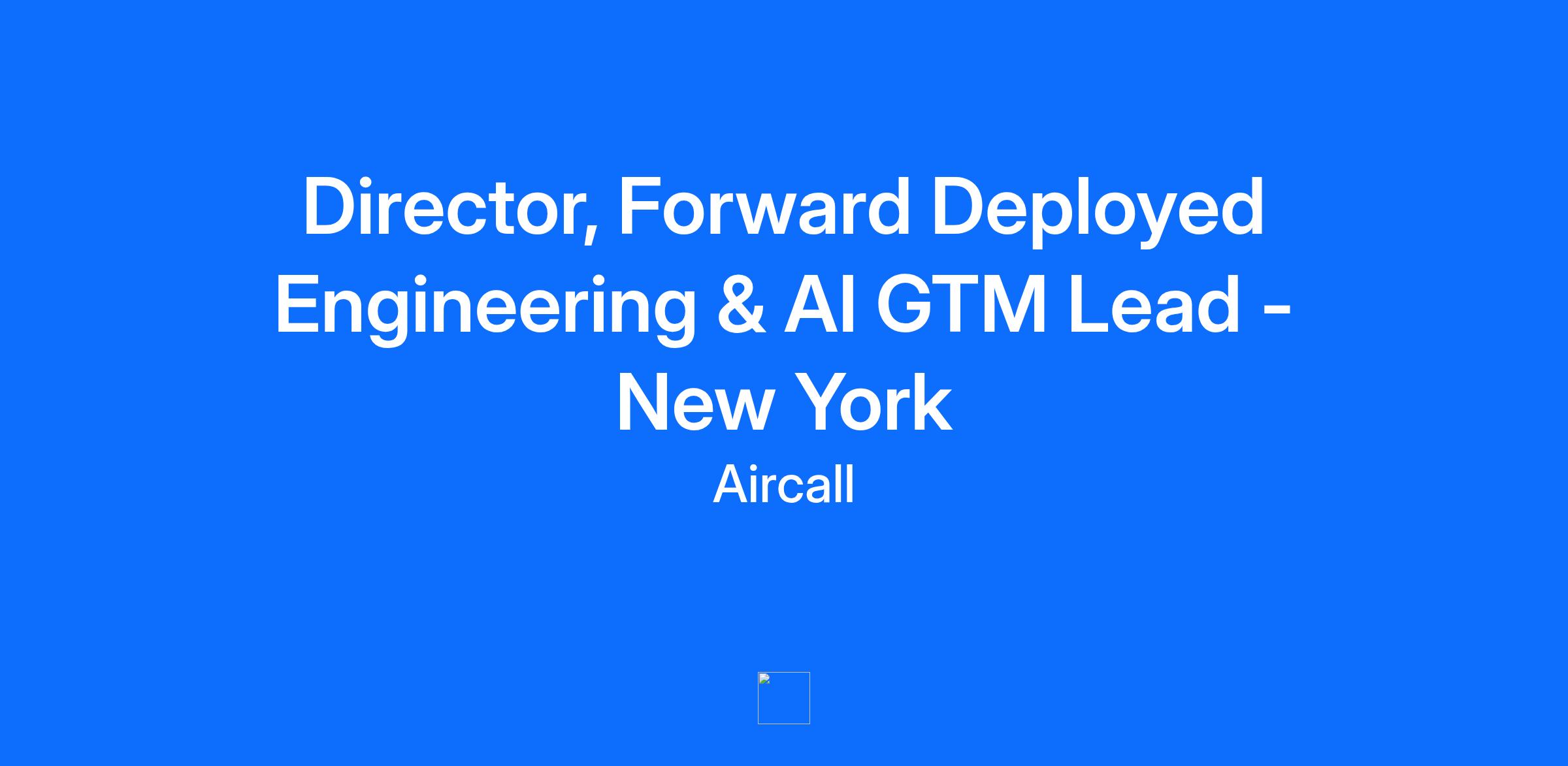Aircall is a unicorn AI-powered customer communications platform used by 22,000+ companies worldwide to drive revenue, faster resolutions, and scale. We’re redefining what a customer communications platform can be—by combining voice, SMS, WhatsApp, and AI into one seamless workspace. Our momentum comes from a simple but powerful idea: help every customer-facing team work smarter, not harder. Aircall’s AI Voice Agent automates routine calls, AI Assist streamlines post-call tasks, and AI Assist Pro delivers real-time guidance that helps people do their best work. The result—companies grow revenue, deliver faster resolutions, and scale service. We’ve built a product customers love and a business that scales fast. Aircall operates in nine global offices (Paris, New York, San Francisco, Sydney, Madrid, London, Berlin, Seattle, and Mexico City), and is backed by world-class investors. Our teams are shipping AI innovation faster than ever and expanding across new product lines and markets. At Aircall, you’ll join a company in motion—ambitious, profitable, and product-driven—where impact is visible, decisions are fast, and growth is real. How We Work at Aircall: At Aircall, we believe in customer obsession, continuous learning, and delivering extraordinary outcomes. We value open collaboration, taking ownership, and making smart, informed decisions with speed and precision. If you thrive in a fast-paced, team-driven environment where curiosity, trust, and impact matter, you'll fit right in About the Role: The Director, Forward Deployed Engineering & AI GTM Lead owns the technical execution, go-to-market effectiveness, and organizational adoption of Aircall’s AI Communication Agent. This role leads and scales the Forward Deployed Engineering (FDE) team while remaining closely engaged in customer-facing work to ensure consistency, quality, and impact across all deployments. Operating at the intersection of Applied AI, technical delivery, and go-to-market execution, this leader works across Sales, Account Management, Product, Engineering, Marketing, and Support to ensure AVA is successfully positioned, implemented, and scaled. The role plays a critical part in shaping how Aircall brings AI to market - translating field execution into repeatable models, and customer learnings into product and GTM evolution. \n Key Responsibilities: Lead, coach, and grow the Forward Deployed Engineering team from 3 FDEs today to 7–8 by H1 ‘26, setting clear standards for technical excellence, execution rigor, and customer impact. Stay closely involved in active customer engagements and strategic initiatives, providing technical guidance, solution direction, and senior-level support where needed. Drive strong AI Agents go-to-market execution by embedding disciplined operating practices across the team, including pipeline hygiene, forecasting accuracy, and effective collaboration with Sales, AM, SE, Partners, and CEs. Pilot the team using data-backed operating models, defining and tracking clear input and output KPIs to assess performance, drive accountability, and accelerate AI Agent adoption (e.g., activity metrics, time-to-value, deployment quality, usage and revenue impact). Maintain deep technical credibility by staying close to the product and real-world use cases — comfortable coding in at least one language and highly fluent with APIs, integrations, and modern system architectures. Guide the design and delivery of scalable AI Agent deployments, including integrations with CRMs, help desks, and System-of-Truth platforms. Build and evolve playbooks, reference architectures, and deployment frameworks that enable repeatable, high-quality execution as the team scales. Lead cross-functional programs focused on AI Agents success, coordinating efforts across Product, Engineering, Marketing, Support, and GTM teams. Represent field execution and customer needs in close partnership with Product and Engineering, influencing roadmap priorities and delivery decisions. Drive internal enablement and upskilling across GTM teams, ensuring Aircall Voice Agent is clearly understood, well-positioned, and effectively adopted. Qualifications: 7+ years of experience in technical sales, solutions engineering, forward-deployed engineering, or professional services roles, with prior people-management experience strongly preferred. Strong entrepreneurial mindset, as this is a startup within a startup (even better if former founder) Strong technical foundation, including hands-on experience with APIs, integrations, and data-driven systems; ability to code in at least one language (e.g., Python or JavaScript). Demonstrated ability to lead execution in complex, cross-functional environments while staying close to the field. Experience working within overlay or specialist GTM models, with strong understanding of sales cycles, forecasting, and execution best practices. Proven ability to build scalable playbooks and operating models that move teams beyond ad hoc delivery. Excellent communication and stakeholder management skills, translating between technical and business audiences. Strong interest in AI and applied automation; prior experience in AI, conversational AI, or adjacent domains is a significant plus. Experience with CRMs, help desks, and System-of-Truth architectures is highly desirable. What Success Looks Like Agents are consistently deployed with high quality and clear business impact across customers. The FDE team scales effectively with shared standards, reusable frameworks, and predictable execution. Go-to-market execution for Agents is disciplined, data-driven, and improving quarter over quarter. Cross-functional teams operate with strong alignment around AI Agents' priorities, launches, and roadmap decisions. Field learnings continuously inform product evolution and GTM strategy, strengthening Aircall’s leadership in applied AI. \n $160,000 - $200,000 a year This base range is not including an annual
