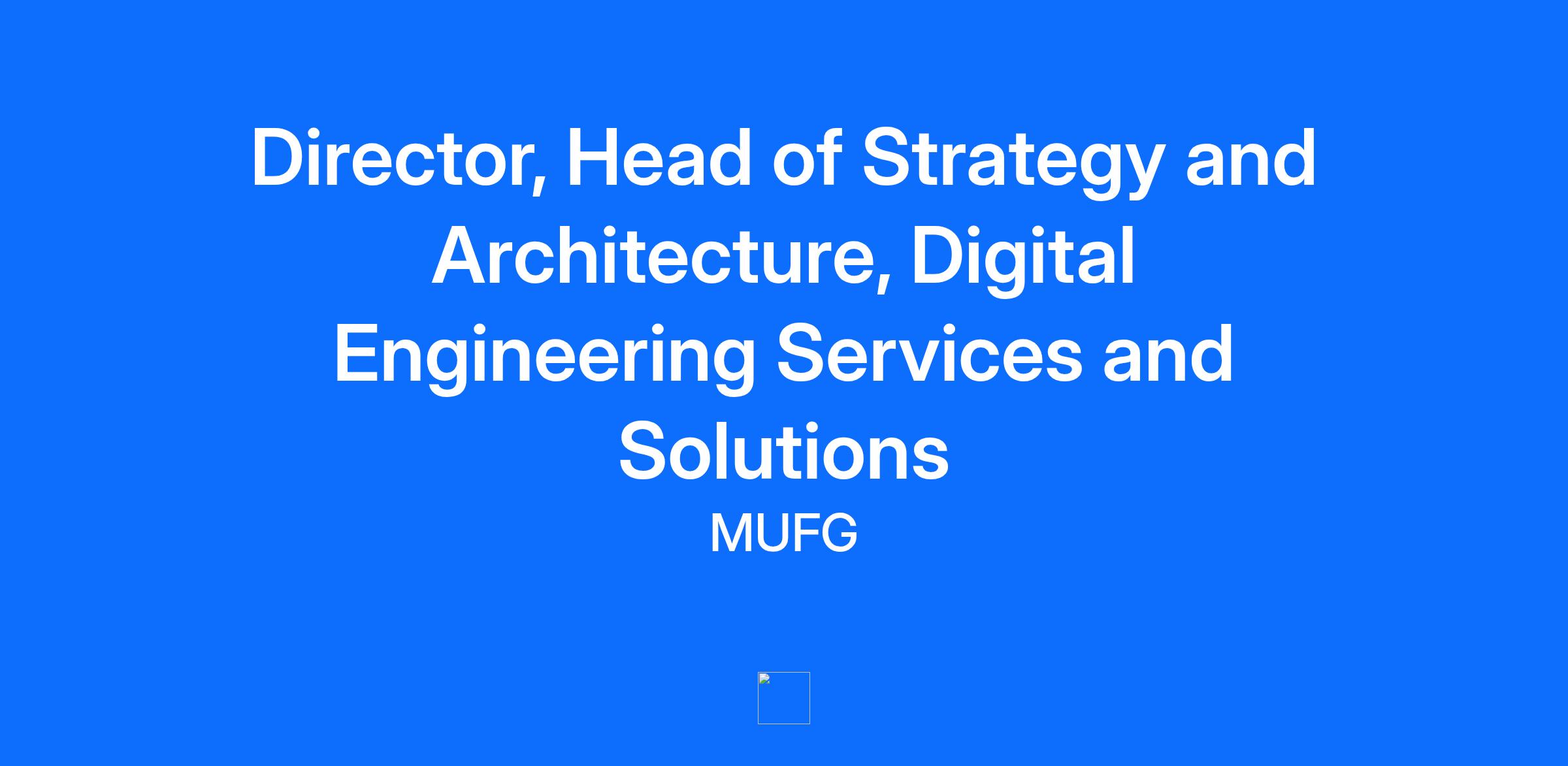 Do you want your voice heard and your actions to count? Discover your opportunity with Mitsubishi UFJ Financial Group (MUFG), one of the world’s leading financial groups. Across the globe, we’re 150,000 colleagues, striving to make a difference for every client, organization, and community we serve. We stand for our values, building long-term relationships, serving society, and fostering shared and sustainable growth for a better world. With a vision to be the world’s most trusted financial group, it’s part of our culture to put people first, listen to new and diverse ideas and collaborate toward greater innovation, speed and agility. This means investing in talent, technologies, and tools that empower you to own your career. Join MUFG, where being inspired is expected and making a meaningful impact is rewarded. NUMBER OF DIRECT REPORTS Between 9 – 15 indirect (dotted line) reports, direct reports TBC. MAIN PURPOSE OF THE ROLE The Head of Strategy and Architecture, Digital Engineering Services & Solutions (DES) is responsible for articulating, developing, leading and driving the strategic direction and technical architecture of the Digital Engineering Services & Solutions department. The role will cover Digital Engineering Services & Solutions incorporating Infrastructure and Service Management across EMEA Bank and International Securities and the countries that those entities operate in (15 plus). The role will be accountable for leading and driving the department’s strategic plans ensuring alignment and integration with MUFG’s strategic goals, including Medium Term Business Plans (MTBP) across the Business and Technology. The role will establish and design robust technical roadmaps to support a drive and transformation to a modern and digital technology architecture across the department, working closely with the various functions in the department to define a path to reach business needs. To enable this the role holder will have proven capability of designing modern, digital architecture and strategy fit for immediate and future technology advancements. The Head of Strategy and Architecture, Digital Engineering Services and Solutions will play a pivotal role in driving transformation, identifying emerging technologies and leveraging them to gain competitive advantage. The role holder will have extensive proven experience of establishing, creating and driving delivery of strategic digital transformation in global organisations. The role holder will have indirect leadership of a team of Strategy and Architect leads, fostering a culture of technical enterprise architectural and engineering excellence. The role holder will have proven experience of leading and influencing both directly and indirectly in global organisations. This is a senior leadership position and an integral part of the Digital Engineering Solutions and Services Leadership team. The role will require proven experience of influencing and communicating with C level and Board level executives. KEY RESPONSIBILITIES Lead the design, development, operation and management of the departments strategy and architectural roadmaps ensuring alignment with business requirements and strategic goals. Develop the departments short, medium and long term strategic goals and objectives, including defining the vision and mission.. Collaborate with business units, operational teams, application owners and enterprise architecture to shape, document and execute the Digital Engineering Services and Solutions department strategy. Maintain a clear architecture vision for the Digital Engineering Services and Solutions department that represents the 3 – 5 year roadmap for the department and organisation highlighting the key milestones required to achieve this. Articulate and align Senior Stakeholders on the department’s strategic direction, communicating progress towards the milestones. Develop appropriate strategic measures to monitor progress against the strategic objectives ensuring they are visible to relevant stakeholders. Establish clear measurable goals aligned with the strategy to analyse department progress and KPI’S. Champion adoption of the department’s strategic roadmaps across the business. Continuously review the department’s strategy to ensure its validity and appropriateness for MUFG to achieve its business goals. Identifying opportunities to develop and refine the departments strategy. Work with Digital Engineering Services and Solution Pillar Leads to define roadmaps and feed into the wider department’s strategy. Contribute to and align with the Enterprise Architecture. Represent Digitial Engineering Services and Solutions department at the Architectural Review Board with authority to approve designs on the department’s behalf. Lead a team of Strategy Leads and Architects to provide technical strategy and roadmaps on behalf of Digital Engineering Services and Solutions to shape the departments landscape. Regularly assessing and improving the departments technology landscape, incusing identifying opportunities for innovation and optimisation Interpret relevant regulatory, requirements and security, design and technical best practices and translate these to business aligned Digitial Engineering requirements. Work closely with industry partners, vendors and the wider technology ecosystems to leverage external expertise and best practices. Conduct market research and competitive analysis to identify emerging technologies and trends SKILLS AND EXPERIENCE Essential: 10 yr. plus years in technology strategy definition and business case development. Experience in applying strategic frameworks and tools for analysing strategic problems and developing strategies. Extensive experience in Senior Strategy within Technology, Infrastructure and Operations ( Service Management). (10 years plus) To enable this the role holder will have proven capability of designing modern, digital architecture and strategy fit for imme