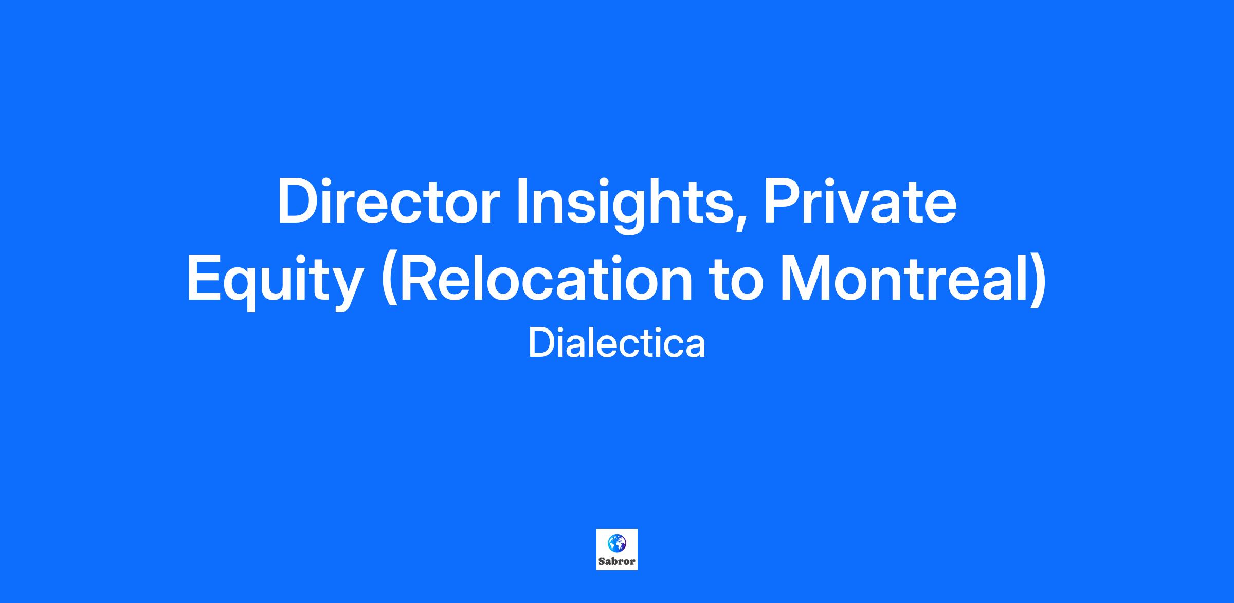 About Dialectica Dialectica is a leading B2B information services firm that serves the world's top consulting, investment and largest corporate businesses, by enabling them to gather real-time information and insights from industry experts across various markets, industries, and regions. Dialectica has been recognized as one of Europe’s fastest-growing companies by the Financial Times for 5 years in a row, a Top Employer for Recent Graduates by The Career Directory in Canada and a Best Workplace. We believe in supporting our people to do their best work and grow, and building a dynamic, empowering, and respectful workplace is core to our purpose: Accelerate the shift to a prosperous society by empowering better decision-making. For more information, visit dialecticanet.com What you will do The Insights Private Equity group at Dialectica plays a key role in driving growth and scaling an emerging business unit within the company. Your primary responsibilities will include: Proactive Content Develop proactive content on topics of interest to private equity clients in your coverage area Lead exploratory sessions to discuss proactive content with clients and generate client opportunities Scoping & Technical Sales Scope client needs and generate client opportunities / project mandates across the full suite of Dialectica’s offering for Private Equity (Expert Calls, Voice of Customer, M&A Mapping, Deal Advisors, Origin etc). Product Delivery & Relationship Management Manage Insights product team delivery and quality assurance directly (e.g. Voice of Customer Insights, M&A Mapping etc). Work with other product groups to ensure quality assurance and excellence in delivery across the full suite of Dialectica’s offering Play the lead role in developing client user penetration through project relationships and leverage opportunities to expand the user base through referrals and relationship building. Product Innovation Find opportunities to innovate Dialectica’s Insights product offering for private equity clients by testing and co-creating new Insights modules with clients Account Management Own and nurture both senior relationships and central budget-holder relationships to advocate for Dialectica within your coverage area. Handle annual renewals and package commitments sale processes. What we are looking for 11+ years of professional services / consulting or equivalent experience; transactions experience highly valued Exceptional interpersonal and communication skills, with the ability to influence and engage stakeholders at all levels Strong business acumen and strategic thinking, with the ability to identify opportunities for revenue growth and market expansion Demonstrated leadership experience, with the ability to inspire and motivate colleagues to achieve ambitious goals Results-oriented mindset, with a focus on delivering exceptional value to clients and driving business growth What you will get Be part of a creative, entrepreneurial and fast-paced team Support and coaching from some of the most engaging colleagues around Opportunities to develop new skills and progress your career in a global organisation Learning and development programs Competitive compensation schemes RRSP with employer match Comprehensive health coverage (life, medical, dental, vision, and employee assistance programs) Substantial Wellbeing program (allowance, flexible and volunteering days A diverse and inclusive culture supported through a number of initiatives The freedom and flexibility to handle your role in a way that's right for you