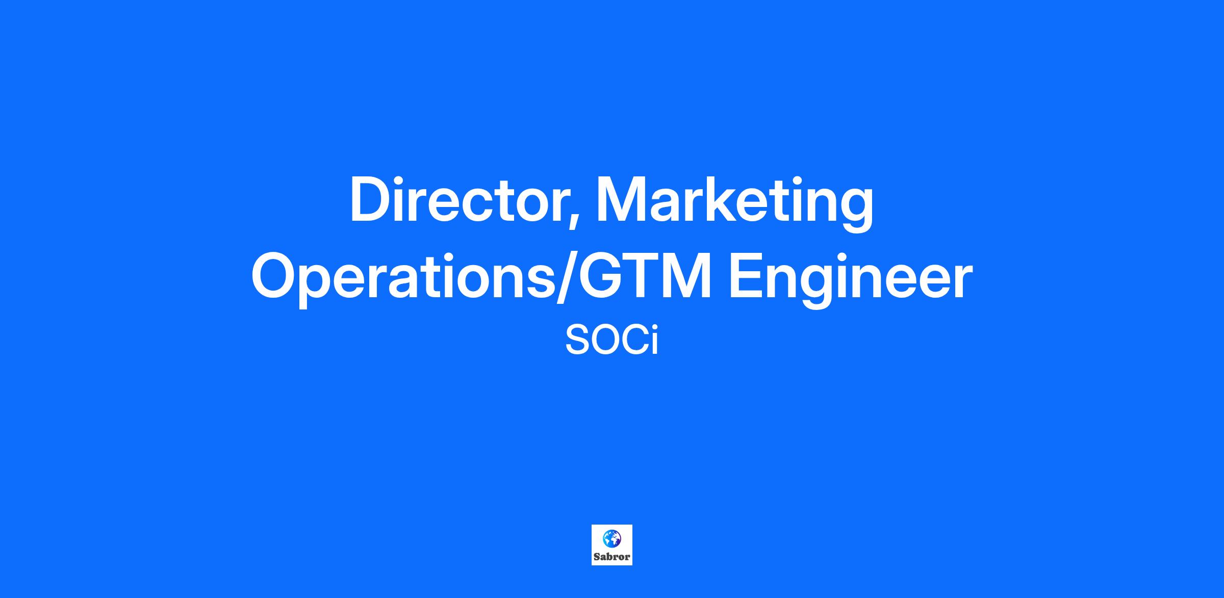 SOCi, the leader in AI-powered marketing solutions for multi-location businesses, is currently looking for an experienced Director of Marketing Operations/GTM Engineer to be a strategic technical partner to the Marketing, RevOps, Sales and Customer Success teams. This person will design, build and operate the systems, workflows and automation that power SOCi’s go-to-market motions (inbound, outbound, account-based, and multi-location enterprise brand programs). They will bridge the gap between “we want to do X” (marketing/program strategy) and “here’s how we build, automate, measure and scale it”. In addition this role will be responsible for ensuring seamless operations across marketing execution, lead capture and lead delivery to sales. This role will also manage our marketing technology stack and our insights driven management systems to help marketers improve demand and lead generation performance.