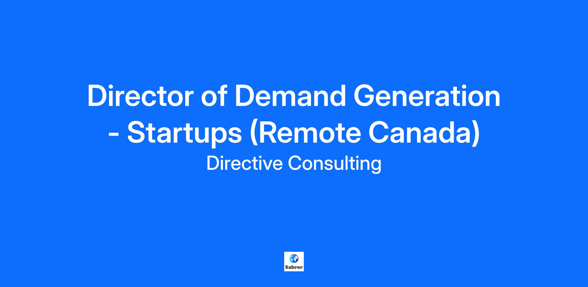 Director of Demand Generation - Startups (Remote Canada)