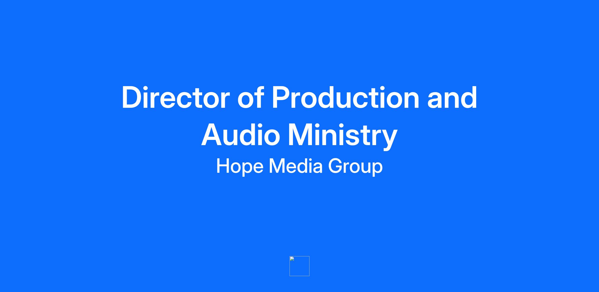 Description Join a company that truly impacts others! Hope Media Group is a multi-brand ministry. Every story we share, every event we host, and every song we play is done to engage people to love Jesus, serve others, and spread Hope. Hope Media Group the home of KSBJ, WayFM, Vida Unida, NGEN radio and Worship 24/7. We invite you to apply and become a part of our growing ministry to Love Jesus, Serve Others, and Spread Hope. Our team describes our environment as fun, encouraging, collaborative, engaging, caring, family oriented, and friendly. We would love for you to join us and be part of what God is doing in our ministry! Job Summary The Director of Production and Audio Ministry is a senior creative leader responsible for shaping Hope Media Group’s ministry, underwriting, and donor storytelling come to life through sound. This role ensures that ministry audio is communicated with excellence, integrity, and emotional clarity across all brands and platforms. Working in close partnership with the Director of Imaging and Brand Sound, Program Directors, and cross-functional teams, this role champions production excellence and ministry storytelling while sharing responsibility for the overall creative audio vision. Together, these two director roles are designed to elevate the sound and storytelling of Hope Media Group—establishing a new standard for creativity, innovation, and impact within faith-based media. Essential Functions Production Leadership & Audio Ministry Champion Engagement 365 audio storytelling, crafting ministry and donor messaging that connects generosity to real-life impact through authentic, compelling story Lead underwriting production and ministry audio needs across all brands, serving listeners, donors, and business partners with excellence Interface primarily with underwriting partners and internal stakeholders to ensure clarity, alignment, and strong execution Collaborate with Programming, Marketing, and Donor Relations to translate ministry initiatives into audio that connects emotionally and compels action Help establish year-round messaging that naturally weaves listener support and life change into daily content Shared Creative Leadership & Audio Excellence Share responsibility for the sonic identity of all Hope Media Group brands, contributing to imaging, promos, ministry features, and donor messaging Ensure underwriting and ministry audio meets FCC non-commercial underwriting guidelines while maintaining creative excellence Maintain high standards of sound design, copywriting, and production flow to ensure clarity, consistency, and connection Participate in decisions around production systems, scheduling, delivery flow, and creative standards Innovate audio across on-air, streaming, podcasting, video audio design, and social platforms Podcasting, Digital Audio & Programming Support Support the Programming department through audio editing, production, and creative consultation for podcasts, digital-first content, and on-demand audio Edit and enhance podcast content, ensuring strong sound quality, pacing, and listener engagement Collaborate with Programming and Digital teams to adapt on-air content for digital platforms, including podcasts, short-form audio, and emerging formats Help develop audio standards and best practices for digital content that reflect brand sound, ministry purpose, and audience expectations Provide creative and technical support for new programming initiatives beyond traditional broadcast Team Development & Operations Provide leadership, mentoring, and creative guidance to producers, creatives, and partners as the department evolves Collaborate on the use of contractors and external partners to scale output while maintaining quality and agility Contribute to systems that balance creative freedom with efficiency and clarity Cultivate a culture that values excellence, collaboration, innovation, and ministry impact Demonstrated Faith Maintain a personal relationship with Jesus Christ and live by the Ministry Statement of Faith Be spiritually grounded, biblically literate, and comfortable participating in prayer and ministry activities Participate in on-air fundraisers and pray for donors as needed Be an active member of a Bible-believing local church Requirements Education: Bachelors in audio engineering, broadcast engineering, media, or equivalent work experience is preferred. Experience: 5+ years leading a fast-moving production or creative audio team – preferably in radio, agency or multiplatform media. Knowledge, Skills and Abilities: Expert in digital audio workstations (Adobe Audition or Pro Tools preferred). Strong understanding of FCC rules for non-commercial underwriting. Strategic thinker who can assess team structure, identify gaps, and build for scale. Exceptional writing and storytelling ability; can translate emotion into sound. Collaborative leader comfortable navigating both creative and operational priorities. Heart for Christian ministry Strong moral character Has a personal relationship with Jesus Christ. Spiritually grounded and working knowledge of scripture Must be an active member of a Bible believing local church Supervisory Responsibilities None. Working Conditions and Environment Travel: 0%-10% Nights/Weekends/Holidays: 0%-10% Physical Requirements: The physical demands described here are representative of those that must be met by an employee to successfully perform the essential functions of this job. Reasonable accommodations may be made to enable individuals with disabilities to perform the essential functions. Physical Activity may include Talking. Expressing or exchanging ideas by means of the spoken word. Those activities in which they must convey detailed or important spoken instructions to other workers accurately, loudly, or quickly. Hearing. Perceiving the nature of sounds at normal speaking levels with or without correction. Ability to receive detailed information through oral communication, and to 