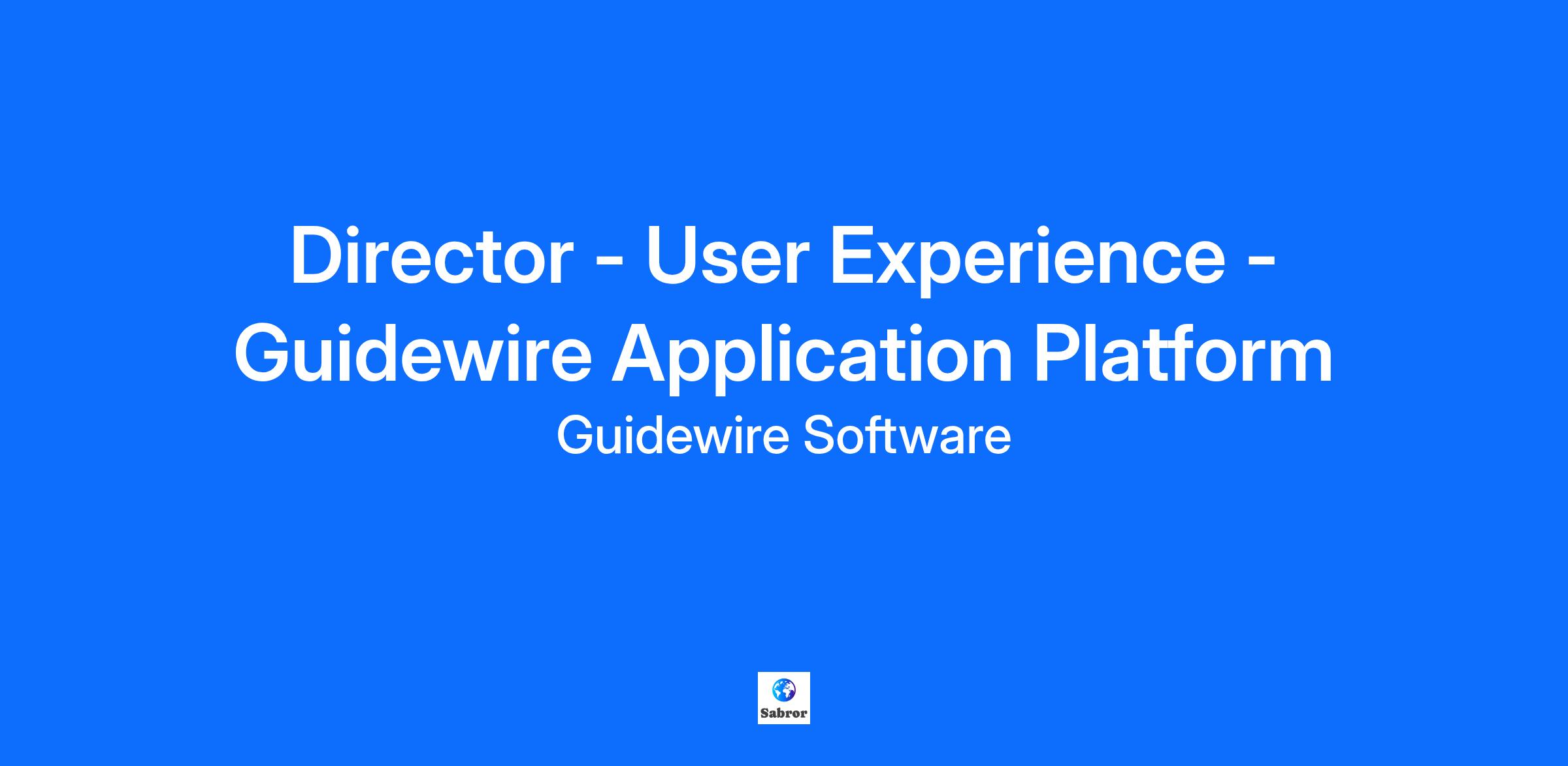 Director - User Experience - Guidewire Application Platform
