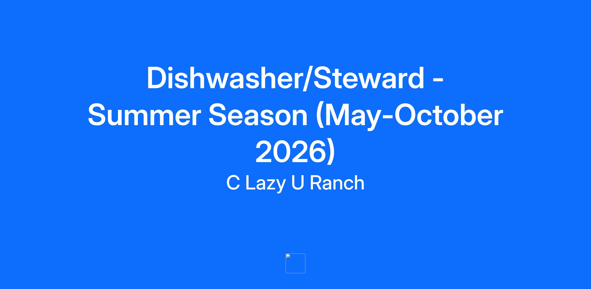 Description Work in the heart of the Rockies! Now hiring for Summer Season (May-October 2026) - MUST BE ABLE TO WORK UNTIL OCTOBER! Join a legacy 107 years in the making! C Lazy U Ranch, one of America’s top guest ranches, is hiring for the 2026 summer season in beautiful Granby, Colorado. We pride ourselves on delivering exceptional service that sets us apart. To maintain this standard, we seek enthusiastic, service-oriented professionals with strong communication skills who go above and beyond to create unforgettable guest experiences. We offer below-market housing and three complimentary meals daily. Spend your summer in the Rockies—apply today! Working Environment: Working Ranch & Guest Hospitality OBJECTIVE: The candidate will exhibit integrity, honesty and knowledge that promotes the culture and values of C Lazy U to ensure that all guests feel welcome and are given professional, gracious service at all times. Also perform all aspects of the position with efficiency, respect, friendliness, professionalism, teamwork, knowledge, patience, awareness, compassion, courtesy and initiative. DUTIES AND RESPONSIBILITIES: The role of dishwasher will be dependent on their skill set but will not be limited to: Follow directions from Executive Chef, CDC and Senior Sous, Stewarding Manager regarding daily duties and tasks. Understands the job at hand, including proper procedures of how to maintain and clean the machinery in use. Able to understand the chemicals being used as well as their purposes. Maintaining the cleanliness of the kitchen, periodic sweeping and mopping of floors, taking out trash and replacing bags as needed. Informing Chef/ Stewarding Manager of any equipment, tools or chemicals needed to perform job at hand. Be responsible for the care of plate ware, glassware, and flatware Must not place anything dirty back on a shelf with finished cleaned items. Maintains all HACCP standard operating procedures. Ensures a clean & sanitary workstation, as well as enforcing C Lazy U sanitation standards throughout the facility. Must be able to follow schedule given. Must follow daily cleaning assignments based on procedure set by management, including deep cleaning. Other duties as directed Understand completely all programs, procedures, standards, specifications, guidelines and training programs. Understand philosophy of management and owner. Displays consistent attention to detail and follow through of all restaurant policies. Collaborates with team to create a culture and restaurant work environment based upon respect; fosters opportunities for team to learn, grow and develop their abilities. Requirements QUALIFICATIONS, SKILLS & WORK EXPERIENCE: Understanding of how a fine dining restaurant works Must be well groomed, maintain good hygiene, good posture and have required uniform. Must display the image set forth by the owner and restaurant philosophy. Be able to work in a standing position for long periods of time Be able to reach, bend, stoop and frequently lift up to 50 pounds. This job description provides an overview of the scope of responsibilities for the Dishwasher/Steward position and is not intended to be an inclusive list of tasks and expectations. Employees are held accountable for all duties of this job. This job description does not constitute a written or implied contract of employment, and the company reserves the right to revise and change duties as the need arises.