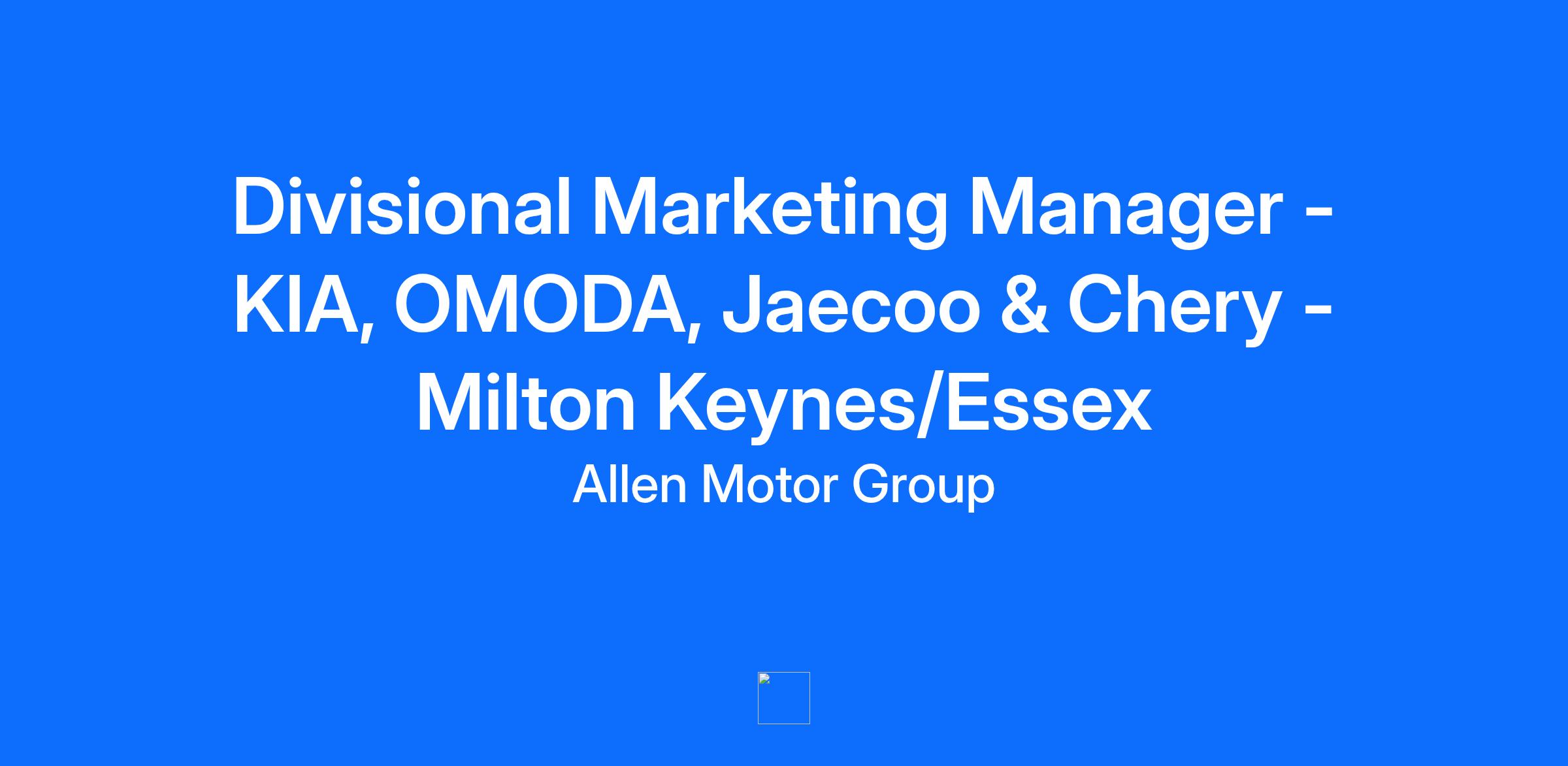 Allen Motor Group are currently looking to employ a Divisional Marketing Manager within our KIA, OMODA - Jaecoo & Chery division. The role can be based from one of our locations in either Milton Keynes or Essex and will report to the Divisional Director. This is a fantastic opportunity for a marketing manager who has experience within the automotive or similar franchised environment. In this role you will be representing Kia, an already established leader in innovation and reliability and OMODA , Jaecoo and Chery who are rapidly emerging as exciting new forces in the industry. This is a field-based position which will require regular travel to all sites within the division. Offered on a full-time Monday – Friday 40 hour working week, with a basic salary of £45,000 - £50,000 depending on experience, and a company provided vehicle. What are the key responsibilities? · Be the brand expert, understand the expectations, systems and processes · Proactively look for social media opportunities including creation of content within the brands · Work with the Divisional Director to plan and implement brand activity on a quarterly basis and to identify opportunities for ad hoc marketing. · Evaluate the ROI and business benefit of specific Marketing activity within the designated brands; Analyse, communicate and identify actions relating to customer feedback to drive the reputation score; Why Allen Motor Group? In addition to a highly attractive basic we also offer a range of other benefits including: · Fantastic discounts on MOT’s, services and parts · 30 days holiday including bank holidays, plus addition holiday entitlement with length of service · Up to £1,00 refer a friend scheme · Life assurance benefit, at no cost to yourself · Full training and support to develop your career within Allen Motor Group Previous Experience To be considered for this position it’s essential that you have strong previous experience as a marketing manager. The following skills and experience would also be advantageous: ü Automotive industry experience (OEM, dealer group, aftersales, fleet, mobility or automotive finance) ü Strong budget ownership and ROI accountability ü Data driven decision making ü Go to market campaign management At Allen Motor Group, we drive an inclusive workplace, respecting and encouraging applications from every background. Join our team, where every person matters. If you would like to be considered for this opportunity, please do apply now
