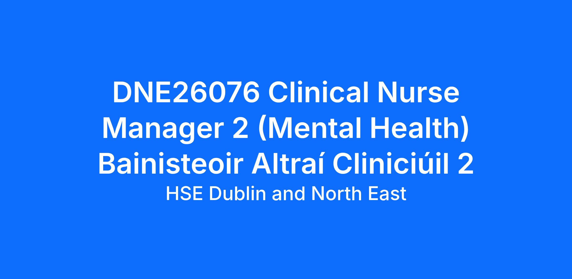The Clinical Nurse Manager 2 will be responsible for the management, care and treatment of service users, to ensure that the optimum standard of nursing care is provided in compliance with the Nursing Midwifery Board Ireland Regulations and Guidelines, Mental Health Commission Regulations and Health Service Executive national and local policies. The primary role of the CNM 2 will be one of clinical and professional leadership, supporting the nursing team, promoting the development of nursing staff by means of in-service training, orientation of new staff arranging for clinical experience and supervision of nurses as required. The CNM 2 will play a pivotal role as part of the multidisciplinary team.