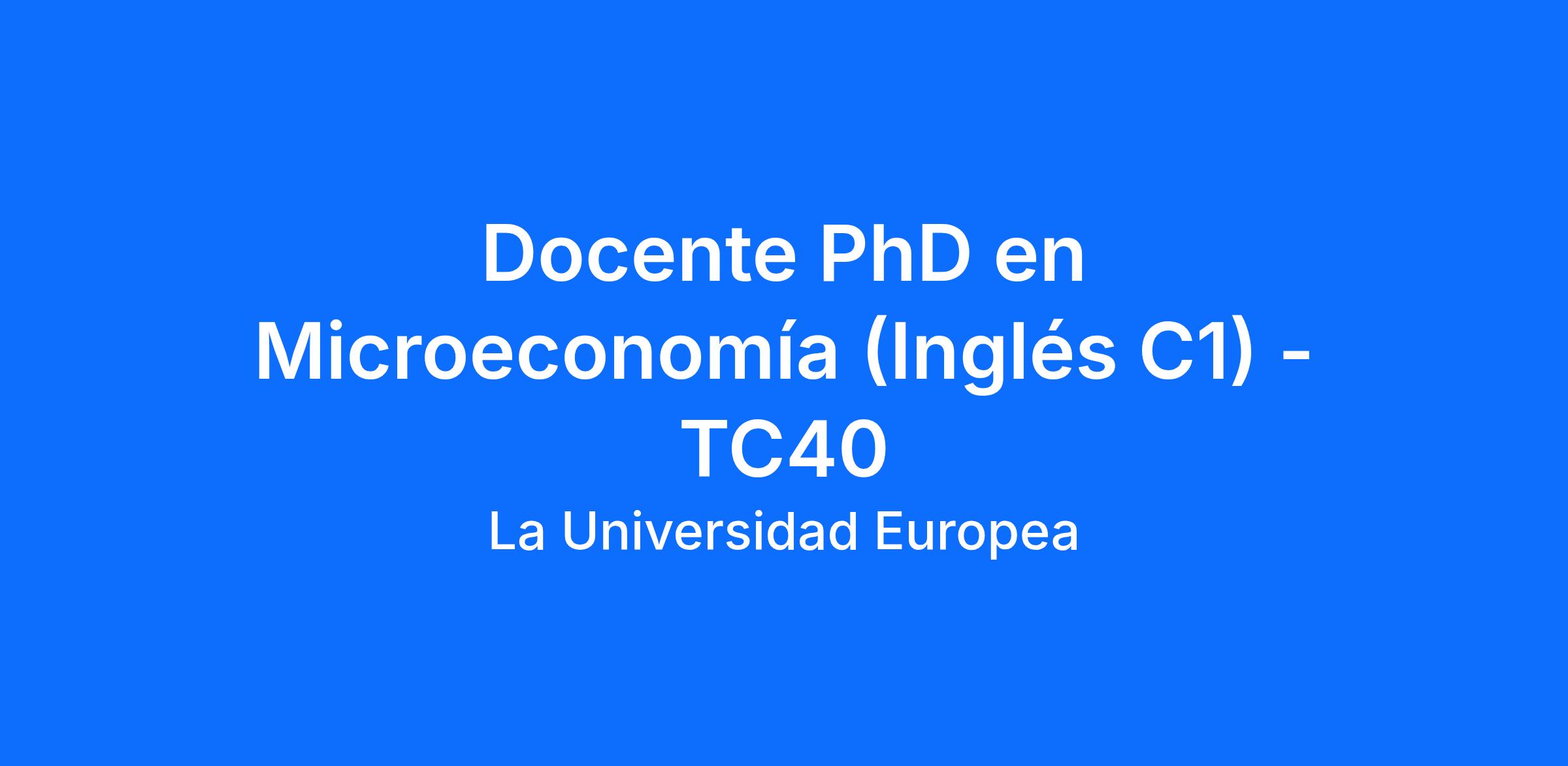 Desde la Universidad Europea de Madrid estamos en búsqueda de Profesores/as Universitarios con especialidad en Microeconomía para impartir clases en nuestro Grado de ADE bilingüe en modalidad presencial en el campus de Villaviciosa de Odón.