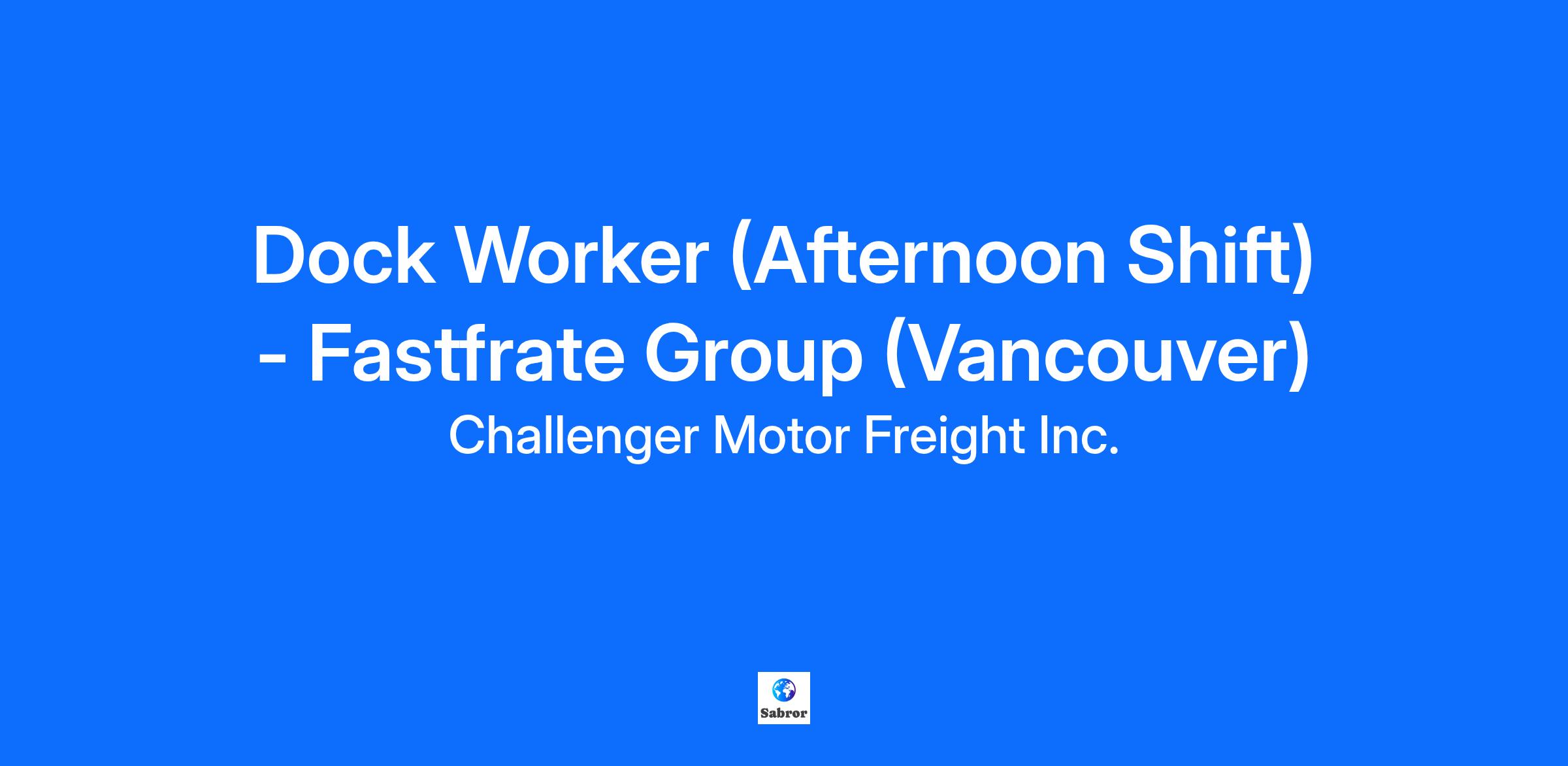 Dock Worker (Afternoon Shift) - Fastfrate Group (Vancouver)