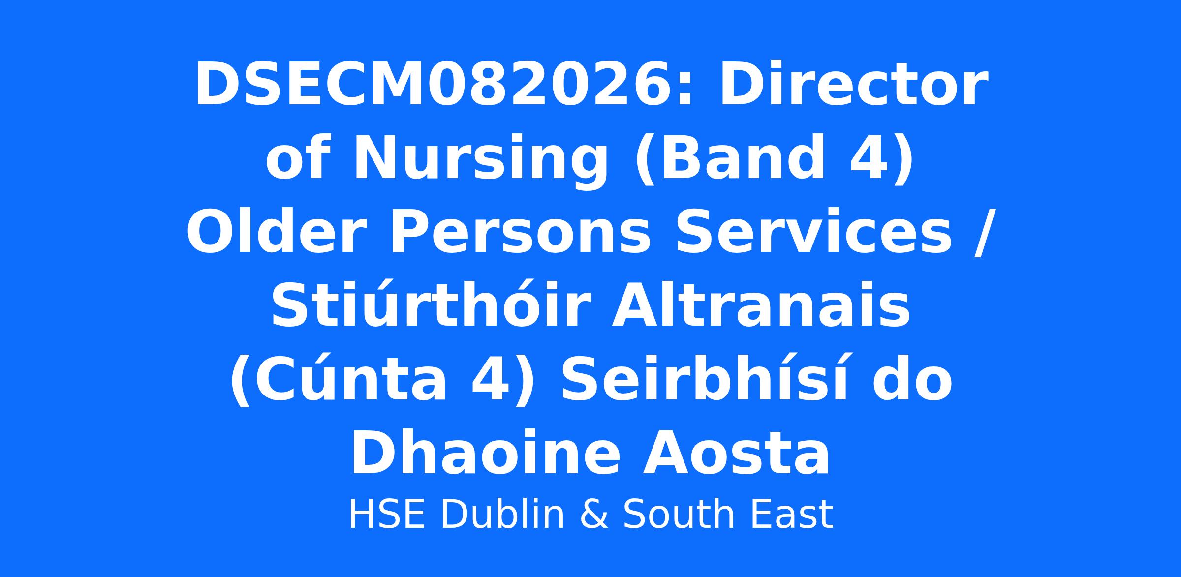 A panel may be created from this campaign Director of Nursing (Band 4) Older Persons Services, IHA Waterford Wexford from which future permanent and specified purpose vacancies of full or part-time duration may be filled.