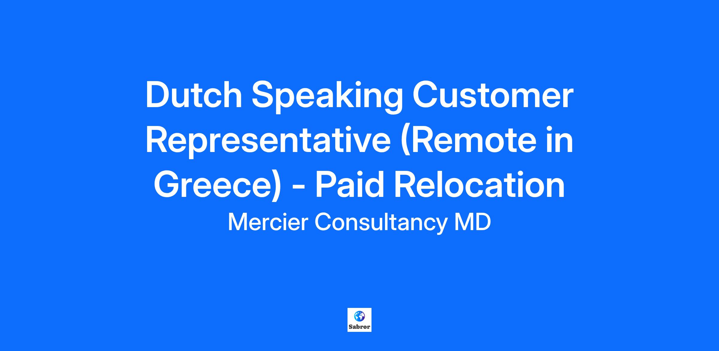 Join Our Team! Are you fluent in Dutch and seeking a rewarding opportunity that lets you work remotely from Greece? At Mercier Consultancy MD, we are on the lookout for a dynamic and enthusiastic Dutch Speaking Customer Representative. This position includes the remarkable benefit of paid relocation to Greece, where you can immerse yourself in a beautiful environment while advancing your career in customer service. Your Role: Deliver outstanding customer service to Dutch-speaking clients, handling inquiries with care and professionalism. Communicate effectively through various platforms including phone, email, and chat. Eagerly learn and navigate our client systems to provide top-notch support. Collaborate with team members to ensure customer issues are resolved promptly. Fluency in Dutch (both written and spoken) is essential for effective communication with clients. Strong communication skills coupled with a customer-oriented approach. Willingness to learn new technologies and tools for a remote work environment. Self-motivated, proactive, and adaptable to a fast-paced setting. Open to relocating to Greece for this unique opportunity! Competitive Monthly Salary Monthly Performance Bonus Fully Paid Relocation Package Fully Paid Training Health Insurance And Much More...