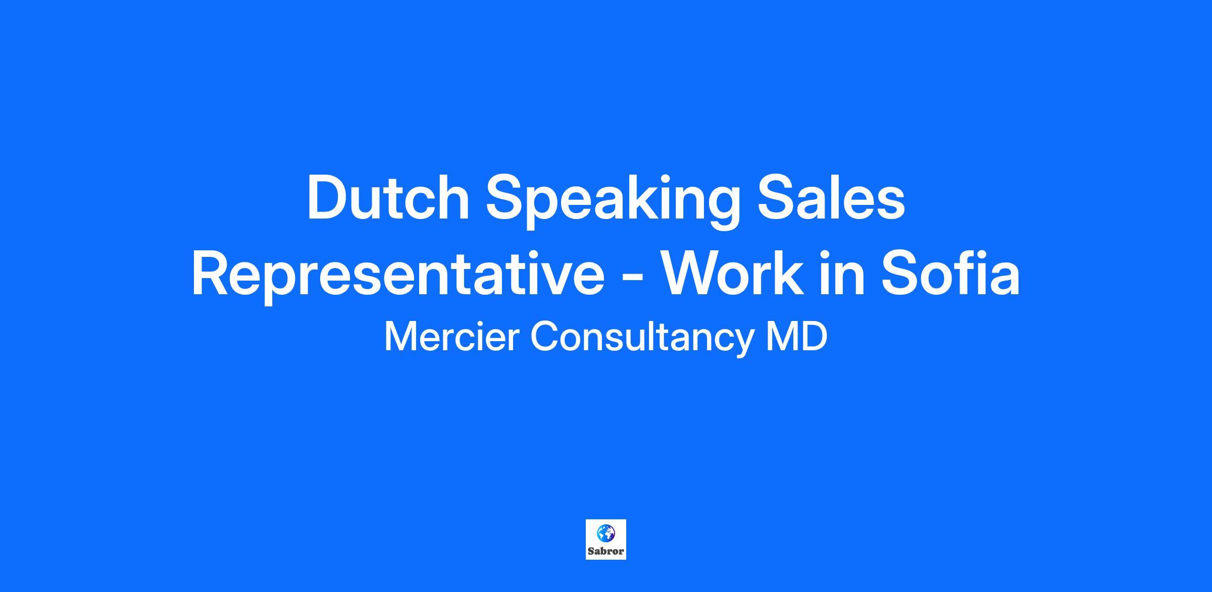 Mercier Consultancy MD is excited to offer a fantastic opportunity for a Dutch Speaking Sales Representative to work in the vibrant city of Sofia, Bulgaria. We are looking for energetic individuals who are fluent in Dutch and have a passion for sales. In this role, you will be instrumental in promoting and selling our client's exceptional products and services, while building valuable relationships with customers. Key Responsibilities Identify and connect with potential clients using various outreach methods, including phone calls and emails. Effectively communicate the features and benefits of our client’s offerings to facilitate informed purchasing decisions. Achieve or surpass individual sales targets and contribute to the overall success of the sales team. Stay informed about market trends and competitor activities, adjusting sales strategies accordingly. Work closely with marketing and support teams to ensure exceptional customer service and satisfaction. Engage in continuous training to enhance product knowledge and sales skills. Fluency in Dutch (both written and spoken) is required; proficiency in English is a plus. Experience in sales or a customer service role is preferred. Strong communication and interpersonal skills to effectively engage with clients. A self-motivated individual with the ability to work both independently and collaboratively. Results-oriented with a determination to achieve sales goals. Comfortable working in a multicultural environment and adapting to new challenges. Enthusiastic about personal and professional growth in a sales career. Competitive Monthly Salary Relocation Package Fully Paid Training Health Insurance And Much More...