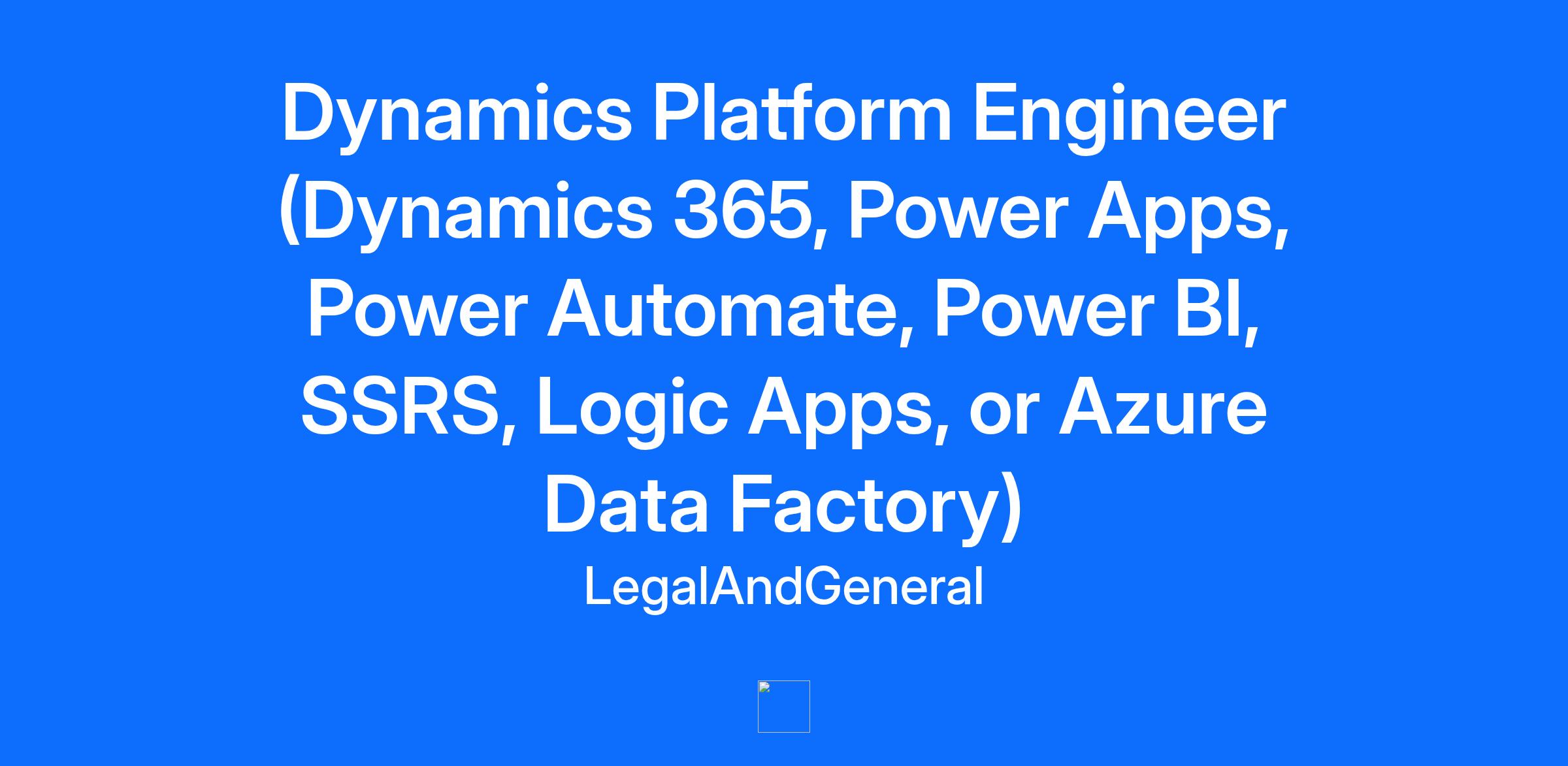 Company Description Legal & General (L&G) is a leading UK financial services group and major global investor. We’ve been safeguarding people’s financial futures since 1836, and strive to build a better society, while improving the lives of our customers and creating value for shareholders. We are one of the world’s largest asset managers and provide powerful asset origination capabilities. Together, these underpin our retirement and protection solutions: we are an international player in pension risk transfer, in UK and US life insurance, and in UK workplace pensions and retirement income. Who we are Our Retail business supports customers throughout their lives, to help them save, plan, protect and enjoy retirement. We’re a leading provider of retirement and protection solutions. We aim to support our c.12.8 million policyholders and workplace members throughout their lifelong financial journeys. We focus on helping the customers of today and tomorrow achieve better long-term outcomes. We either talk with them directly or work with intermediaries and employers to meet their needs. We use the latest technology to connect with them quickly, efficiently and wherever possible in highly personalised ways. Job Description We're looking for a talented Dynamics Platform Engineer to join our growing engineering team. In this role, you'll apply your software engineering expertise to develop new features, resolve bugs, tackle technical debt, and continuously enhance our ways of working. Your contributions will help deliver high-quality, impactful software solutions that bring real value to our customers. What you'll be doing: Building clean, maintainable features and resolving end-to-end issues with a thoughtful, solutions-oriented approach to drive effective customer outcomes Managing technical debt proactively to ensure our systems remain secure, resilient, and reliable Improving testing strategies to uphold exceptional customer experiences, with a strong focus on security, usability, and accessibility Participating in code reviews that consider both functional and non-functional requirements—performance, maintainability, resiliency, and security Enhancing team practices across security, quality, deployment, monitoring, and operations to support seamless and safe production releases Contributing actively to team discussions and knowledge sharing to foster collaboration and ensure smooth sprint delivery Developing your skills through ongoing training and continuous learning aligned with your role and discipline Upholding Legal & General’s principles on Customer Experience and Treating Customers Fairly in all aspects of our work Qualifications Who we're looking for: Hands-on experience with at least two of the following: Dynamics 365 (Customer Service or Sales), Power Apps, Power Automate, Power BI, SSRS, Logic Apps, or Azure Data Factory Strong grasp of software testing, CI/CD pipelines, and modern release strategies Solid understanding of agile methodologies like Scrum and Kanban Proven ability to write clean, efficient, and maintainable code Skilled in debugging and solving complex technical challenges Collaborative mindset and effective teamworking skills Whatever your role, we reward performance and behaviour with a package that looks after all the things that are important to you. Here are some of the benefits we offer: The opportunity to participate in our annual, performance -related bonus plan and valuable share schemes Generous pension contribution Life assurance Healthcare Plan (permanent employees only) At least 25 days holiday, plus public holidays, 26 days after 2 years’ service. There’s also the option to buy and sell holiday Competitive family leave Participate in our electric car scheme, which offers employees the option to hire a brand-new electric car through tax efficient salary sacrifice (permanent employees only) There are the many discounts we offer – both for our own products and at a range of high street stores and online In 2023, some of our workspaces were redesigned. Our offices are great spaces to connect and collaborate and have your wellbeing at the heart Additional Information At L&G, we believe it's possible to generate positive returns today while helping to build a better future for all. If you join us, you’ll be part of a welcoming, inclusive culture, with opportunities to collaborate with people of diverse backgrounds, views, and experiences. Guided by leaders with integrity who care about your future and wellbeing. Empowered through initiatives which support people to develop their careers and excel. We care passionately about outcomes rather than attendance and are therefore open to discussing all kinds of flexible working options including part-time, term-time and job shares. Although some roles have limited flexibility due to customer demand, we accommodate requests when we can. It doesn’t matter if you don’t meet every single criterion in this advert. Instead, think about what you excel at and what else you can bring in terms of strengths, potential and connection to our purpose.