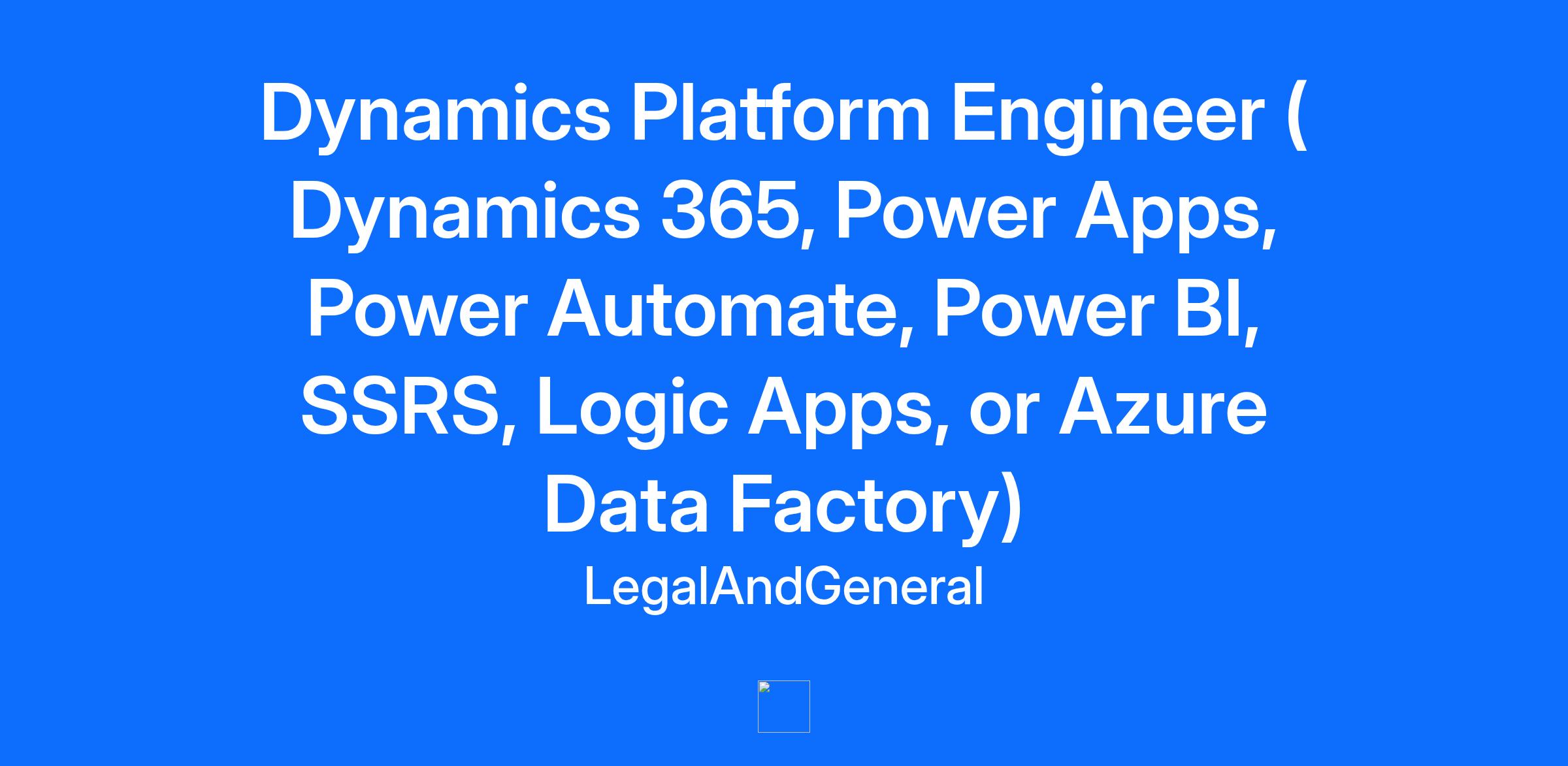 Company Description Legal & General (L&G) is a leading UK financial services group and major global investor. We’ve been safeguarding people’s financial futures since 1836, and strive to build a better society, while improving the lives of our customers and creating value for shareholders. We are one of the world’s largest asset managers and provide powerful asset origination capabilities. Together, these underpin our retirement and protection solutions: we are an international player in pension risk transfer, in UK and US life insurance, and in UK workplace pensions and retirement income. Who we are Our Retail business supports customers throughout their lives, to help them save, plan, protect and enjoy retirement. We’re a leading provider of retirement and protection solutions. We aim to support our c.12.8 million policyholders and workplace members throughout their lifelong financial journeys. We focus on helping the customers of today and tomorrow achieve better long-term outcomes. We either talk with them directly or work with intermediaries and employers to meet their needs. We use the latest technology to connect with them quickly, efficiently and wherever possible in highly personalised ways. Job Description We're looking for a talented Dynamics Platform Engineer to join our growing engineering team. In this role, you'll apply your software engineering expertise to develop new features, resolve bugs, tackle technical debt, and continuously enhance our ways of working. Your contributions will help deliver high-quality, impactful software solutions that bring real value to our customers. What you'll be doing: Building clean, maintainable features and resolving end-to-end issues with a thoughtful, solutions-oriented approach to drive effective customer outcomes Managing technical debt proactively to ensure our systems remain secure, resilient, and reliable Improving testing strategies to uphold exceptional customer experiences, with a strong focus on security, usability, and accessibility Participating in code reviews that consider both functional and non-functional requirements—performance, maintainability, resiliency, and security Enhancing team practices across security, quality, deployment, monitoring, and operations to support seamless and safe production releases Contributing actively to team discussions and knowledge sharing to foster collaboration and ensure smooth sprint delivery Developing your skills through ongoing training and continuous learning aligned with your role and discipline Upholding Legal & General’s principles on Customer Experience and Treating Customers Fairly in all aspects of our work Qualifications Who we're looking for: Hands-on experience with at least two of the following: Dynamics 365 (Customer Service or Sales), Power Apps, Power Automate, Power BI, SSRS, Logic Apps, or Azure Data Factory Strong grasp of software testing, CI/CD pipelines, and modern release strategies Solid understanding of agile methodologies like Scrum and Kanban Proven ability to write clean, efficient, and maintainable code Skilled in debugging and solving complex technical challenges Collaborative mindset and effective teamworking skills Whatever your role, we reward performance and behaviour with a package that looks after all the things that are important to you. Here are some of the benefits we offer: The opportunity to participate in our annual, performance -related bonus plan and valuable share schemes Generous pension contribution Life assurance Healthcare Plan (permanent employees only) At least 25 days holiday, plus public holidays, 26 days after 2 years’ service. There’s also the option to buy and sell holiday Competitive family leave Participate in our electric car scheme, which offers employees the option to hire a brand-new electric car through tax efficient salary sacrifice (permanent employees only) There are the many discounts we offer – both for our own products and at a range of high street stores and online In 2023, some of our workspaces were redesigned. Our offices are great spaces to connect and collaborate and have your wellbeing at the heart Additional Information At L&G, we believe it's possible to generate positive returns today while helping to build a better future for all. If you join us, you’ll be part of a welcoming, inclusive culture, with opportunities to collaborate with people of diverse backgrounds, views, and experiences. Guided by leaders with integrity who care about your future and wellbeing. Empowered through initiatives which support people to develop their careers and excel. We care passionately about outcomes rather than attendance and are therefore open to discussing all kinds of flexible working options including part-time, term-time and job shares. Although some roles have limited flexibility due to customer demand, we accommodate requests when we can. It doesn’t matter if you don’t meet every single criterion in this advert. Instead, think about what you excel at and what else you can bring in terms of strengths, potential and connection to our purpose.