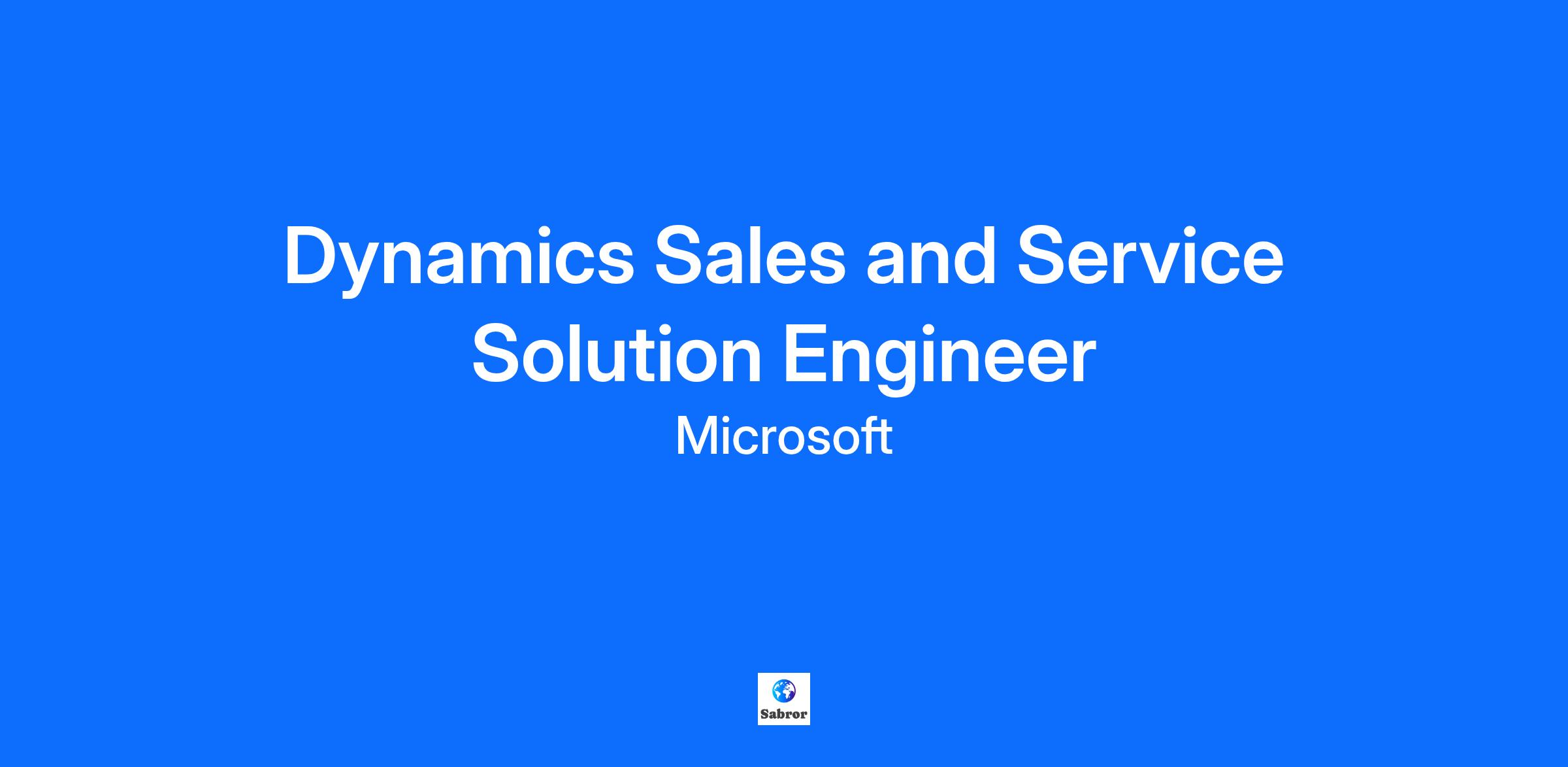 Dynamics Sales and Service Solution Engineer