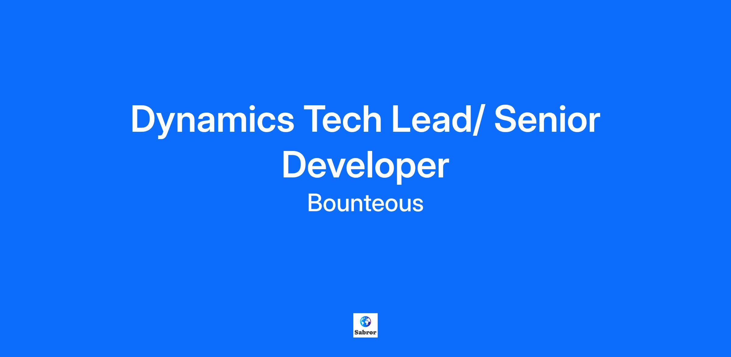 Dynamics Tech Lead/ Senior Developer