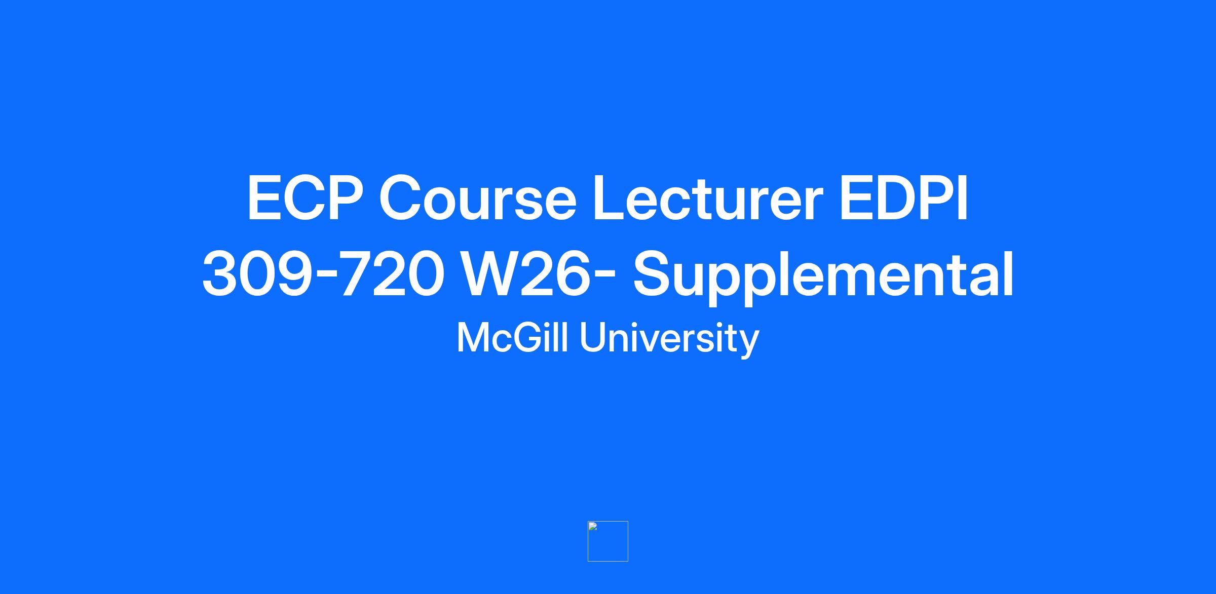 Please refer to the How to Apply for a Job (for External Candidates) job aid for instructions on how to apply. If you are an active McGill employee (ie: currently in an active contract or position at McGill University), do not apply through this Career Site. Login to your McGill Workday account and apply to this posting using the Find Jobs report (type Find Jobs in the search bar). This posting is for one unionized contractual course-by-course appointment to teach one course as a Course Lecturer. Course lecturer positions are governed by the Collective Agreement between McGill University and McGill Course Lecturers and Instructors Union (MCLIU)-CSN. Hiring Unit: Department of Educational and Counselling Psychology Course Number-Section and Title (CRN): EDPI 309-720 Diverse Learners (CRN: 2446) - ONLINE SECTION for MEES students only Course Description Theory and practice in inclusive teacher leadership and support for all members of the school community. Leading and supporting interpersonal communication, group dynamics, self-care and resilience, and classroom management in diverse educational and community settings. Posting Dates (Supplemental): December 19-23 (00:00 am) Application Deadline: December 23 2025 (11:59pm) CL Credits: 3 (This course is not team-taught) Number of Positions Available: 1 Term / Schedule: Winter 2026 / ONLINE COURSE; 05-JAN-2026 to 14-APR-2026 Location / Endroit: ONLINE (subject to change) Exigences de Qualification Pour L'Enseignement/Teaching Qualification Requirements (TQRs): Éducation /Education Master’s or PhD in Educational Psychology, Human Development, Applied Psychology, Child Development, Clinical Psychology, or equivalent Expérience / Experience Demonstrated experience delivering online courses Knowledge of educational and psychological theories Knowledge of the application of educational and psychological theories to authentic settings Experience in college/university teaching in this subject or professional experience in teaching K-12 Knowledge of Ministère de l’Éducation et de l’Enseignement supérieur (MELS) requirements Knowledge of the concepts of Inclusive Education Training and experience working in schools with students with diverse needs Autre / Other Adherence to evolving program requirements concerning course content and program-developed competencies; course content and references must reflect the most current advances in the field Additional Information: Effective dates of appointment are December 29, 2025 to May 1, 2026. Course dates are January 5, 2026 to April 14, 2026. Please contact ecp@mcgill.ca with any questions you may have. You are covered by the working conditions specified in the McGill Course Lecturers and Instructors Union collective agreement; https://www.mcgill.ca/hr/files/hr/mcliu_collective_agreement_-_final_version_for_printing_0.pdf. Before applying, please note that to work at McGill University, you must be both authorized to work in Canada and willing to work in the province of Quebec at the campus where the position is based / located. McGill University is an English-language university where most teaching and research activities are conducted in the English Language, thereby requiring English communication both verbally and in writing. Hiring Unit: Department of Educational and Counselling Psychology Course Title: Diverse Learners. Subject Code: EDPI 309 720 Location: Online Schedule: TBD Deadline to Apply: 2025-12-23 McGill University hires on the basis of merit and is strongly committed to equity and diversity within its community. We welcome applications from racialized persons/visible minorities, women, Indigenous persons, persons with disabilities, ethnic minorities, and persons of minority sexual orientations and gender identities, as well as from all qualified candidates with the skills and knowledge to productively engage with diverse communities. McGill implements an employment equity program and encourages members of designated groups to self-identify. Persons with disabilities who anticipate needing accommodations for any part of the application process may contact, in confidence, accessibilityrequest.hr@mcgill.ca. Located in one of the world’s great multicultural and multilingual cities, McGill University is internationally recognized for its excellence as a leading institution of higher education and research. For nearly 200 years, through the work of dedicated people, McGill has been breaking ground in diverse fields and contributing solutions to some of the world’s most significant issues. McGillians are proud to be part of a community that is both global and local, inspired by challenge and committed to shaping a better future. McGill received a Platinum STARS rating in sustainability, is among Canada’s greenest employers, and is a top Montreal Employer. Grandescunt Aucta Labore. By work, all things increase and grow. Find a sense of purpose. Develop your future. Join us today.