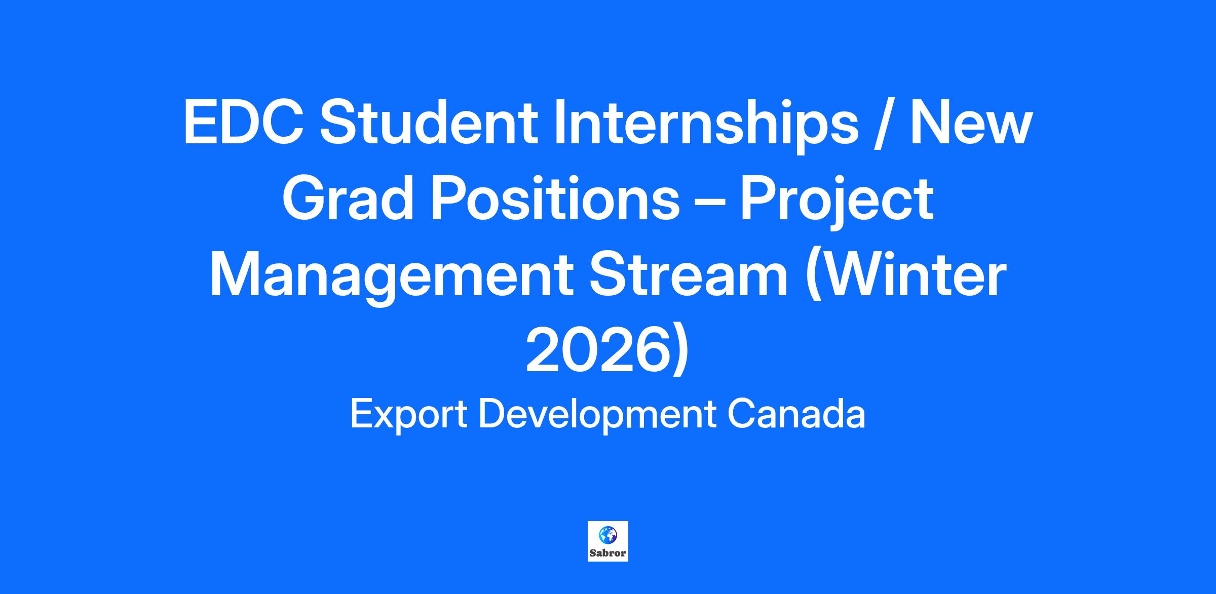 EDC Student Internships / New Grad Positions - Project Management Stream This Candidate Pool is specifically for roles on various teams looking for students and new grads with Project Management skills and career interests. If you are looking for another general area of interest, please see our other campus roles on our website! About EDC: At Export Development Canada (EDC), we empower Canadian businesses to succeed globally. As a Financial Crown corporation, we offer innovative financial solutions and expert insights to help businesses explore new markets, mitigate risks, and achieve growth. Why Join EDC? Collaborate with a diverse, experienced team Thrive in a supportive, teamwork-driven environment. Impact global communities through sustainable growth in emerging markets. Recognized as one of Canada’s Top 100 Employers, Best Diversity Employers, and a Top 100 Family-Friendly Employers. Enjoy a comprehensive Total Rewards package, including benefits, vacation, wellness programs, and professional development opportunities. Student and New Grad Opportunities Our student and new grad opportunities include internships and co-op programs, all designed to give your career a strong start. Fall work terms begin at four months in length and may be extended into the new calendar year for an additional four months or more, depending on business needs. While most roles are full-time, there is flexibility for part-ti1qme work. Our program is ideal for early career professionals who are new grads that have completed their courses within the past year, as well as students in their current program of study. Work terms in our program can be counted towards an accredited co-op program with your university or college. We are actively recruiting early career professionals for the 2026 Winter Semester in various teams looking for Project Management students or new grads. Team assignments will vary, and detailed descriptions will be provided if selected for an interview. Apply to this pool if you are a student or new grad who is: Interested in learning skills related to Project Management careers Taking courses in Project Management or related (Business, business technology, management, commerce etc.) Has strong organizational skills and an interest in coordination work Has an understanding of Power BI or other similar tools Someone who enjoys leading and facilitating presentations and meetings Our Ideal Student or New Grad: Currently enrolled or recently graduated from an undergraduate or graduate program (eligible for up to one year after completion of studies). Available for 8 months or more - While roles will be available for 4-month terms, preference will be given to candidates with availability that extends into 2026. Previous work term experience related to their field of study Strong verbal and written communication skills Motivated self-starter, good organizational and analytical skills Ability to work independently and within a team Enthusiasm to tackle any task, whether menial or complex Knowledge of both official languages is an asset and may be required for certain positions What can you expect from an EDC work term? The opportunity to build cross-functional professional networks, identify and pursue opportunities for improvement and innovation, and continuously learn and grow through coaching and mentoring from professionals throughout EDC. Work in a high-performing, fast-paced and flexible environment facilitated by technologies and report to any of our EDC Hubs across Canada. What to expect from us? You will be notified when we have received your application. If your profile matches a team's needs, we will reach out to schedule an interview with the team, you will receive a description of the team you are selected for in preparation for your interview. We will be contacting candidates on a rolling basis from October to December for interviews, dependent on business needs. #LI-Hybrid Eligibility: Applicants must be Canadian citizens, permanent residents, or hold a valid work visa at the time of application. Applicants must meet government security screening requirements. Applicants must be currently enrolled in post-secondary studies or have completed their studies within the past year. Compensation Details: Student, New Grad & Master’s salaries range from $42,900 to $56,550 annually, based on year of study. Please see the salary breakdown by year of study below: 1st Year: $42,900 ($22.00/hour) 2nd Year: $44,850 ($23.00/hour) 3rd Year: $46,800 ($24.00/hour) 4th Year and Beyond: $48,750 ($25.00/hour) New Graduate (Undergraduate): $54,600 ($28.00/hour) Master’s/PhD: $56,550 ($29.00/hour) Location: Export Development Canada operates in a hybrid work environment, currently requiring employees to work in the office 2 days per week (subject to change). This role can be performed from EDC’s headquarters in Ottawa or from one of our Community Hubs located in Toronto, Mississauga, Montreal, Brossard, Laval, Calgary, Edmonton, Halifax, or Vancouver. EDC's Commitment to Employment Equity: Export Development Canada (EDC) is dedicated to fostering employment equity and building a diverse workforce. We actively encourage applications from women, Indigenous peoples, visible minorities, persons with disabilities, and members of the 2SLGBTQI+ community. Should you require any accommodation during the recruitment and selection process, please let our Recruitment team know. Candidates must apply directly online to be considered for this role. We thank all applicants for their interest in a career at EDC; however, only those candidates who are selected for an interview will be contacted. Please note that we will be contacting candidates on a rolling basis from October to December 2025 for interviews depending on business needs. Should you require any accommodation during the recruitment and selection process, please contact the Recruitment team at accessibility@edc.ca