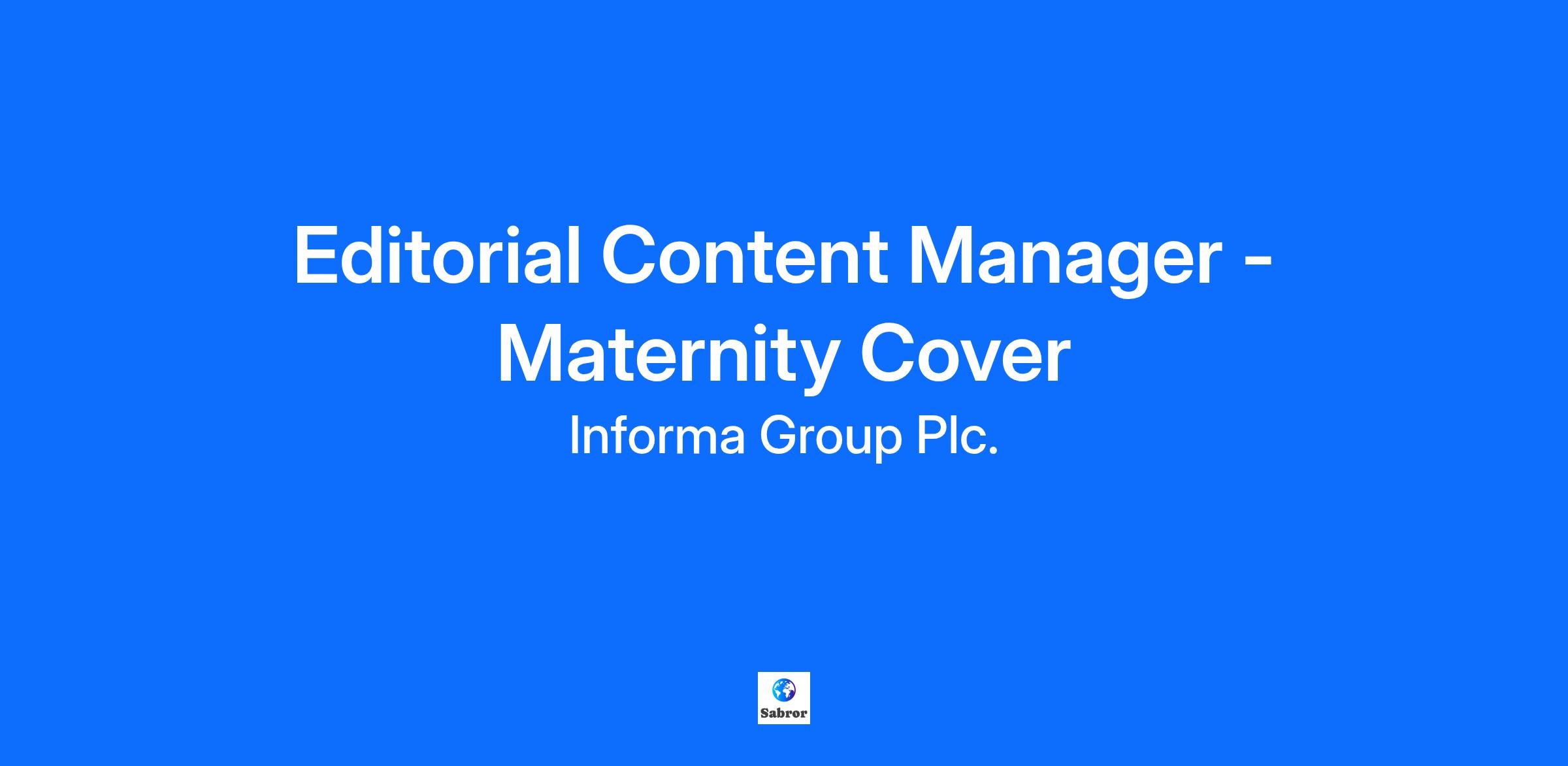 Company DescriptionInforma is a leading academic publishing, business intelligence, knowledge and events business, creating unique content and connectivity for customers all over the world. It is listed on the London Stock Exchange and is a member of the FTSE 100.Taylor & Francis Group operates globally and produces high quality, peer reviewed books and journals. We produce unique, trusted content by expert authors, spreading knowledge and promoting discovery globally. We aim to broaden thinking and advance understanding, providing academics and professionals with a platform to share ideas and realize their individual potential.Our purpose is to foster human progress through knowledge. We strongly believe that this requires us to encourage and examine different ideas and voices, so that any work that meets our exacting levels of quality deserves to be included in our publications. This requires open minds, the opportunity for robust debate, and the courage to defend perspectives that stand up to scrutiny, even if they conflict with our personal beliefs or values. Because that’s the only way to find the best obtainable version of the truth and, ultimately, foster human progress. If you agree, then we’d love to hear from you.Job DescriptionTaylor & Francis Editorial Operations (Programmes & Delivery - Academic Content) is currently recruiting for an Editorial Content Manager (maternity cover). It is anticipated that the role will last approximately 12-14 months.The successful candidate will manage a team of Content Specialists: supporting the governance of out-sourced editorial office function for F1000 and T&F open access journals, including design, development, and delivery of ambitious process improvements across all submission to dissemination tasks, aiming to transform services to customers (authors, Editors, Reviewers) that encounter our submission to dissemination process at Taylor and Francis.This team sustains oversight of all submissions for editorial quality and ethical compliance, managing specialised and complex queries.This role also contributes to the development and implementation of Editorial & Ethical policies, serving as a subject matter expert for policy interpretation across our journal portfolio, and supports critical manuscript decision-making processes (reject/revision/accept), particularly for ethically complex submissions, open data policy compliance, or those requiring specialized assessment.Closing date: 5th December 2025.What You’ll DoManage, motivate, and develop Specialists; this role is Responsible for the recruitment, performance management and training of the Specialists reporting into them.Sustain an interconnected relationship with supplier management, vendor Partners and other Academic Content teams and services by providing clear, effective and prompt feedback.Drive and champion change within the teams and allocate resources appropriately; ensuring effective team working and prioritisation to accommodate competing demands.Develop and deliver the peer review strategy regarding speed, compliance and customer service quality, in-line with KPIs targets.Deliver outstanding service to our stakeholders; explore both internal and external best practice to identify new and innovative approaches.Act as point of escalation for the Editorial operations team. Blockers and risks are escalated appropriately to the Director of Editorial Operations only after tenacity and creativity have been applied.Participate in the evaluation of new functionality, industry initiatives, and emerging submission and peer review best practice.QualificationsThe ideal candidate will have:In depth knowledge of best practice administration and management of academic content submitted to online submission platforms (preferably in Journals, Academic Publishing) An ability to use Power BI and be proficient with Microsoft Office packages. Having Advanced Excel skills is an advantage.Having excellent Communication Skills with an ability to tailor your style whilst presenting data and ideas. It will be essential to communicate well with stakeholders and translate the data into meaningful insight.Significant project management experience, including monitoring performance and building effective teams within an open access journals publishing environment.A Clear understanding of process improvement principles would be a distinct advantage, as delivery of increased capacity with minimal impact on head count is a standing objective An ability to run, create and analyse reports with complex data sets.Demonstrable analytic skills of complex data sets to model and visualise data.An understanding of process improvement principles would be a distinct advantage, as delivery of increased capacity with minimal impact on head count is a standing objective.Skills and Behaviours RequiredStrong communication and influencing skills, both verbal and written.Team player and self-starter with a positive outlook who easily builds positive relationships.An ability to handle and communicate information sensitively and professionallyActively cultivate an up-to-date knowledge of industry standards and developments to inform best practice procedures. Commercial awareness is a distinct advantage.Be self-reliant and motivated to look beyond the immediate task, see the bigger picture and identify opportunities to grow and do things better, providing added value to stakeholders and peers alike.Calm and logical response under pressureBeing responsible for managing own workloadAbility to prioritise appropriately and work to deadlinesAttention to detailCustomer focusAccountability for managing own learning, taking responsibility to identify and develop skills gaps and active knowledge sharing, regarding peer review systems and data manipulation.Additional InformationLocation: We believe that great things happen when people connect face-to-face. That's why we work in-person with each other, or with customers and partners, t