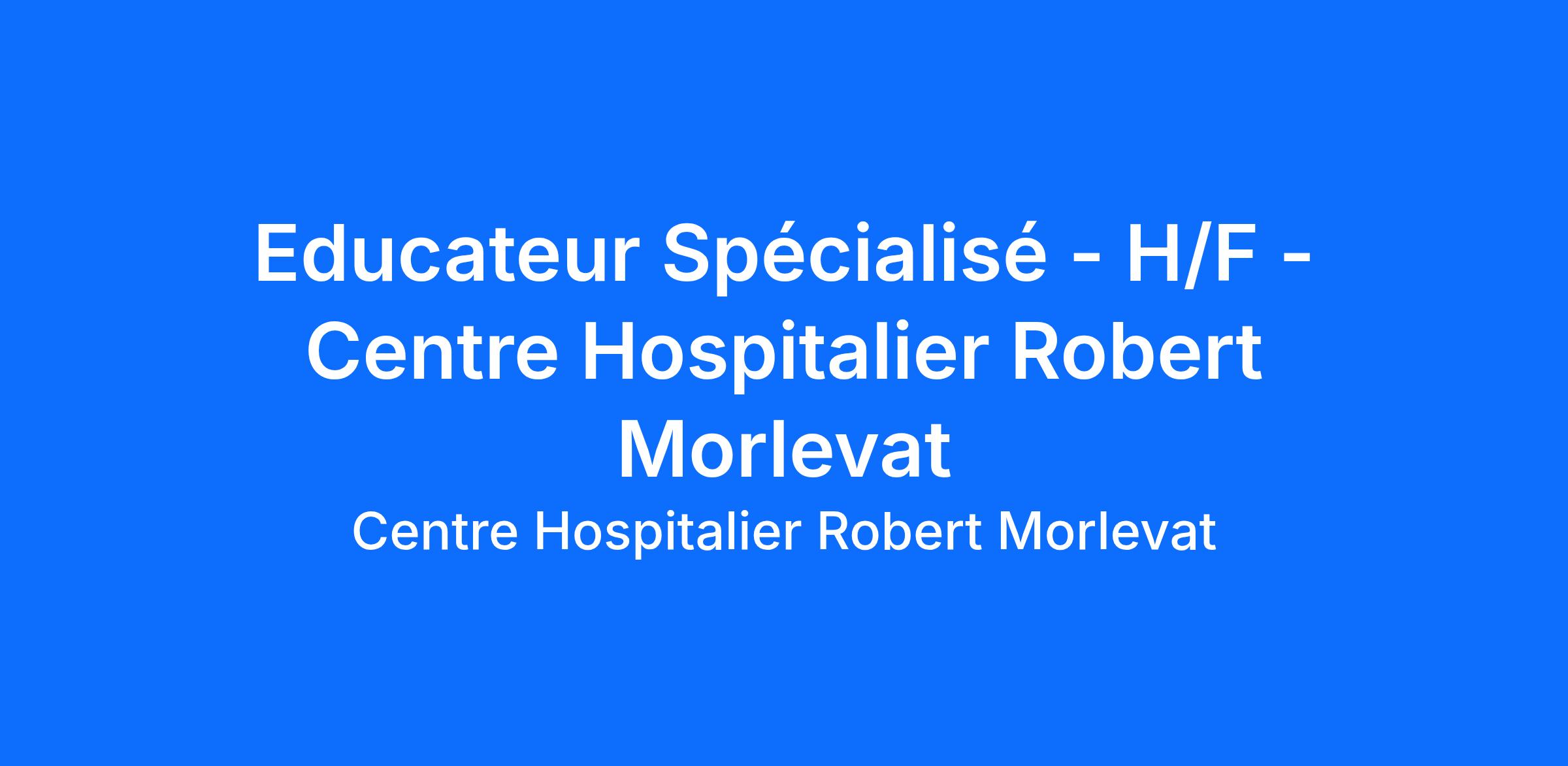 Educateur Spécialisé - H/F - Centre Hospitalier Robert Morlevat