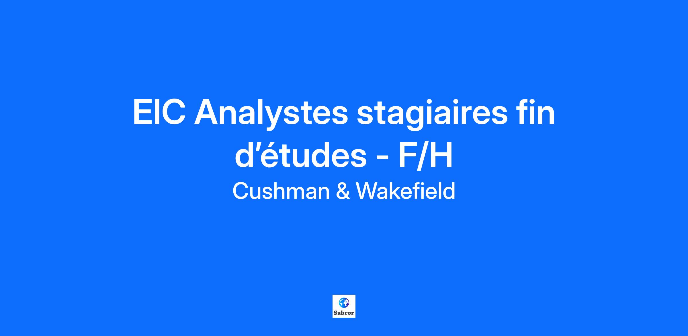 Job Title EIC Analystes stagiaires fin d’études - F/H Job Description Summary Job Description Acteur mondial des services dédiés à l’immobilier d’entreprise, Cushman & Wakefield (NYSE: CWK) conseille investisseurs, propriétaires et entreprises utilisatrices dans toute leur chaîne de valeur immobilière, de la réflexion stratégique jusqu’à l’aménagement des locaux. Le groupe accompagne ses clients utilisateurs et investisseurs internationaux, dans la valorisation de leurs actifs immobiliers en combinant perspective mondiale et expertise locale à forte valeur ajoutée, à une plateforme complète de solutions immobilières. Fort de 52 000 collaborateurs, 400 implantations et 60 pays dans le monde, Cushman & Wakefield a réalisé un chiffre d’affaires de 9,5 milliards de dollars en 2023, par ses principales lignes de métiers : Agence et conseil à la transaction, Capital Markets, Valuation & Advisory, Asset Services, Facilities Management, Project management et Design+Build… Pour en savoir plus, rendez-vous sur www.cushmanwakefield.com. Le département Valuation & Advisory de Cushman & Wakefield recherche plusieurs : Analystes stagiaires fin d’études / TFE / Césure F/H – 6 mois Neuilly-sur-Seine (92) Missions : Première société d’expertise en évaluation immobilière en France, Cushman & Wakefield Valuation & Advisory a réalisé pour ses clients près de 42 000 évaluations d’actifs immobiliers en 2024, représentant environ 460 milliards d’euros et 200 millions de mètres carrés. Fort d’une croissance continue depuis plus de 10 ans, nous sommes structurés en 5 équipes diversifiées pour plus de 100 personnes. Cushman & Wakefield Valuation & Advisory intervient à l’occasion d’acquisitions, de cessions ou de financements de biens immobiliers, de réflexions stratégiques immobilières, d’introductions en bourse ou pour des besoins de reporting financier. L’ensemble de ces missions sont réalisées pour le compte de clients français et internationaux : foncières cotées, sociétés de gestion, fonds d’investissement, banques ou grands groupes propriétaires-utilisateurs de leur immobilier. Lors de votre stage, vous serez directement intégré.e aux équipes dans la réalisation d’évaluations d’actifs immobiliers de toutes typologies : bureaux, centres commerciaux, boutiques, entrepôts logistiques, locaux d’activités, établissements de santé, data centers, résidentiels, résidences gérées, hôtels, etc… Vous interviendrez sur des missions portant sur des actifs situés en France ou à l’international, sur des actifs unitaires ou de portefeuilles de dizaines ou centaines de lignes. Vous contribuerez ainsi à l’analyse et la restitution des données de l’actif immobilier : caractéristiques techniques données économiques, business plan, caractéristiques juridiques, critères environnementaux, paramètres fiscaux et commerciaux, et analyse des marchés. Au quotidien, vous travaillerez avec un responsable de missions et sous la supervision d’un Partner, et participerez à l’élaboration des valeurs et la production des livrables. Vous serez formé.e aux différentes techniques d’évaluation (comparaison, capitalisation, DCF, bilans d’opérations, etc.), aux études de marchés, aux analyses juridiques (baux commerciaux, mode de détention…) et techniques (diagnostics, développement durable, coûts de construction…). Vous aurez l’occasion de visiter des actifs et de travailler en relation avec les équipes d’asset management de nos principaux clients, ainsi qu’avec les divers départements de Cushman & Wakefield, en France, comme à l’étranger. Profil : Ecole supérieure de commerce, école d'ingénieur ou universitaire (Master 2 en droit, finance immobilière, urbanisme, économie immobilière). Vous êtes organisé.e, réactif.ve et avez un bon relationnel. Vous êtes rigoureux.se et synthétique, à l’aise avec les chiffres et disposez de qualités rédactionnelles. Parfaite maîtrise des outils informatiques. Permis B obligatoire. Très bonne maîtrise de l’anglais attendue. Précisions : Type de contrat : stage conventionné rémunéré Période d’arrivée souhaitée : à partir de janvier 2026 Rémunération : selon profil Localisation : Neuilly-sur-Seine (métro Pont de Neuilly) avec déplacements ponctuels sur la France entière Informations complémentaires : 1 jour d’absence autorisée par mois, remboursement de 50% du titre de transport, titres restaurant de 9,50€ par jour (carte Pluxee) Cushman & Wakefield place la diversité au cœur de ses préoccupations et s’engage notamment sur l’égalité professionnelle, l’emploi des seniors et des travailleurs en situation de handicap. INCO: “Cushman & Wakefield” About Cushman & Wakefield Cushman & Wakefield (NYSE: CWK) is a global leader in real estate services, leveraging our specialized expertise to deliver innovative solutions and exceptional value to owners and occupiers. With 52,000 employees in nearly 400 offices across 60 countries, we are one of the largest firms in the industry, with more than 100 years of history. In 2023, we generated $9.5 billion in revenue from our core services. To learn more, visit www.careers.cushmanwakefield.com.