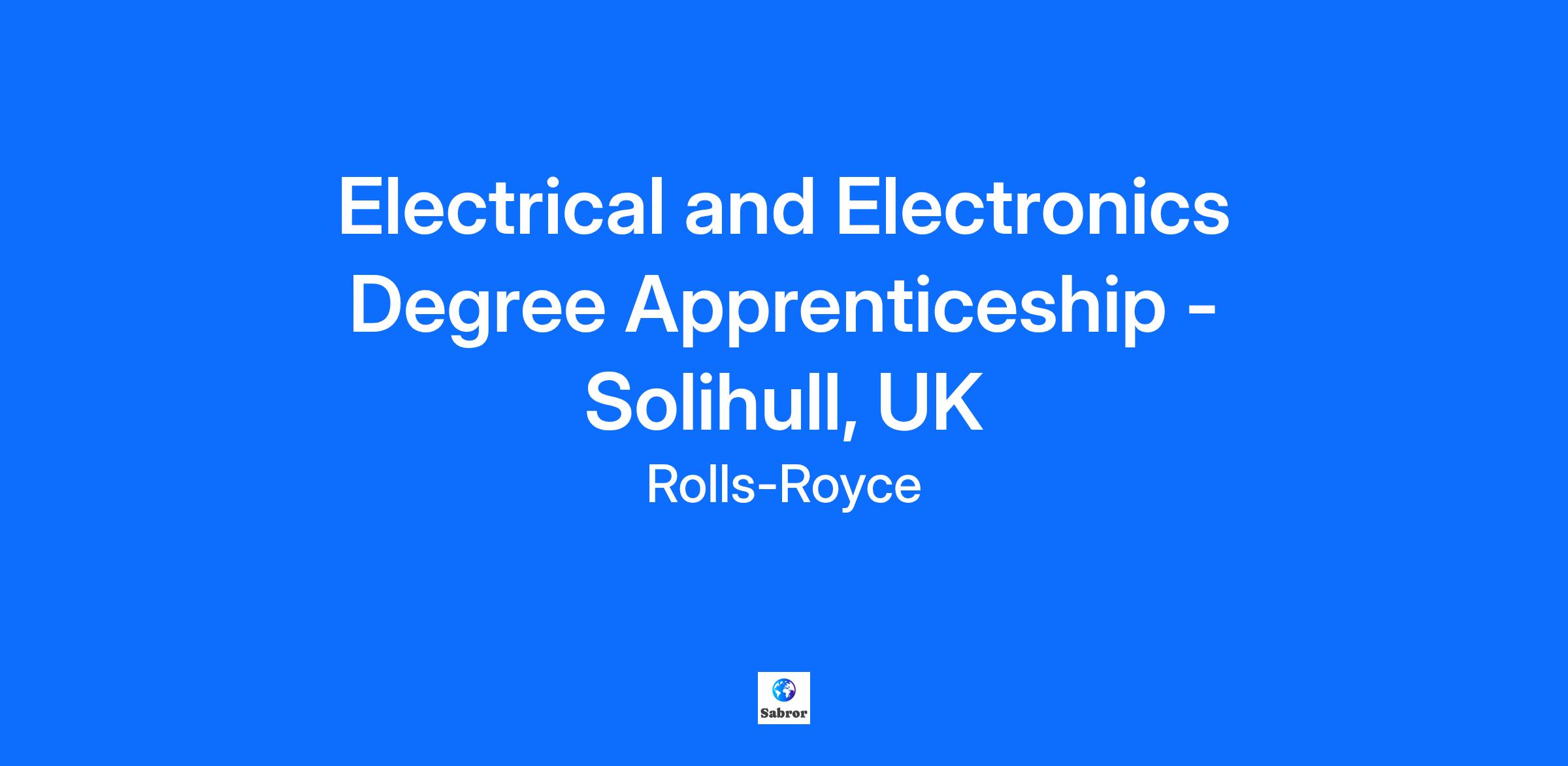 Job Description Electrical and Electronics Degree Apprenticeship - Aerospace Starting salary: £22,990 per year Location: Solihull Duration: 4 years At Rolls-Royce we are proud to be a business that has truly helped to shape the modern world and are committed to always being a force for progress; powering, protecting and connecting people everywhere. By joining Rolls-Royce in an Emerging Talent programme, you'll have the opportunity to work on world-class solutions, supported by a culture that believes individuality is our greatest strength, and all perspectives, experiences and backgrounds help us innovate and enable our high-performance culture. Position summary: As an Electrical and Electronics Degree Apprentice, you’ll be working on electronic controls, electric drive and hybrid-electric systems within our Aerospace, Nuclear and Marine businesses, and have the opportunity to shape some of our most modern technology projects like the new UltraFan engine and SMRs (Small Module Reactors). All of these are helping to achieve our ultimate ambition of reaching net zero carbon emissions for our business and our customers. What you’ll be doing: Over four years, you’ll develop invaluable technical skills. Working with world-class experts, you’ll learn on the job, working on everything from digital and analogue design, all the way through to testing and manufacturing. Alongside this, you’ll study for your Electrical & Electronics Engineering degree from the University of Warwick. Day to day, you’ll be part of exciting work based in our state-of-the-art, purpose-built facility in Solihull. From research, design and test, to build, modify and develop, every stage of development is done under one roof. It’s an unrivalled environment where you can apply the theory you’ve learned as part of your degree. And be inspired to do work you can be proud of. Who we’re looking for: Five GCSEs which must include a minimum of Maths at grade 6/B, English Language at grade 4/C and Science (triple, double or single award excluding single Biology) at grade 4/C plus 2 others at grade 4/C. 112 UCAS points (obtained or predicted) from either: 3 A-Levels to include Maths at a grade B minimum and Physics or Electronics A-Level at grade B minimum Acceptance of BTEC qualifications is reviewed directly by the training provider on a case-by-case basis. However, your BTEC must be in an Engineering discipline which must include either a distinction in Further Maths or have a Maths A-Level in addition to the BTEC at a minimum grade C Every bit as important as your academic achievements, however, are the personal qualities you bring to the role. You’ll need to be an agile thinker, creative problem-solver, someone who’s willing to learn and ready to work as part of a team. Beyond that, we’re looking for people who understand the nature of integrated power and thermal management. And can show a real interest in electrical and electronics and the future of sustainable power. Our behaviours drive us - we put safety first, do the right thing, keep it simple and make a difference. We’ll expect that of you, too. What you’ll get: A competitive starting salary with annual pay rises Fully sponsored Applied Professional Engineering degree from the University of Warwick 33 days’ holiday per year (including bank holidays) Competitive pension A choice of voluntary benefits including discounts at nationwide stores, gyms, discounted health care, free digital GP, Cycle to Work scheme and more all available on our TotalReward portal Continuous learning and development Support from managers, leaders, mentors and other apprentices Opportunities to develop beyond your day-to-day role and get involved in social activities An independent, 24-hour, confidential counselling service Our vision is to ensure that the excellence and ingenuity that shaped our history continues into our future. Our multi-year transformation programme aims to turn Rolls-Royce into a high-performing, competitive, resilient and growing company. Join us, and it can be your future vision too. Rolls-Royce are committed to being a respectful, inclusive, and non-discriminatory workplace where individuality is valued, diverse perspectives fuel innovation, and everyone can thrive. CLOSING DATE: 1st February 2026 11:59pm We reserve the right to close the job advert early dependent on application volumes. Assessment Centres will take place in April Programme Job Posting Date 01 Dec 2025; 00:12 Rolls-Royce pioneers cutting-edge technologies that deliver the cleanest, safest and most competitive solutions to our planet’s vital power needs.