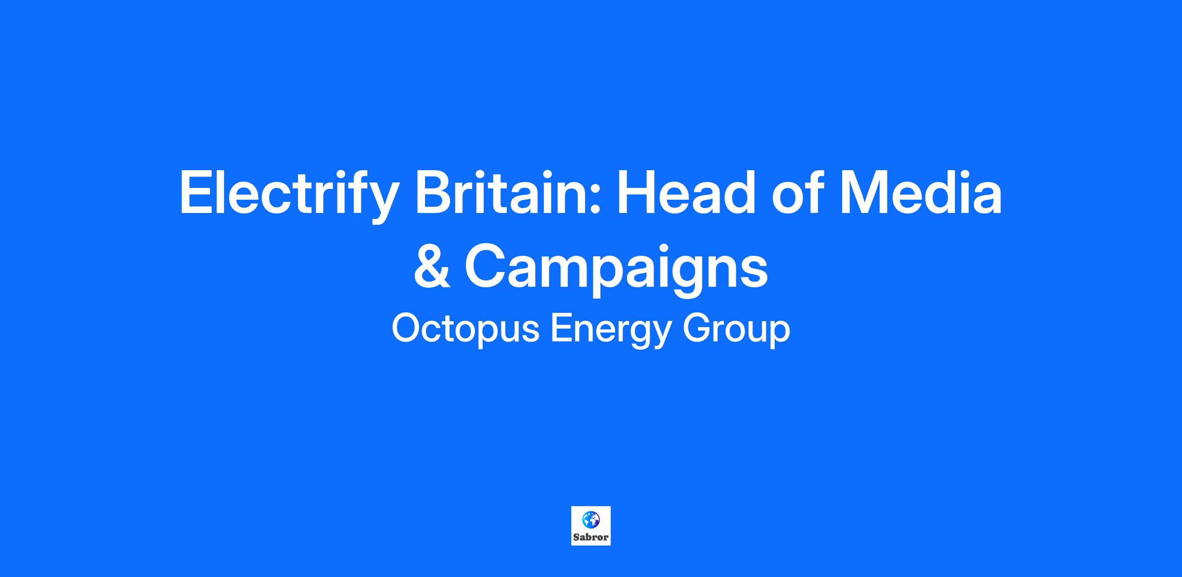 Electrify Britain is on a mission to supercharge the UK’s shift to a fully electrified economy. We campaign for policies that electrify transport, heating and industry: cutting bills for customers, improving living standards and powering a stronger economy. We’re a new kind of organisation - fast-moving, creative and fearless. We blend smart policy ideas with compelling storytelling to make electrification the next big national success story. We’re looking for a Head of Press & Campaigns to help us make noise, shape narratives, and build the momentum Britain needs for an electrified future. This opportunity for an excellent media communicator who knows how to turn ideas into headlines and campaigns into impact. You’ll lead Electrify Britain’s media and press operation, driving coverage, shaping stories and managing relationships with journalists, while also playing a key role in our campaigning and external engagement work. We want someone who can spot opportunities, craft irresistible stories, and get them in front of the right audiences, whether that’s a front-page splash, a viral video, or a big political moment. You’ll also build relationships across politics, business and civil society, helping to grow our network of allies and raise Electrify Britain’s profile as a credible, creative force in the energy debate. As part of a small, entrepreneurial, ambitious team. You’ll be ready to roll up your sleeves and help out wherever needed, shaping a young organisation as it grows. What you'll do... \n Press and media... Lead Electrify Britain’s press and media office, managing both proactive and reactive communications. Build and maintain strong relationships with journalists, editors and producers across print, broadcast, and online. Write and edit sharp, engaging press releases, statements, comment pieces, social media posts and briefings. Spot opportunities in the news cycle and turn them into stories that cut through. Brief and support senior spokespeople for interviews and public appearances. Monitor media coverage and public sentiment to guide our messaging and campaign tactics. Campaigns and external engagement... Work with the team to develop creative campaigns that bring Electrify Britain’s ideas to life across media, digital, and public events. Build and maintain relationships with political, industry, and campaign stakeholders to support shared goals. Represent Electrify Britain at meetings, events, and campaign moments. Help plan and deliver campaign launches, reports, and other high-impact moments, managing our external communications grid. Seek and build new partnerships to maximise Electrify Britain’s reach and influence Support effective interventions working with our teams in Scotland and Wales Be part of an entrepreneurial team... Contribute to a small, agile team, helping out across projects, coming up with ideas, and making things happen quickly. Bring creativity, positivity, and initiative to a growing organisation with big ambitions. You love to work with all kinds of people - you’ve got no functional shoulder pads - it’s not ‘my team versus other teams’, it’s ‘we’re all working together to change the energy system globally, and I’ll lend anyone a hand’ What you'll have... Great experience in communications, media/press or campaigns (though we’re open-minded), think 5+ years... Proven experience securing media coverage and working confidently with journalists and producers. A creative eye for storytelling: you know what makes a good story and how to pitch it. Experience developing and delivering communications, social media or public campaigns that drive attention and action. Excellent writing skills: concise, engaging, and tailored to different audiences. Understanding of the UK media and political landscape, and an instinct for where the opportunities are. Confident representing your organisation externally and building strong relationships. A self-starter who thrives in a small, fast-moving team and believes in Electrify Britain’s mission. \n Come help us electrify the conversation. If this sounds like you then we'd love to hear from you. Are you ready for a career with us? We want to ensure you have all the tools and environment you need to unleash your potential. Need any specific accommodations? Whether you require specific accommodations or have a unique preference, let us know, and we'll do what we can to customise your interview process for comfort and maximum magic! Studies have shown that some groups of people, like women, are less likely to apply to a role unless they meet 100% of the job requirements. Whoever you are, if you like one of our jobs, we encourage you to apply as you might just be the candidate we hire. Across Octopus, we're looking for genuinely decent people who are honest and empathetic. Our people are our strongest asset and the unique skills and perspectives people bring to the team are the driving force of our success. As an equal opportunity employer, we do not discriminate on the basis of any protected attribute. Our commitment is to provide equal opportunities, an inclusive work environment, and fairness for everyone.