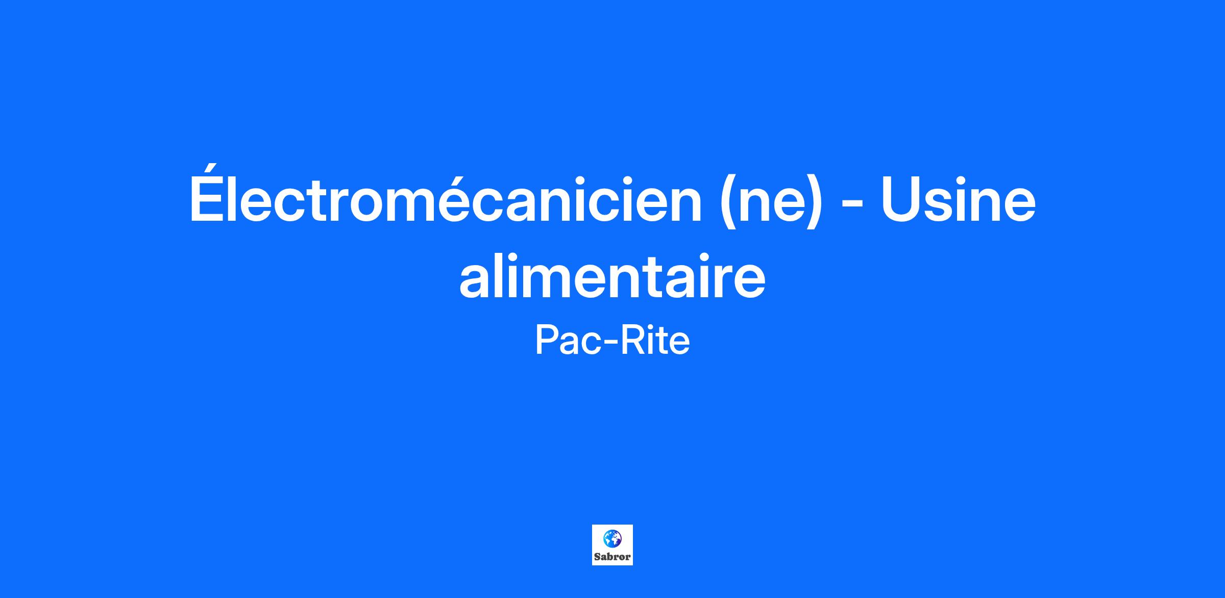 Tu recherches un environnement de travail chaleureux où ton rôle compte vraiment ? Chez Les Produits de Viandes Pac-Rite, nous croyons que le travail peut rimer avec passion et convivialité ! Depuis plus de 70 ans, nous faisons vivre une belle aventure familiale dans le secteur de la volaille, en alliant savoir-faire traditionnel et technologies modernes comme les bras robotiques. Nous cherchons un électromécanicien motivé et curieux, prêt à partager son savoir-faire et à grandir avec nous dans une ambiance conviviale et passionnante. Type d'emploi : Permanent, Temps plein, Quart de jour Quart de travail : Lundi au vendredi Salaire : selon expérience Bureau : 9090 rue Pierre-Bonne, Montréal, H1E 6W5 En rejoignant notre équipe, vous bénéficierez: Assurances collectives, de vie et de voyage Abonnement au gym gratuit Stationnement gratuit Rabais sur votre carte OPUS Évènements de reconnaissance d’employés Votre rôle quotidien Effectuer la maintenance préventive sur des machines d’emballage Effectuer la maintenance corrective de la machinerie hautement automatisée Diagnostiquer et résoudre les problèmes mécaniques et électriques Installer, réparer, remplacer et entretenir les systèmes électriques et mécaniques Effectuer des tests et des inspections régulières pour assurer le bon fonctionnement des équipements Collaborer avec les responsables des divers départements de la production Toutes autres tâches connexes Le profil que nous recherchons Détenir un DEP en électromécanique de systèmes automatisés ou autre formation pertinente Expérience préalable d'au moins 1 an en tant qu'Électromécanicien (domaines agroalimentaire un atout) Bonne compréhension des normes de sécurité dans le domaine industriel Capacité à travailler de manière autonome et à résoudre les problèmes rapidement