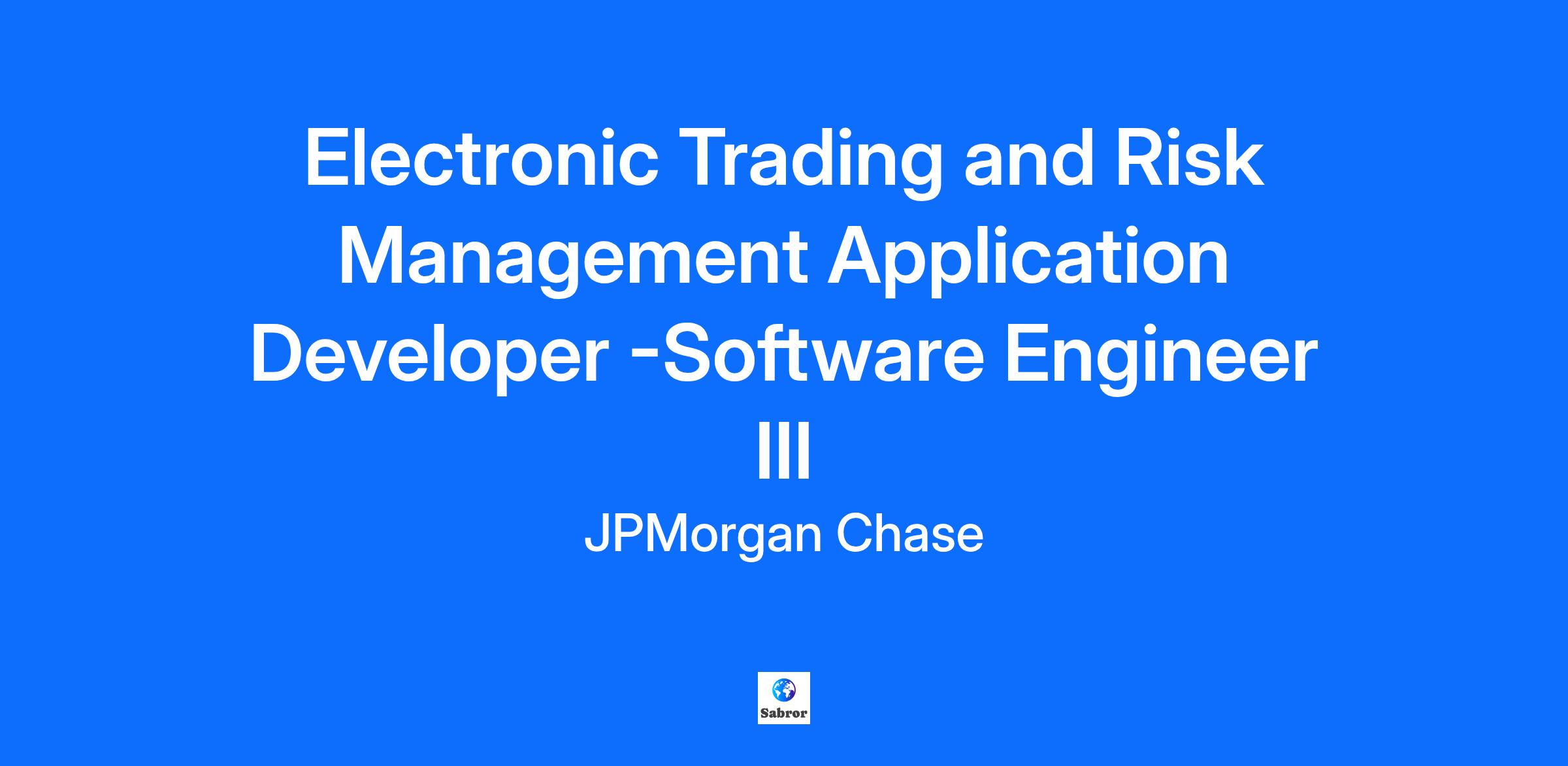 Electronic Trading and Risk Management Application Developer -Software Engineer III