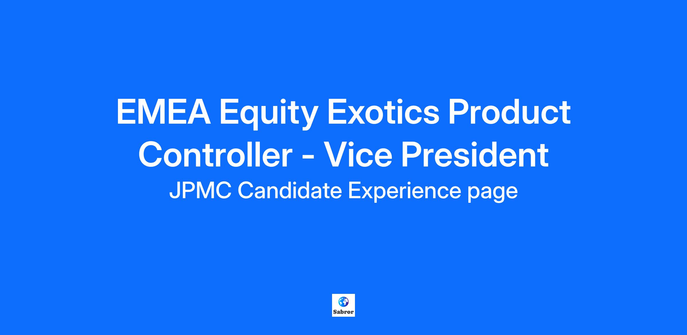 EMEA Equity Exotics Product Controller - Vice President