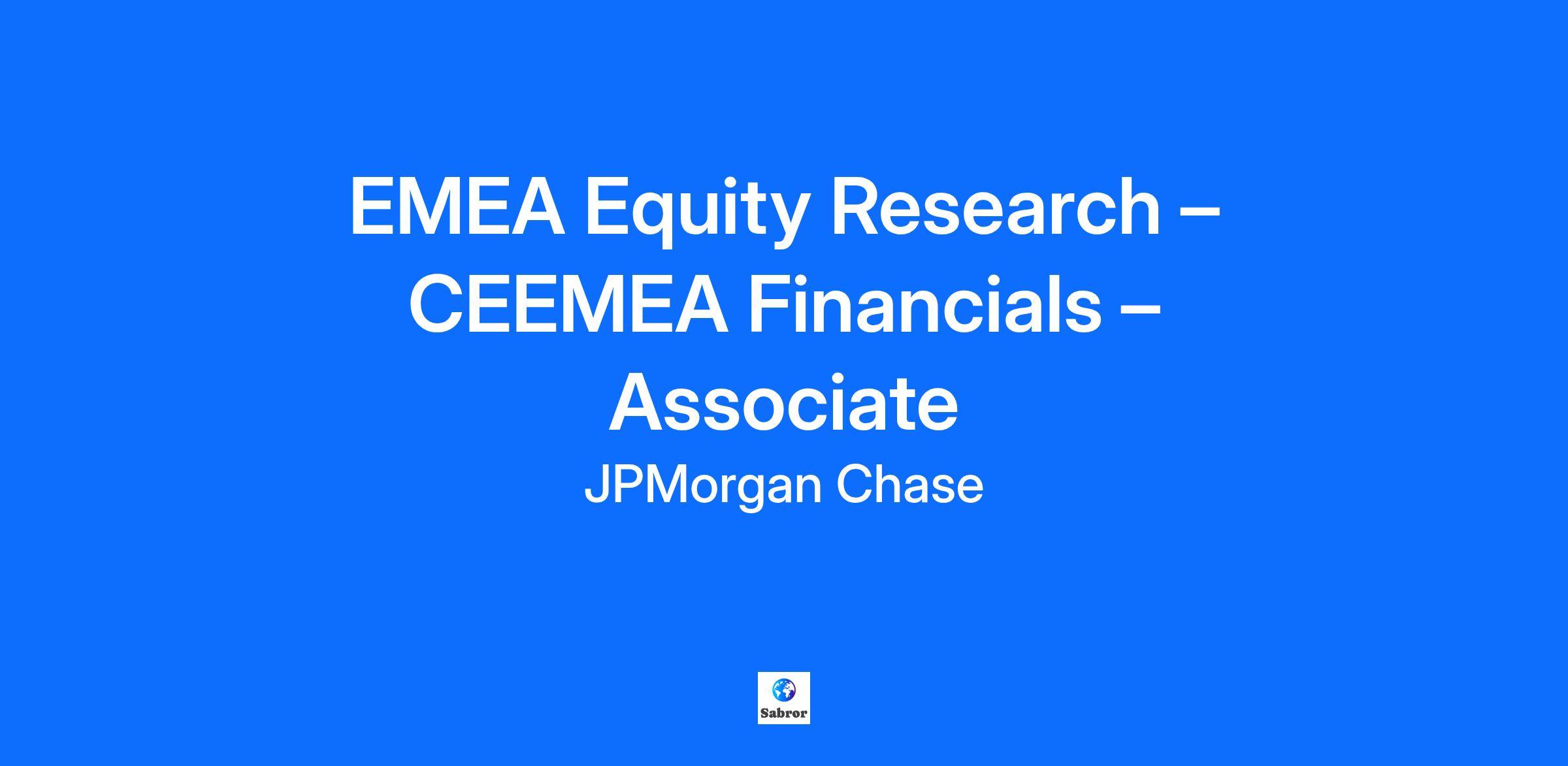 If you are passionate, curious, and ready to make an impact, we are looking for you. As an Equity Research Associate in the CEMEEA Financials Equity Research Team, you should have an interest in equities, markets, companies, and thematic trends, and a passion for building expertise in the Financials sector with a focus on banks. Equity Research is part of J.P. Morgan’s number 1 ranked Global Research franchise. Each team is grouped by sector expertise and aims to provide actionable ideas and thematic insights that empower our institutional clients to make well-informed and strategic investment decisions. We bring clarity to complex situations through extensive sector knowledge and a deep understanding of global markets. You will be working within our top-ranked team under the mentorship and guidance of the senior analysts, developing thought-leading company, sector, and thematic reports, and delivering the team’s stock and sector insights to our institutional clients. In addition to your direct team responsibilities, you will be part of a network of inquisitive, smart, and collaborative individuals who have gained significant responsibility and exposure at an early career stage. We provide extensive department-wide training and professional development to support career growth. Job Responsibilities Work with senior colleagues in the team to provide thought-leadership to institutional clients with respect to the sector with potential for stock coverage based on candidate readiness Maintain and update bank valuation models and databases Prepare materials for the regular publication of research reports, including data analysis and presentation Contribute to the writing of research reports, including quarterly results alerts, stock reports, and thematic pieces Communicate with institutional investors and company representatives, as well as internal clients (Sales, Sales-Traders, and Traders) Stay abreast of company and industry developments Required Qualifications, Capabilities, and Skills Substantial experience in equity research, investment banking, or consulting with exposure to the banking and/or the broader financials sector Excellent communication skills, both verbal and written; you can engage and influence partners and stakeholders Enthusiasm for a team-focused environment where each individual’s insight and expertise is valued An analytical approach to building and maintaining financial models Strong numeracy skills Great attention to detail Strong interest in macroeconomic and political developments, Emerging Markets, as well as long-term structural drivers of change in the banking sector including technology and regulation Relationship-building skills — you should feel comfortable connecting with a wide range of individuals, have the ability to communicate clearly, concisely, and confidently both to colleagues and external clients, and possess a talent for distilling complex issues into specific conclusion Preferred qualifications, capabilities, and skills Strong financial modelling skills, with the ability to forecast balance sheet and earnings Background in finance, engineering, math, or computer science This role encompasses the performance of UK regulated activity. The successful candidate will therefore be subject to meeting UK regulatory requirements in the assessment of fitness, propriety, knowledge and competence (as assessed by the Firm) and (where appropriate) approval by the UK Financial Conduct Authority and/or the Prudential Regulation Authority to carry out such activities.