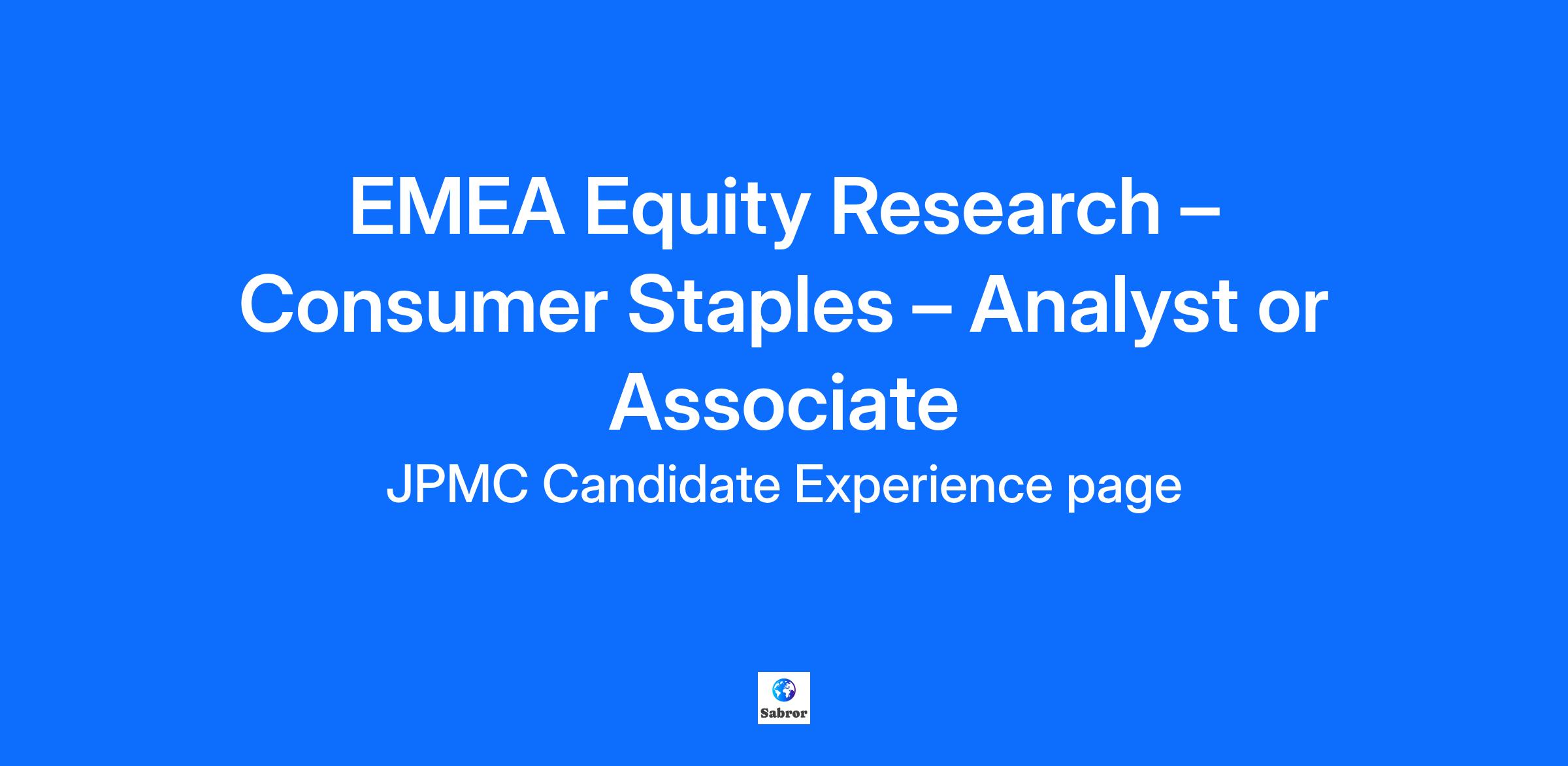 Equity Research is part of J.P. Morgan’s number 1 ranked Global Research franchise. Each team is grouped by sector expertise and aims to provide actionable ideas and thematic insights that empower our institutional clients to make well-informed and strategic investment decisions. We bring clarity to complex situations through extensive sector knowledge and a deep understanding of global markets. As an Equity Research Analyst or Associate within the Consumer Staples Equity Research Team, you will be tasked with cultivating a deep understanding of equities, markets, and companies, with a special emphasis on the Consumer Staples sector. Your role will involve collaborating closely with our top-tier team under the mentorship of senior analysts to create insightful reports on companies, sectors, and thematic trends. You will also be responsible for conveying our team's insights on stocks and sectors to our institutional clients. Beyond your immediate team duties, you will be a part of a community of intelligent, inquisitive, and collaborative team members who are given substantial responsibility and exposure early in their careers. We provide extensive training and professional development across the department to support career progression. Job Responsibilities Work with senior colleagues in the team to provide thought-leadership to institutional clients with respect to the Consumer Staples sector with potential for stock coverage based on candidate readiness Maintain and update valuation models and databases Prepare materials for the regular publication of research reports, including data analysis and presentation Contribute to the writing of research reports, including quarterly results alerts, stock reports, and thematic pieces Communicate with institutional investors and company representatives, as well as internal clients (Sales, Sales-Traders, and Traders) Stay abreast of company and industry developments Required Qualifications, Capabilities, and Skills Strong numeracy skills , Great attention to detail An analytical approach to building and maintaining financial models Excellent communication skills, both verbal and written; you can engage and influence partners and stakeholders Enthusiasm for a team-focused environment where each individual’s insight and expertise is valued Relationship-building skills — you should feel comfortable connecting with a wide range of individuals, have the ability to communicate clearly, concisely, and confidently both to colleagues and external clients, and possess a talent for distilling complex issues into specific conclusion Preferred qualifications, capabilities, and skills Prior experience in Research , Banking or Fund management would be advantageous as well as experience in the Consumer Industry, Accounting or Consulting. This role encompasses the performance of UK regulated activity. The successful candidate will therefore be subject to meeting UK regulatory requirements in the assessment of fitness, propriety, knowledge and competence (as assessed by the Firm) and (where appropriate) approval by the UK Financial Conduct Authority and/or the Prudential Regulation Authority to carry out such activities.