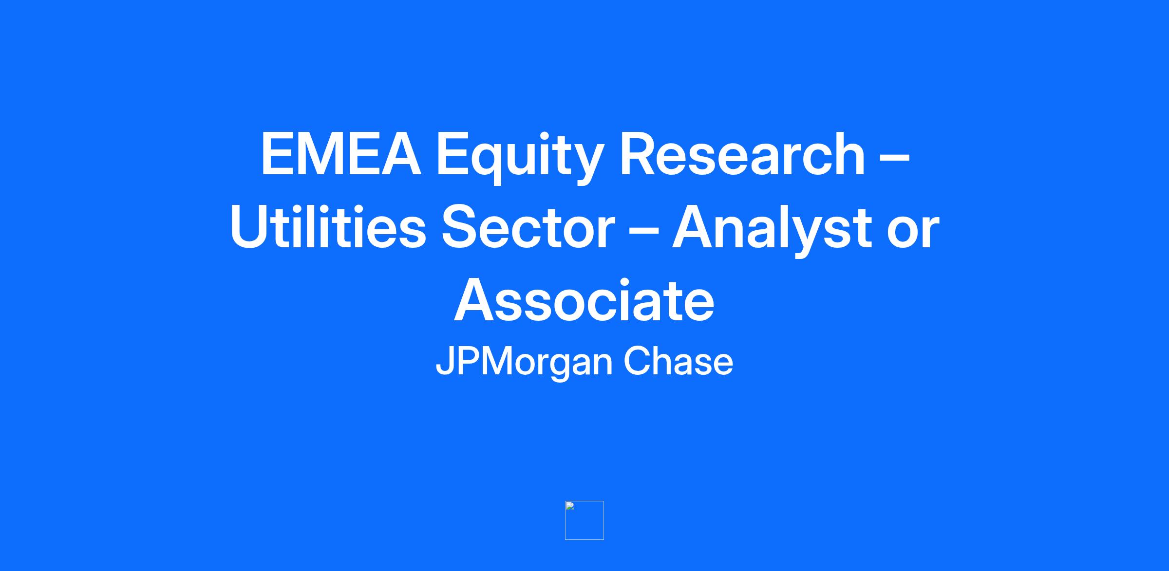 Equity Research is part of J.P. Morgan’s number 1 ranked Global Research franchise. Each team is grouped by sector expertise and aims to provide actionable ideas and thematic insights that empower our institutional clients to make well-informed and strategic investment decisions. We bring clarity to complex situations through extensive sector knowledge and a deep understanding of global markets. As an Equity Research Analyst or Associate within the Utilities Equity Research Team, you will be tasked with cultivating a deep understanding of equities, markets, and companies, with a special emphasis on the Utilities sector. Your role will involve collaborating closely with our top-tier team under the mentorship of senior analysts to create insightful reports on companies, sectors, and thematic trends. You will also be responsible for conveying our team's insights on stocks and sectors to our institutional clients. Beyond your immediate team duties, you will be a part of a community of intelligent, inquisitive, and collaborative team members who are given substantial responsibility and exposure early in their careers. We provide extensive training and professional development across the department to support career progression. Job Responsibilities Work with senior colleagues in the team to provide thought-leadership to institutional clients with respect to the Utilities sector with potential for stock coverage based on candidate readiness Maintain and update valuation models and databases Build and maintain therapeutic models for different diseases Prepare materials for the regular publication of research reports, including data analysis and presentation Contribute to the writing of research reports, including quarterly results alerts, stock reports, and thematic pieces Communicate with institutional investors and company representatives, as well as internal clients (Sales, Sales-Traders, and Traders) Stay abreast of company and industry developments Required Qualifications, Capabilities, and Skills Strong interest in the Utilities and a willingness to specialize in this area. Excellent communication skills, both verbal and written; you can engage and influence partners and stakeholders Enthusiasm for a team-focused environment where each individual’s insight and expertise is valued An analytical approach to building and maintaining financial models Strong numeracy skills Great attention to detail Relationship-building skills — you should feel comfortable connecting with a wide range of individuals, have the ability to communicate clearly, concisely, and confidently both to colleagues and external clients, and possess a talent for distilling complex issues into specific conclusion Preferred qualifications, capabilities, and skills Strong modelling skills, with the ability to forecast Experience in the Accounting or Consulting advantageous but not essential This role encompasses the performance of UK regulated activity. The successful candidate will therefore be subject to meeting UK regulatory requirements in the assessment of fitness, propriety, knowledge and competence (as assessed by the Firm) and (where appropriate) approval by the UK Financial Conduct Authority and/or the Prudential Regulation Authority to carry out such activities.