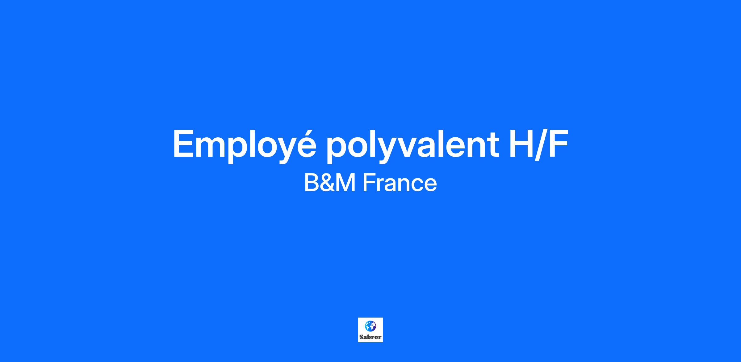 B&M, enseigne anglaise spécialiste du discount, représente aujourd’hui plus de 140 magasins en France et plus de 1100 magasins en Europe. Nous offrons à nos clients la possibilité de faire leurs courses avec le meilleur rapport qualité/prix. La société B&M a été élue "Meilleure Chaîne de Magasins 2026" dans la catégorie décoration et idées cadeaux. Chez B&M nous avons à cœur de viser l’excellence, de travailler avec efficacité et de nous engager pour nos clients grâce à notre travail d’équipe. DESCRIPTIF DU POSTE Pour notre magasin B&M à Fegersheim, nous recherchons un employé polyvalent H/F. Vous participez au développement des performances du magasin et à la satisfaction client. Vos missions : Accueillir, orienter, renseigner et fidéliser les clients Réceptionner et garantir la conformité des produits (DLC, qualité…) Assurer la mise en rayon et le réassort tout en respectant les consignes d’emplacement des produits Mettre les produits en valeur Gérer la caisse Veiller à la bonne tenue du magasin (propreté, rangement …) VOTRE PROFIL Vous aimez le travail en équipe, la polyvalence et vous faites preuve d’initiatives. Vous placez la satisfaction clientèle au cœur de vos priorités. Vous avez une première expérience sur un poste similaire dans la distribution. REJOINDRE B&M Vos avantages : Mutuelle du salarié prise en charge à 65% par l’employeur Prévoyance Epargne salariale Avantages CSE Réduction de 10% sur tous nos produits en magasin après 3 mois d’ancienneté Prime d’ancienneté progressive Prime dite de « 13ème mois » à partir d'un an d'ancienneté dans l'entreprise Votre rémunération : Fixe : 1916 € brut mensuel sur 12 mois Variable : Prime de productivité trimestrielle Votre contrat : Contrat : CDI Statut : Employé Temps de travail : 35h hebdomadaire Votre environnement de travail : Ouverture du magasin 7j/7 Tenue de travail + chaussures de sécurité Port de charges Une prise en compte des besoins spécifiques de chaque candidat sera réalisée dès l’entretien de recrutement. SEG2SPON
