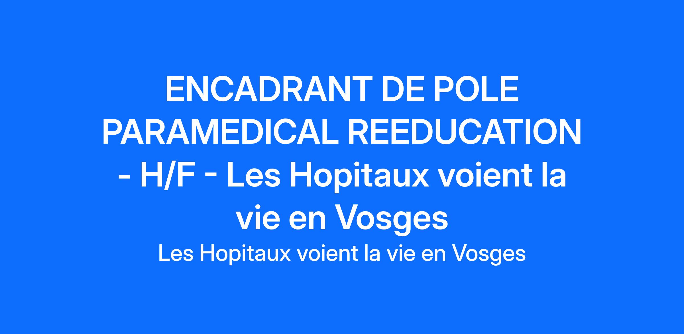 Rejoignez-nous en tant qu'encadrant du pôle paramédical rééducation et devenez un acteur clé de la rééducation de nos patients sur nos sites d'Épinal, Golbey et Remiremont sur les fonctions suivantes :