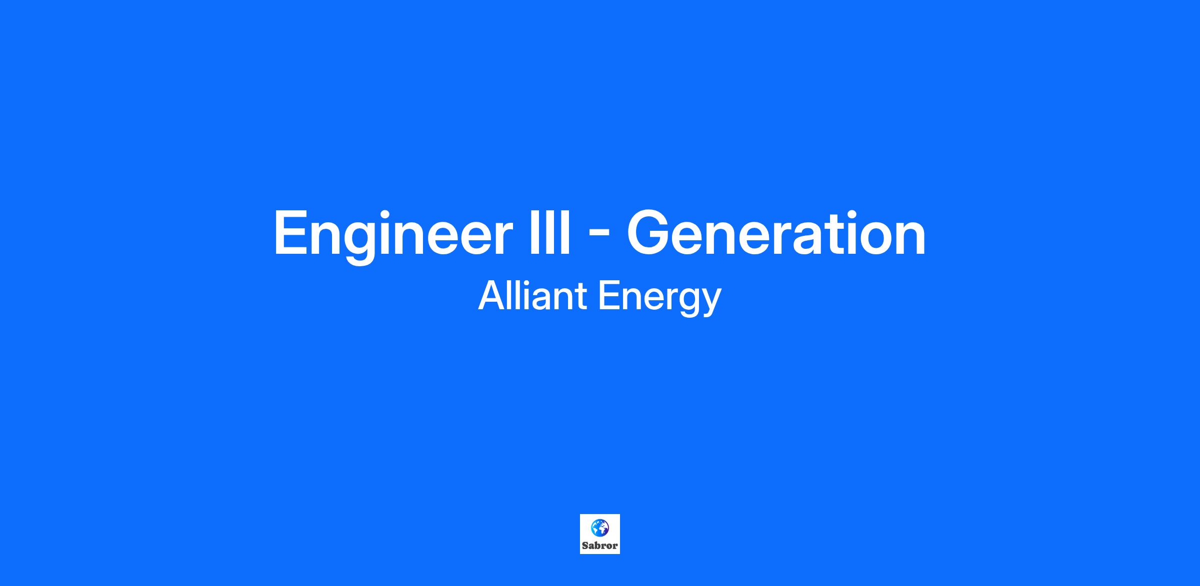 Bring YOUR energy to Alliant Energy! At Alliant Energy, our purpose is to serve customers and build stronger communities. We are passionate about powering beyond the market challenges of today, while powering what's next in energy. When our employees say "I am energy", it means they take pride in the work we do when disaster strikes, as well as all the days in between. We want you to be safe, happy and healthy. That's why we prioritize safety, offer volunteer opportunities and provide competitive pay, comprehensive health and retirement benefits, tuition reimbursement and paid time off. Job Summary As an Engineer III in Power Generation, you’ll take on exciting challenges that keep energy flowing to homes, businesses, and communities. You’ll be part of a team that designs and improves systems to ensure safe, reliable, and efficient power delivery. This position combines problem-solving, creativity, and collaboration to make a real impact on how energy is produced and managed. In this role, you’ll lead projects that modernize and optimize our operations by upgrading systems, improving automation, and ensuring everything runs smoothly. You’ll help set standards, manage timelines, and work with cutting-edge tools to keep critical infrastructure strong and future-ready. If you’re looking for a career where innovation meets purpose and your ideas help shape the future of energy, this is the opportunity for you! What you will do Makes safety suggestions to assist in maintaining a safe work environment using tools and standards. Applies past experiences and develops creative ideas to analyze problems and recommend possible solutions for moderately complex problems. For moderately complex projects or issues, receives guidance from peers, and mentors and provides guidance to less experienced personnel in making decisions on less complex problems. Frequently uses critical thinking skills and sound technical understanding of standards to provide cost-effective solutions to a specific problem. Demonstrates an understanding of customer and business needs and regularly develops and implements the appropriate workable solution to problems based on given budgetary and schedule constraints while appropriately applying policy and code requirements. Makes medium risk decisions that involve direct application of technical knowledge with proper sign off from customer and minimal guidance from supervisor. Has established effective working relationships with employees, contractors, customers, functional groups, and internal and external peers. Explains technical problems to internal stakeholders and accurately prepares detailed documents such as technical studies and project documentation for future reference. Understands procedure FIN 102 Purchasing of Materials and Services and ensures correct use of procurement and payment tools to conduct business. Knows the property unit catalog and can differentiate and provide classification between capital and maintenance projects in accordance with the property unit catalog, applying the chart of accounts. Manages project budgets, including processes accruals and communicates anticipated changes in the budget; has completed financial reporting training and Utility Rate Making Concepts training. Supports Generation facility outages. Engages in other duties as needed that support Alliant Energy’s Values and helps deliver on our Purpose to serve customers and build stronger communities. Education Requirements Bachelor's Degree Engineering program that is accredited through the Engineering Accreditation Commission required. Required Experience 5 years of related experience. Preferred Experience Project management experience, along with ability to deal with subcontractors and cross-functional teams; may have expertise in a particular area of the discipline. Knowledge, Skills, and Abilities Demonstrated effective interpersonal, verbal, and written communication skills. Demonstrated ability to use computer software programs (e.g., e-mail, word processing, spreadsheet, and project management). Ability to work effectively in a collaborative and inclusive work environment. Key Skills Condition Monitoring • Continual Improvement Process • Cost Optimization • Design Specifications • Inspection Management • Power Engineering • Predictive Maintenance • Project and Program Management • Records Management • Root Cause Analysis Our people are passionate about what they do, the product they sell, and the customers they serve. If you're looking for an opportunity to be a part of a work family that values collaboration, innovation and dedication, we're the right company for you. Alliant Energy offers a comprehensive total rewards package including competitive compensation and benefit programs. Information on these benefit programs is available on our Careers site. Pay Range: $84,000 - $146,000 This position is eligible to participate in the annual incentive program. The final salary offered will generally fall within this range and is dependent on various factors including but not limited to the responsibilities of the position, experience, skill set, internal pay equity and other relevant qualifications of the applicant. It's not just what we do; it's how we do it. Live Safety. Everyone. Always | Make Things Better | Care For Others | Do The Right Thing | Act For Tomorrow | Think Beyond. Be Bold Alliant Energy and its subsidiaries are committed to creating a culture of belonging and is proud to be an Equal Opportunity Employer where an applicant's qualifications are considered without regard to race, color, religion, sex, national origin, age, disability, veteran status, sexual orientation, gender identity, or any other basis prohibited by law. All candidates selected for employment with Alliant Energy will be required to successfully complete a background check, and a drug screen where applicable. Disclaimer: The above information on this description has b