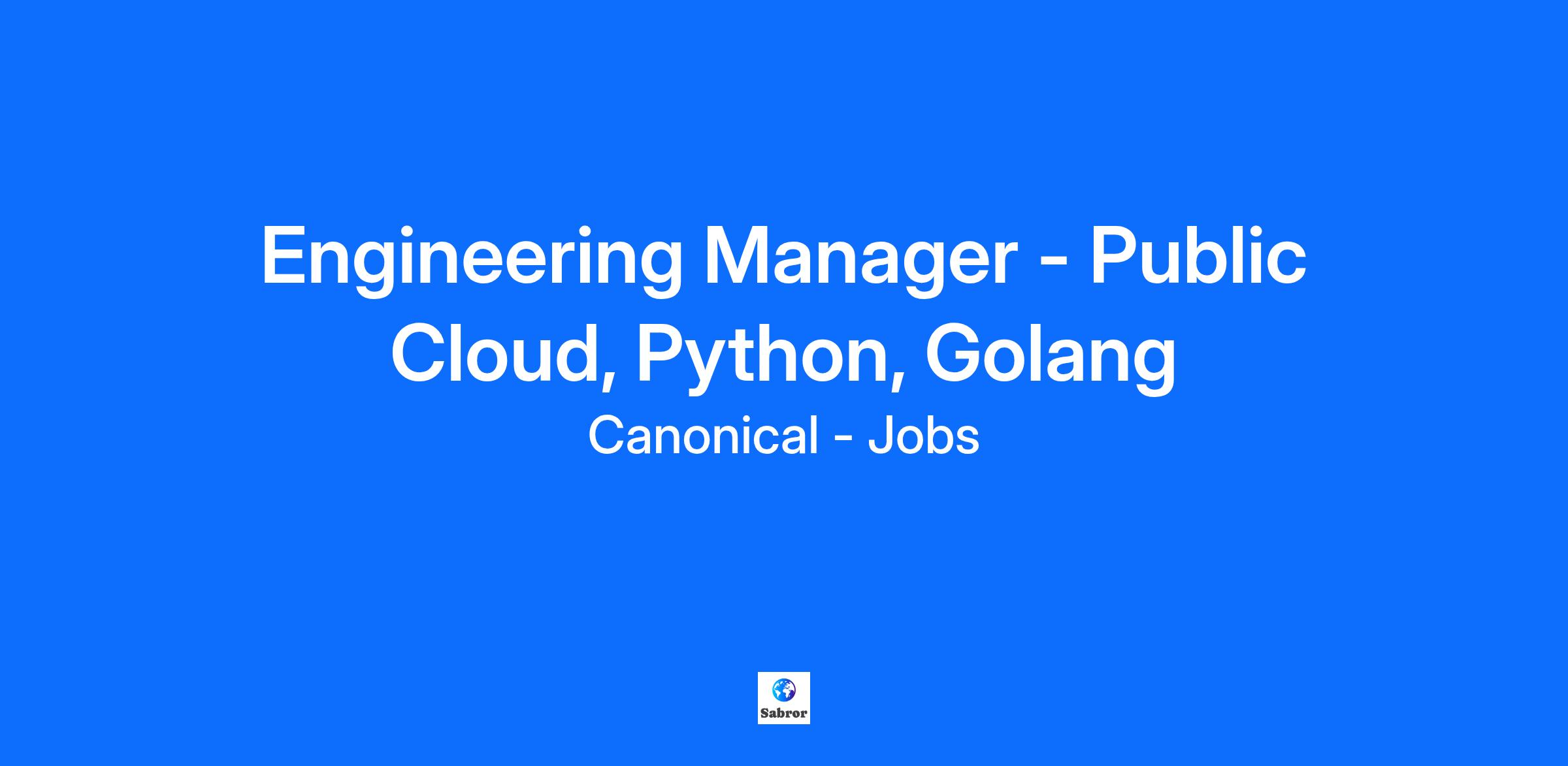 Engineering Manager - Public Cloud, Python, Golang