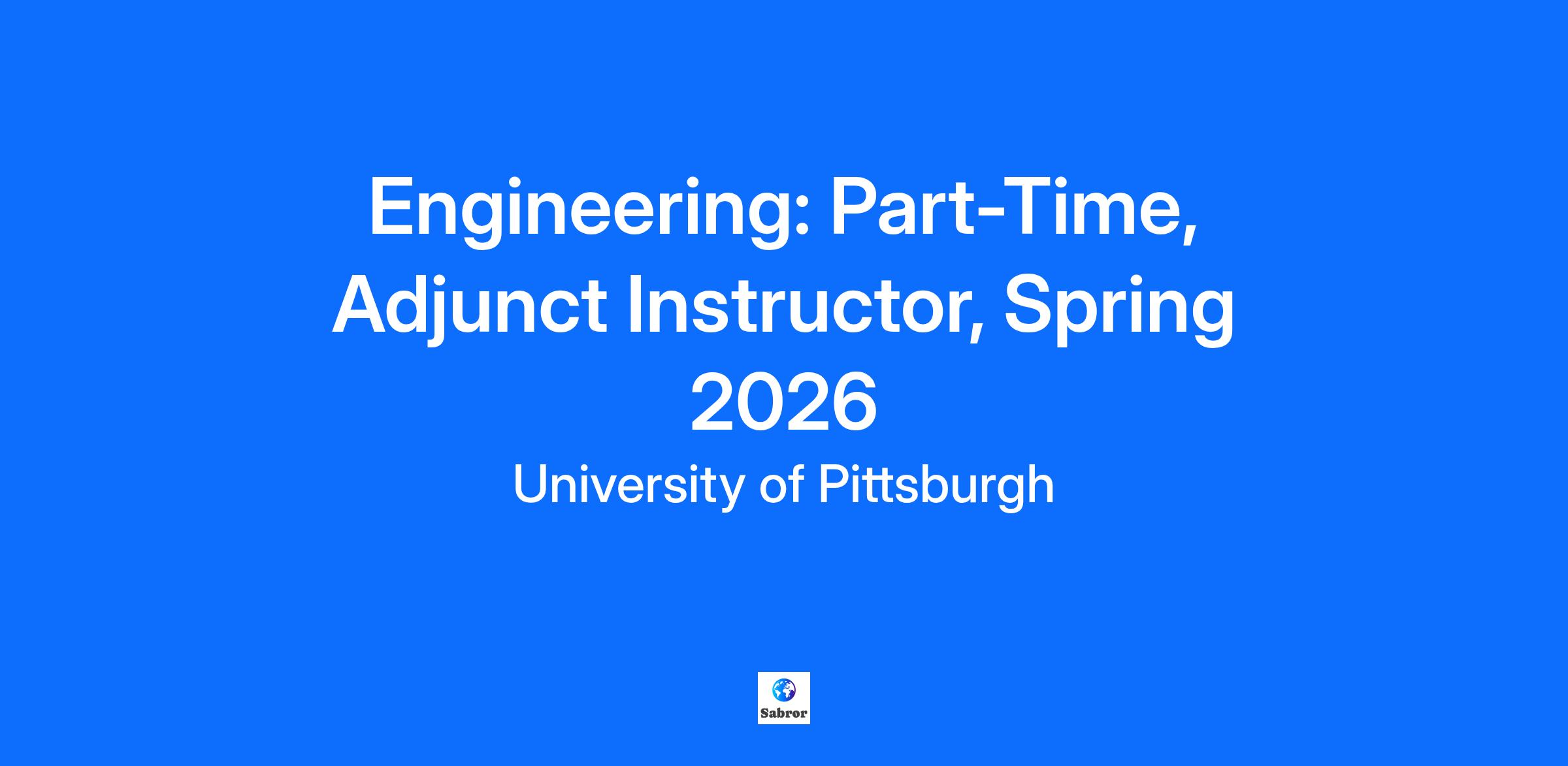 Engineering: Part-Time, Adjunct Instructor, Spring 2026 The Division of Physical and Computational Sciences is currently seeking applicants for a Part-Time, Adjunct Instructor of Engineering for Spring Term 2026. Requirements: A Master’s Degree or higher in Mechanical Engineering or a closely related field, with a strong commitment to teaching undergraduates. Responsibilities: Applicants for this position must be able to teach classes offered for Pitt-Bradford’s four-year Mechanical Engineering Technology Program with Engineering Design (Fusion 360), CAD/CAE (Solid Works), Engineering Computing (Matlab), Finite Element Analysis (Solid Works) skills preferred. A strong commitment to teaching undergraduates and experience teaching at the university or collegiate level is preferred. Candidates who have experience working with college students from varied backgrounds and applied experience in the field of expertise are encouraged to apply. Apply online at: https://www.join.pitt.edu/. Please submit a letter of application; C.V.; and contact information for three professional references, including their name, title, email address, phone number, and their relation to the candidate. (Please Note: All documents must be submitted as PDF files & labeled correspondingly in Talent Center.) Review of complete applications will begin immediately and continue until the position is filled. www.upb.pitt.edu/faculty-search-information *Please Note: This Job Classification Does Not Support Sponsorship or Relocation.