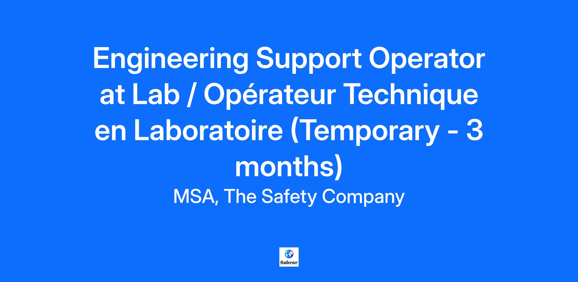 Overview MSA est un groupe international de plus de 5,000 salariés avec 250 salariés sur le site de Châtillon sur Chalaronne qui est un site de développement et de production de casques de pompiers ,de casques police/militaire et de casques industriels. Depuis 1914 , MSA a pour mission de protéger les travailleurs et les infrastructures à travers le Monde en proposant ses produits et solutions dans différentes industries, aux polices et armées et aux services d’incendies et secours. MSA is an international group of more than 5,000 employees with 250 employees on the Châtillon sur Chalaronne site which is a development and production site for firefighter helmets, police/military helmets and construction helmets. Since 1914, MSA's mission has been to protect workers and infrastructure around the world by offering its products and solutions in different industries, to police and armies and to fire and rescue services. Responsibilities Le travail est temporaire, du 15 décembre au 15 mars. L’opérateur Technique en laboratoire H/F réalise des essais laboratoire dans le respect des procédures en place et des objectifs de sécurité, qualité, délais, et couts fixés. Il/Elle réalise des essais sur les produits en développement afin d’ajuster puis de qualifier les nouveaux design. Il/Elle effectue également des essais sur les produits en vie série afin de les contrôler. This is a temporary position, from December 15th to March 15th. The Technical Operator in the laboratory W/M carries out laboratory tests in compliance with the procedures in place and the safety, quality, deadlines and cost objectives set. He/she carries out tests on products under development in order to adjust and then qualify new designs. He/she also performs tests on products in series production in order to control them. Qualifications Experience requise: 0 à 2 ans d’expérience en laboratoire Expérience dans un laboratoire mécanique et/ou en milieu industriel Experience souhaitée: Connaissances en mesures physiques / mécanique Qualification: Diplôme du Baccalauréat ou niveau équivalent Experience required: 0 to 2 years in a lab Experience in a mechanical laboratory and/or industrial environment Experience preferred: Knowledge of physical measurements / mechanical Education: Baccalaureate diploma or equivalent #LI-AS1 #LI-Onsite