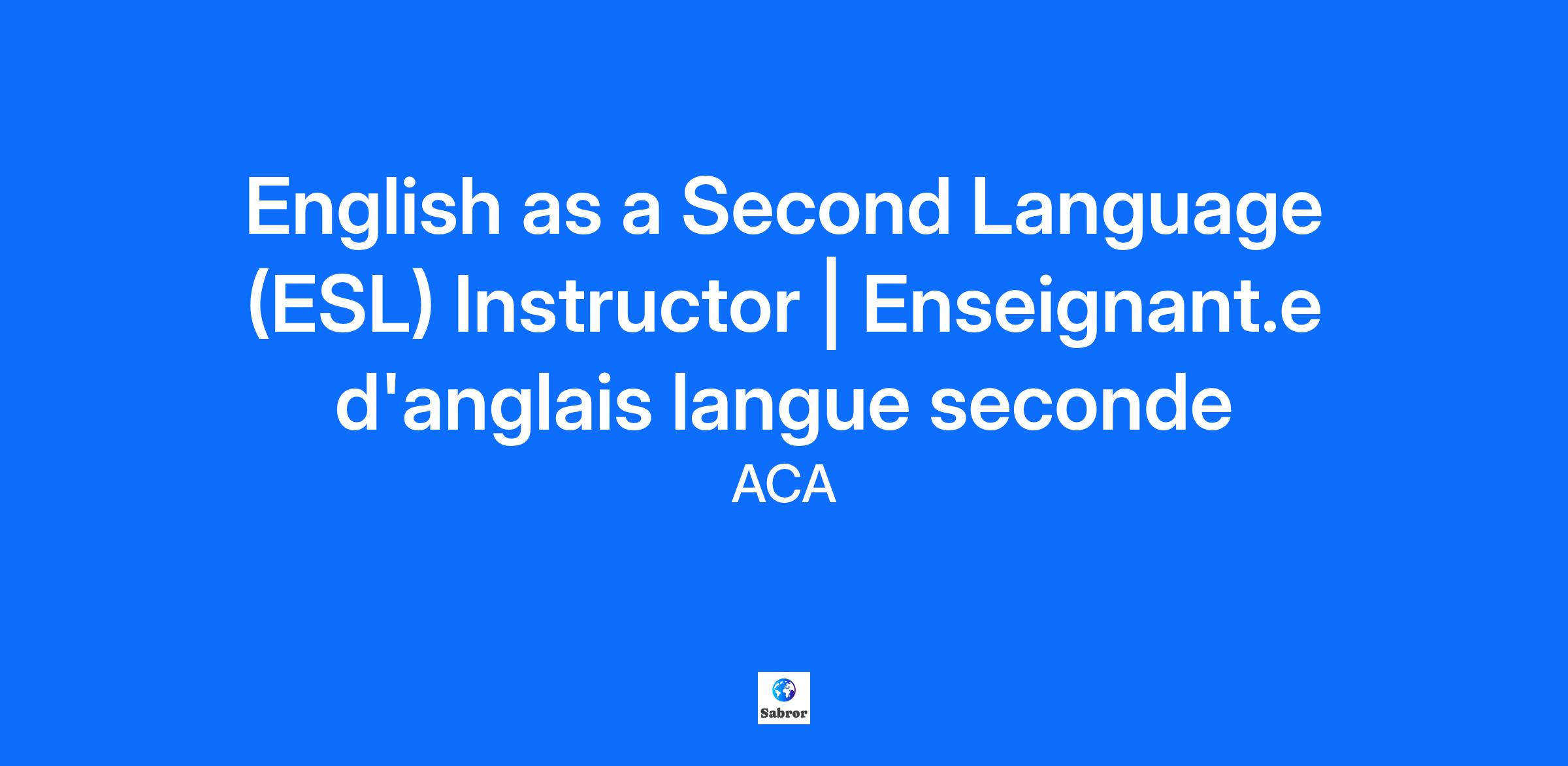 English as a Second Language (ESL) Instructor | Enseignant.e d'anglais langue seconde