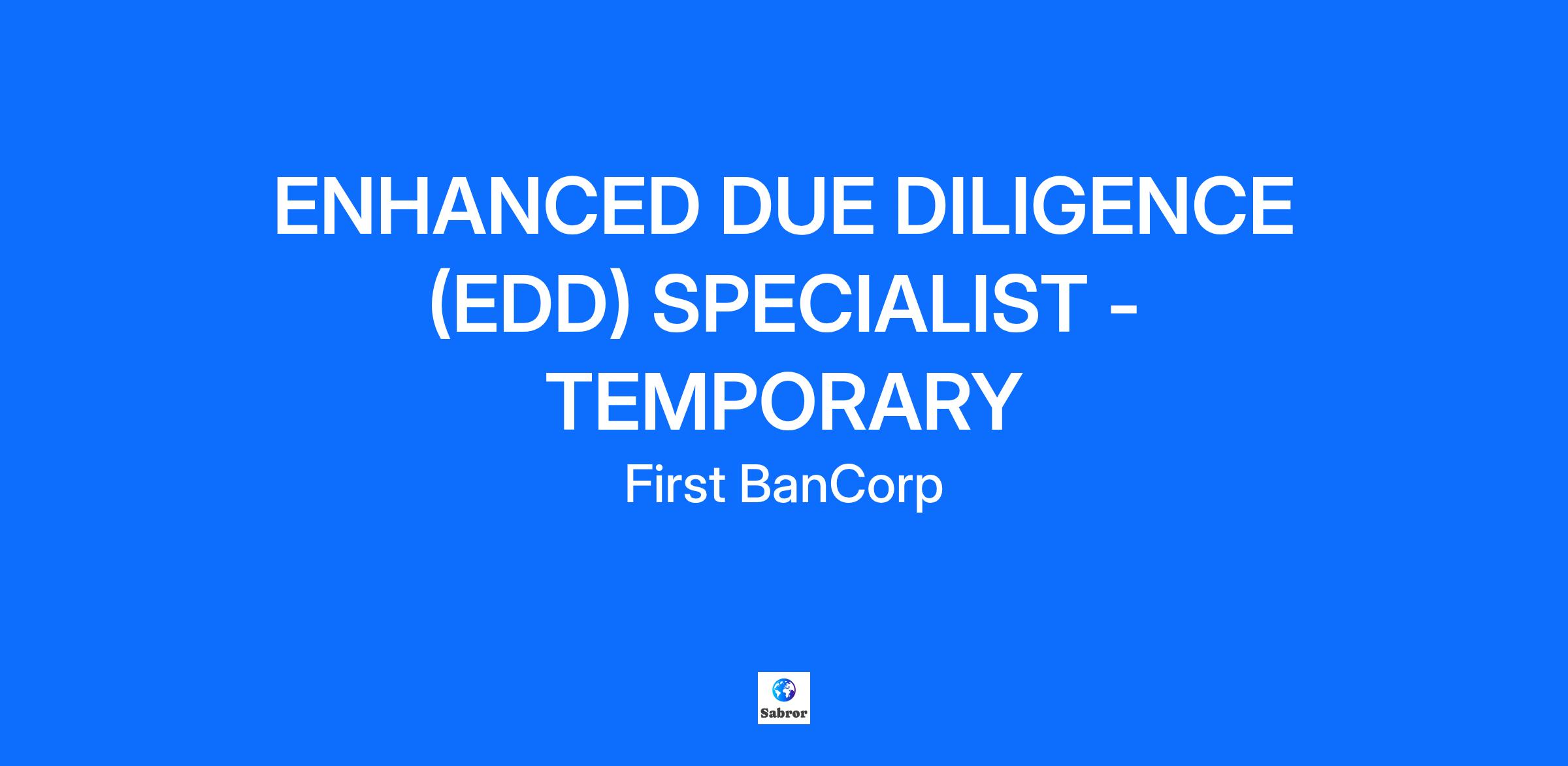 ENHANCED DUE DILIGENCE (EDD) SPECIALIST - TEMPORARY Job Summary The Enhanced Due Diligence Specialist is responsible for performing PEP and NPO file reviews and remediation working with Branch Manager to ensure quality results from regulatory reviews, audit, and compliance assessments. Essential Responsibilities Review all PEP and NPO files to ensure compliance with established procedures Identify specific information/documentation need to remediate and contact clients either by telephone or email to request same. Received documents/information from clients, updating each file as needed and submit to branch management/compliance for final review and approval. Submit for system update and perform post update review for completeness. Secure files in the respective alphabetical order Functional Competencies Comprehensive understanding of BSA, AML, OFAC, and retail banking policies/procedures Knowledge of the operational procedures as well as the regulations that govern the financial industry in the related area. Knowledge in Microsoft Office Ability to communicate effectively both orally and in writing in English Ability to make oral and written presentations. Ability to work on time with project schedules and multiple priorities. Skills to maintain effective interpersonal relationships Competencies Anticipates and provides service excellence to both internal and external customers Establishes, sustains and fosters both internal and professional contacts to build, enhance, and connect to FirstBank services Delivers clear, effective communication and takes responsibility for understanding others. Understands how the organization works, including, current and future policies, practices and trends Identifies problems and conducts appropriate analyses involving others to searches for best solutions Takes initiative and assumes personal accountability for goals, outcomes and deadlines The employee understands organization’s vision and upholds the organizations values in everyday words and actions. At higher levels the employee takes a long-term view and share with others the vision and the organization path ahead. Provides direction and leadership to help teams achieve goals and operate cooperatively and cohesively Demonstrate curiosity for learning and perform activities to make the most of their skills and boost potential in self and others Creates a view of change as an opportunity and inspires others. Looks for new ways to experiment with new ideas and approaches Independence of Judgment The degree of judgment is related to the identification and definition of new problems of moderate complexity. Supervisory Responsibilities This position has no supervisory responsibilities. Impact of Errors The impact of errors of this position could affect essential activities of administrative, operational or business nature that have a considerable economic impact. Physical Demands The physical demands described here are representative of those that must be met by an employee to successfully perform the essential functions of this job. Reasonable accommodations may be made to enable individuals with disabilities to perform the essential functions. Specific vision abilities required by this job include close vision and distance vision. While performing the duties of this Job, the employee is regularly required to sit; use hands to finger, handle, or feel and talk or hear. The employee is occasionally required to stand and walk. Minimum Requirements A Bachelor’s Degree in Business Administration is required for this job and a minimum of five to six years of relevant experience in Compliance and Branch Banking. EQUAL EMPLOYMENT OPPORTUNITTY EMPLOYER