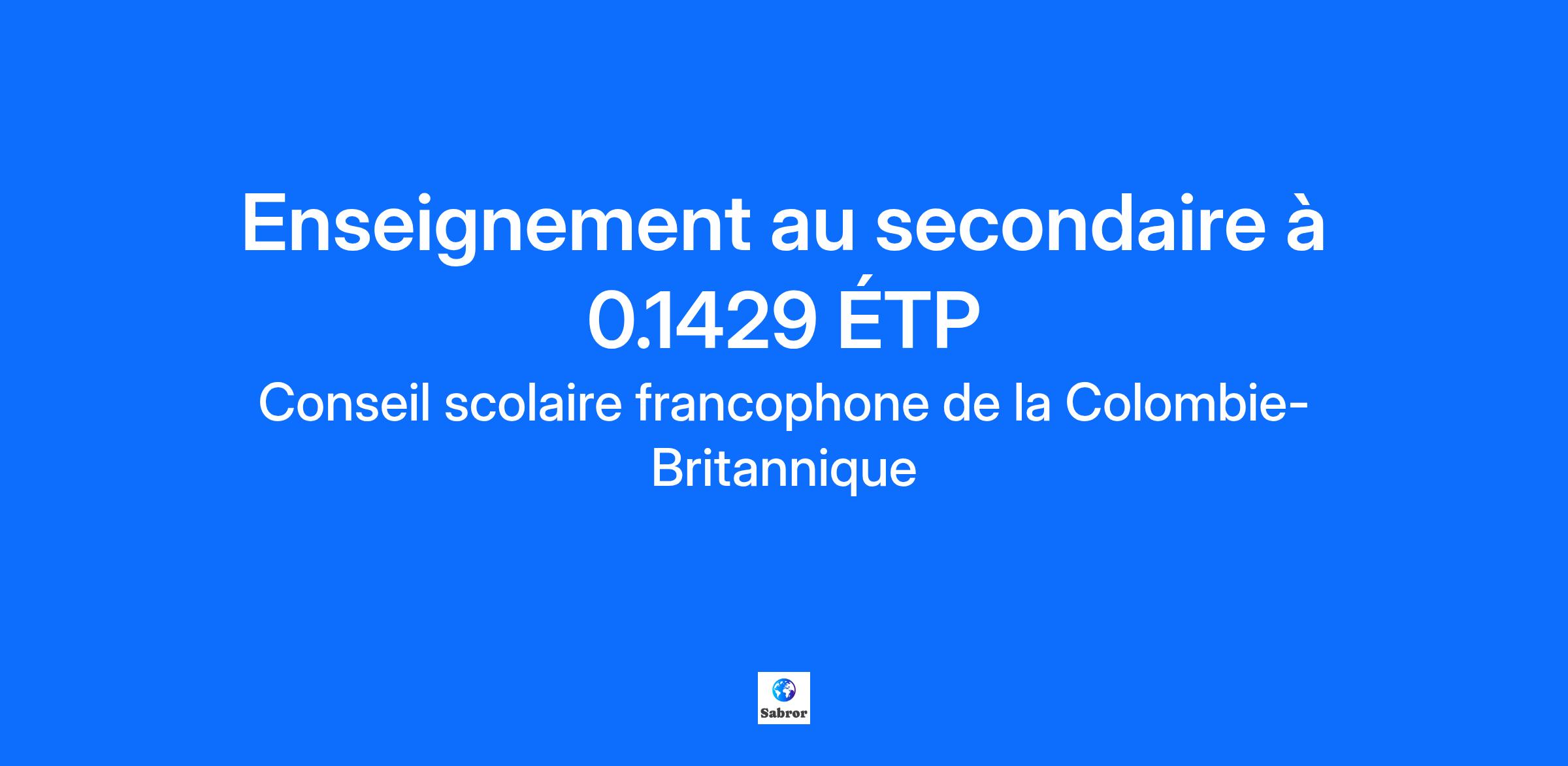 Description de l'entreprise Dans un esprit de réconciliation, nous reconnaissons que notre organisation et nos écoles se trouvent sur les territoires traditionnels des Premiers Peuples de la Colombie-Britannique. Nous sommes reconnaissant·e·s de prospérer sur ces territoires tout en prenant soin des familles et des enfants qui comptent pour nous afin de leur assurer un avenir rayonnant. Rejoindre notre équipe au Conseil scolaire francophone de la Colombie-Britannique, c'est saisir une belle opportunité de contribuer à l'épanouissement de la francophonie en milieu minoritaire dans un environnement éducatif dynamique qui incarne les principes d'apprentissage autochtones et valorise les apprentissages universels. Riche de nos 47 écoles à travers toute la province, nous sommes engagé·e·s envers la réussite de chacun de nos élèves. L'inclusion et la bienveillance au CSF sont les piliers de notre approche éducative. Tous-tes nos élèves sont accueilli·e·s dans un environnement scolaire inclusif et sécuritaire, adapté à leurs spécificités culturelles et individuelles, favorisant ainsi leur réussite scolaire et leur bien-être personnel. Pour savoir plus sur le CSF, visitez notre site internet. Description du poste Affichage (poste): #25-26/E.470 Niveau, cours et/ou spécialité enseigné(e): CCPT 9: EXPLORATIONS GÉNÉRALES, FRANÇAIS LANGUE PREMIÈRE 9, SCIENCES HUMAINES 9, ÉDUCATION À LA CARRIÈRE 9 (Cours en ligne Asynchrone) (0.1429) Type de poste: Temporaire Conditions de travail: Selon la convention collective du personnel enseignant du CSF Date de début du contrat: Dès que possible Date de fin du contrat: 30/06/2026 Date de début d’affichage: 18/09/2025 Date de fin d’affichage: 24/09/2025 Favoriser une approche collaborative avec chaque élève afin de créer un environnement d'apprentissage inclusif, sécuritaire et bienveillant, en tenant compte à la fois de leur individualité et de leurs besoins spécifiques ; Mettre en œuvre les programmes d'études du ministère de l'éducation de la Colombie-Britannique à partir d’approches holistiques et universelles qui intègrent les principes d'apprentissage autochtones. Certaines écoles offrent le programme de baccalauréat international (IB) ; Travailler en collaboration avec la communauté éducative de l’école et du bureau central en salle de classe au bénéfice des élèves (orthopédagogue, conseiller∙ère, bibliothécaire, aide pédagogique spécialisé∙e, orthophoniste etc.) ; Faire preuve d'innovation pour soutenir la réussite globale de chaque élève à l’aide d’approches pédagogiques dynamiques et engageantes et l’utilisation d’outils technologiques. Note: L'enseignant.e aura comme charge de travail la supervision et l'amélioration des cours de Français langure première 9, Sciences humaines 9, Carrière 9 et CCPT 9 de l'école Virtuelle. Incluant la finalisation de la transition vers D2L-Brightspace. Il est attendu que l'enseignant·e démontre une volonté de développer des façons novatrices de mettre en relation des apprenant·e·s de partout en province. Il est attendu que la candidature choisie ait une expérience de la plateforme D2L-Brightspace, ainsi que dans le développement de cours en ligne. Qualifications Diplôme universitaire d’une université en éducation ou en enseignement ; Certificat d'enseignement décerné par le Teacher Regulation Branch (TRB) ou éligibilité requise ; Maîtrise du français à l'oral et à l'écrit, avec une bonne connaissance de l'anglais, tant à l'oral qu'à l'écrit. Informations supplémentaires Salaire du poste L'échelle salariale annuelle pour ce poste se situe entre 59 978$ et 109 520$ selon les critères de la convention collective des enseignant.e.s. Nous vous encourageons à soumettre votre candidature en ligne en français. Nous tenons à remercier toutes les candidates et tous les candidats de leur intérêt pour ce poste. Veuillez noter que seules les personnes convoquées en entrevue seront contactées. Dans un esprit de réconciliation, nous reconnaissons que notre organisation et nos écoles se trouvent sur les territoires traditionnels des Premiers Peuples de la Colombie-Britannique.