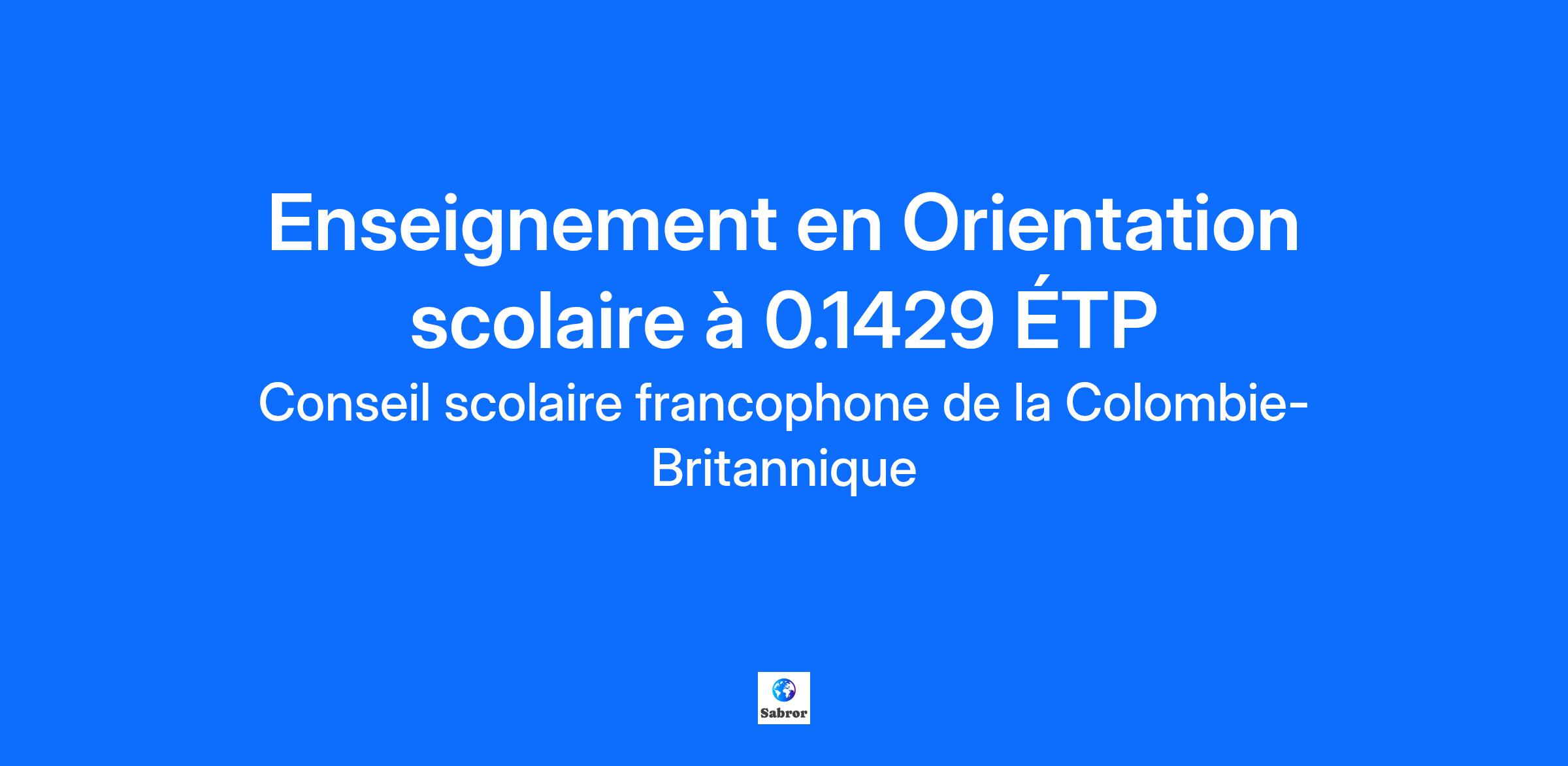 Description de l'entreprise Dans un esprit de réconciliation, nous reconnaissons que notre organisation et nos écoles se trouvent sur les territoires traditionnels des Premiers Peuples de la Colombie-Britannique. Nous sommes reconnaissant·e·s de prospérer sur ces territoires tout en prenant soin des familles et des enfants qui comptent pour nous afin de leur assurer un avenir rayonnant. Rejoindre notre équipe au Conseil scolaire francophone de la Colombie-Britannique, c'est saisir une belle opportunité de contribuer à l'épanouissement de la francophonie en milieu minoritaire dans un environnement éducatif dynamique qui incarne les principes d'apprentissage autochtones et valorise les apprentissages universels. Riche de nos 47 écoles à travers toute la province, nous sommes engagé·e·s envers la réussite de chacun de nos élèves. L'inclusion et la bienveillance au CSF sont les piliers de notre approche éducative. Tous-tes nos élèves sont accueilli·e·s dans un environnement scolaire inclusif et sécuritaire, adapté à leurs spécificités culturelles et individuelles, favorisant ainsi leur réussite scolaire et leur bien-être personnel. Pour savoir plus sur le CSF, visitez notre site internet. Description du poste Affichage (poste): #25-26/E.434-3 Niveau, cours et/ou spécialité enseigné(e): Orientation scolaire (0.1429) Type de poste: Temporaire Conditions de travail: Selon la convention collective du personnel enseignant du CSF Date de début du contrat: Dès que possible Date de fin du contrat: 30/06/2026 Date de début d’affichage: 16/09/2025 Date de fin d’affichage: 22/09/2025 Informer, conseiller et accompagner les élèves dans leur choix de carrières, de cours et de programmes lors de leur parcours au secondaire ; Coordonner des programmes d'alternance travail-études et de transition entre l'école et le travail ; Coordonner des programmes d'orientation et assurer une bonne communication avec les élèves, le personnel et les parents ; Former, coordonner et animer des groupes et des ateliers pour guider les élèves dans leur choix de parcours scolaire et de vie ; Conseiller des élèves au sujet de questions personnelles et sociales ; Coordonner les informations reliées aux bourses ; Maintenir à jour les dossiers des élèves et assurer le lien avec les agences et partenaires externes ; Superviser, s'il y a lieu, des programmes d'aide par les pairs offerts en milieu scolaire. Note: L'enseignant.e aura comme charge de travail l'accompagnement d'élèves de partout en province en plus d'une clientèle adulte majoritairement dans la Vallée du Fraser. Il est attendu que l'enseignant·e démontre une volonté de développer des façons novatrices de mettre en relation des apprenant·e·s de partout en province. Il est attendu que la candidature choisie ait une expérience de la plateforme D2L-Brightspace, My Education BC, ainsi que dans l'accompagnement d'élèves en ligne. Le lieu de travail sera le bureau central avec possibilité de déplacement vers les campus du Collège Éducacentre (encadrement de la clientèle adulte). Qualifications Détenir le certificat d’enseignement décerné par le Teacher Regulation Branch (TRB) ou y être éligible* ; Détenir un diplôme universitaire d’une université agréée avec spécialisation en enseignement à l’élémentaire ou l'équivalent ; Posséder une expérience pertinente en enseignement au secondaire et planification de carrière professionnelle ; Démontrer une connaissance approfondie des programmes de graduation et du système post secondaire en Colombie-Britannique ; Maîtriser le français et l’anglais, à l’oral et à l’écrit. Informations supplémentaires Salaire du poste L'échelle salariale pour ce poste se situe entre 59 978$ et 109 520$ selon les critères de la convention collective des enseignant.e.s. Nous vous encourageons à soumettre votre candidature en ligne en français. Nous tenons à remercier toutes les candidates et tous les candidats de leur intérêt pour ce poste. Veuillez noter que seules les personnes convoquées en entrevue seront contactées. Dans un esprit de réconciliation, nous reconnaissons que notre organisation et nos écoles se trouvent sur les territoires traditionnels des Premiers Peuples de la Colombie-Britannique.